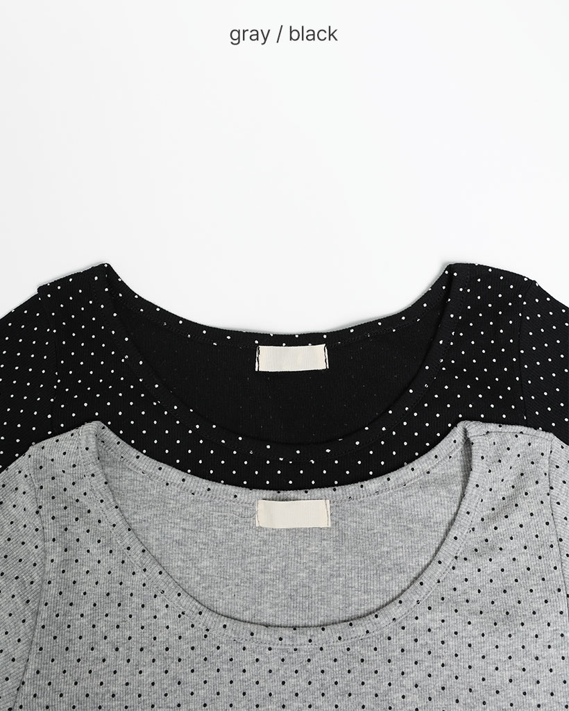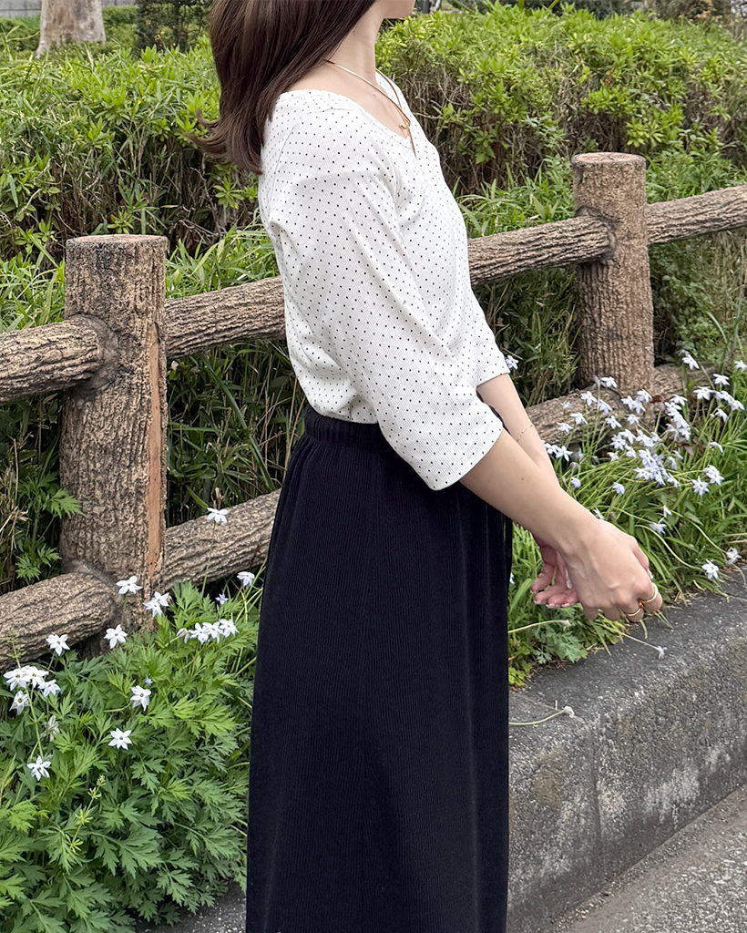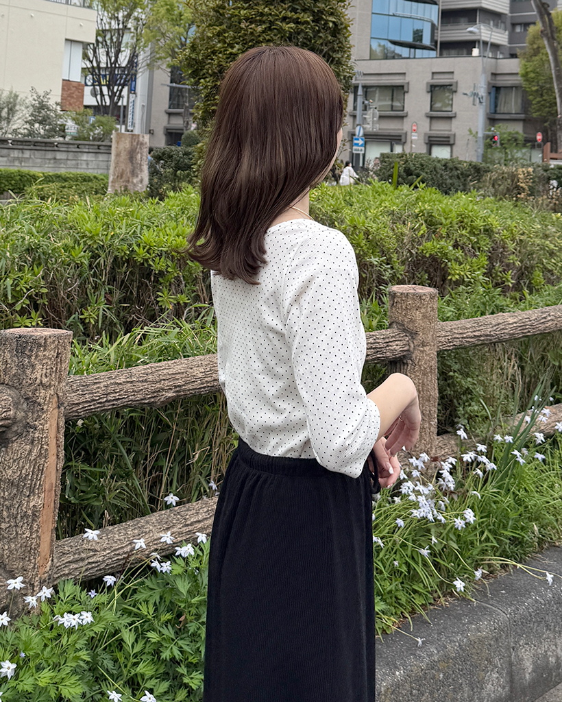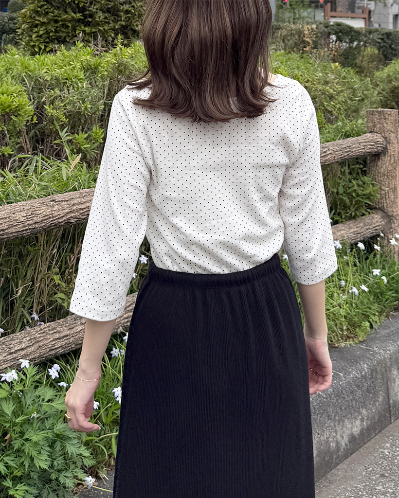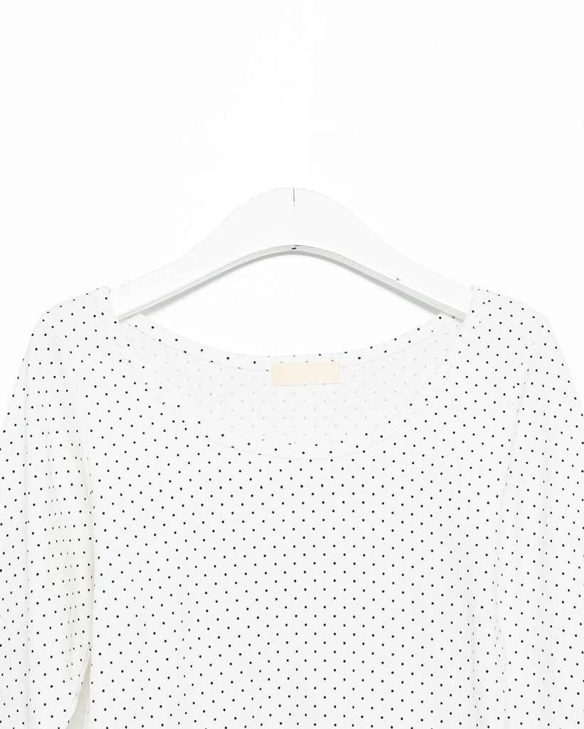 ラウンドネックドット柄ハンパ袖シャツ