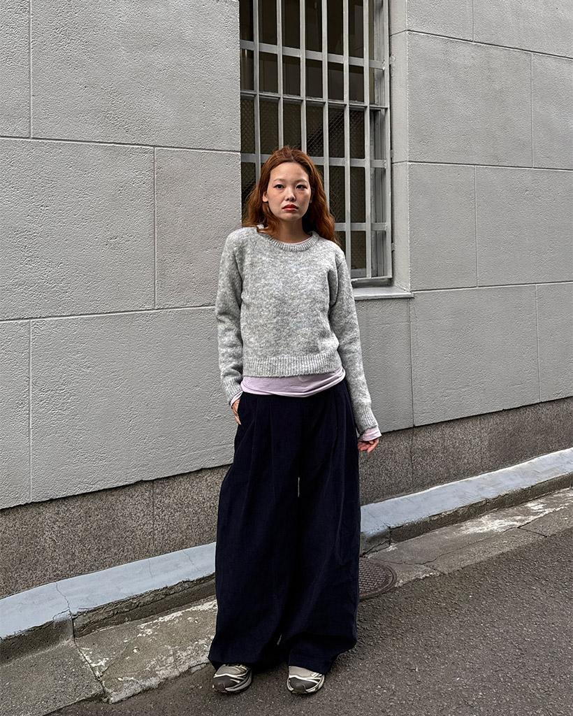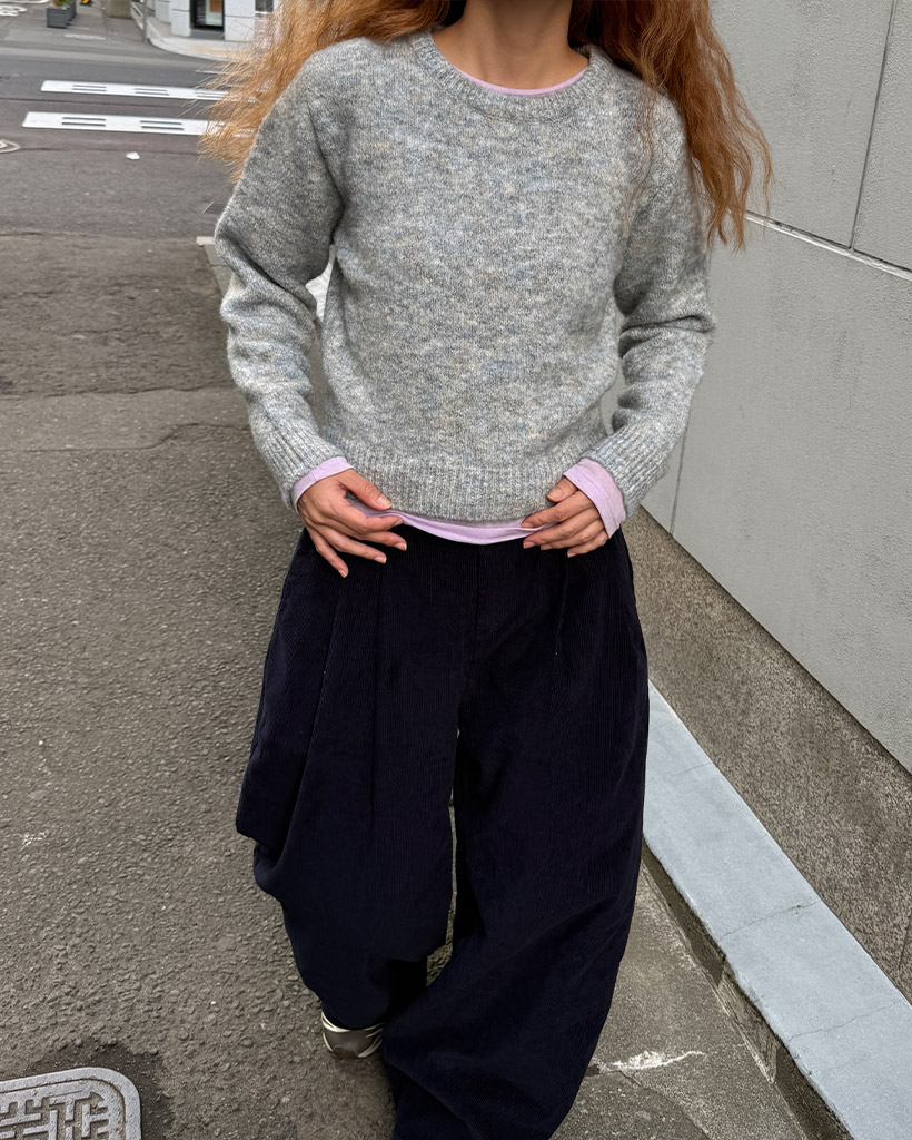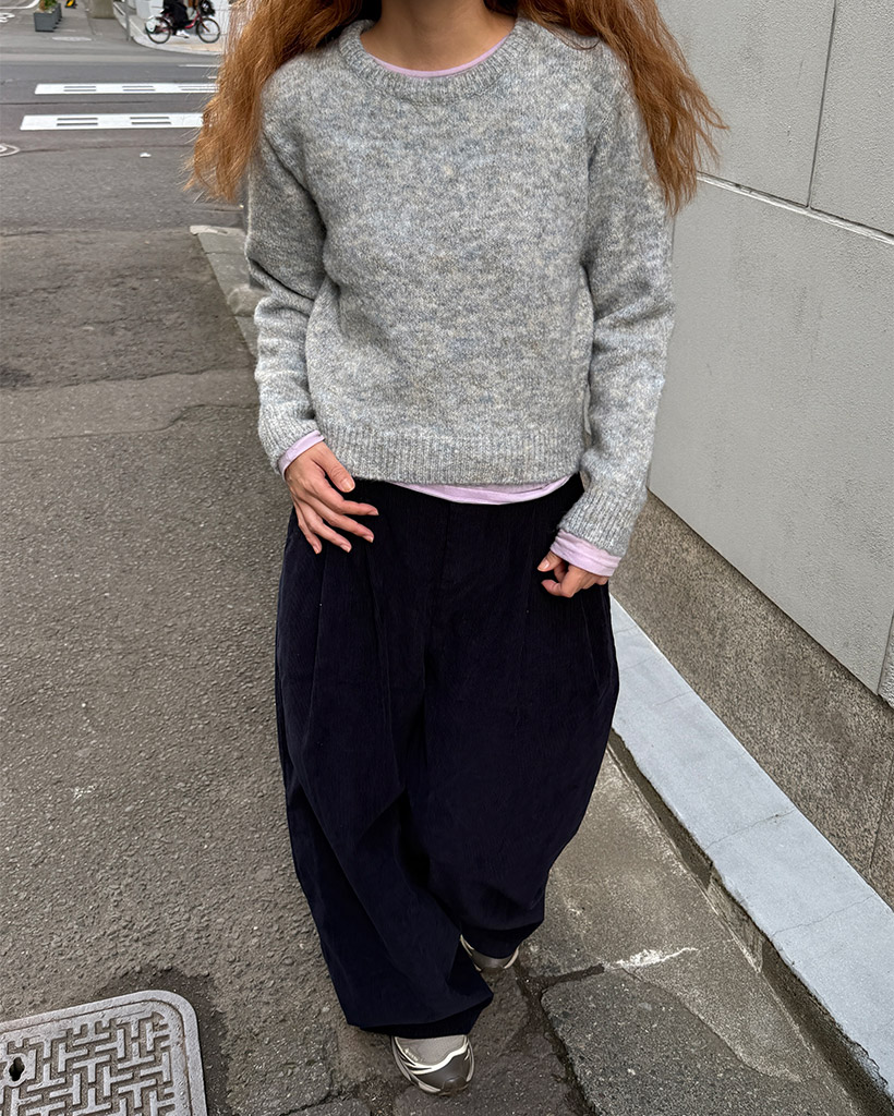 ラウンドネックロングスリーブニット
