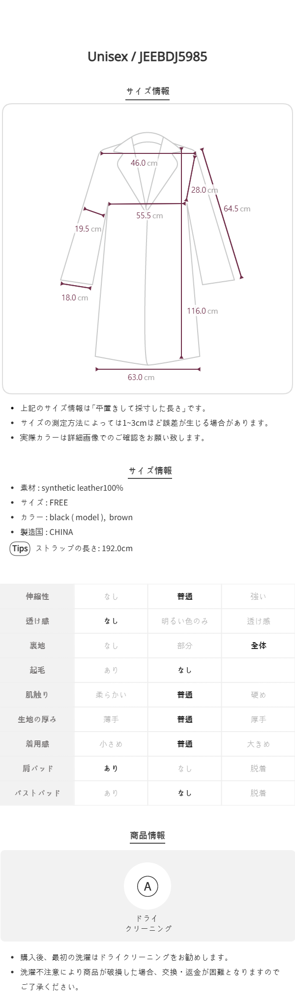 (ユニセックス)レザーロングジャケット