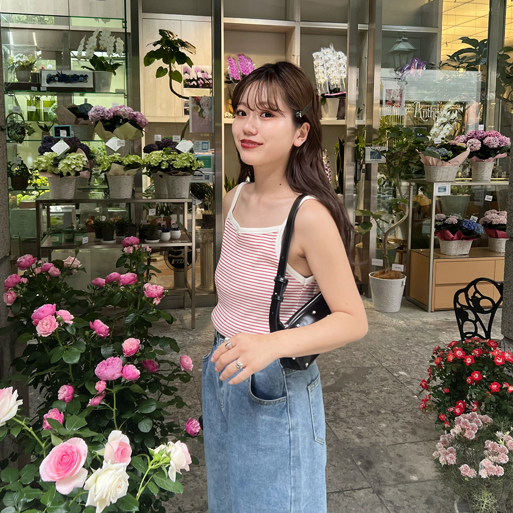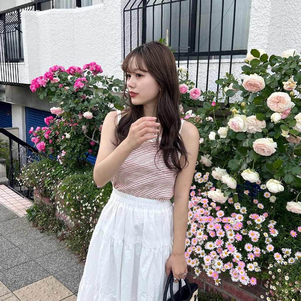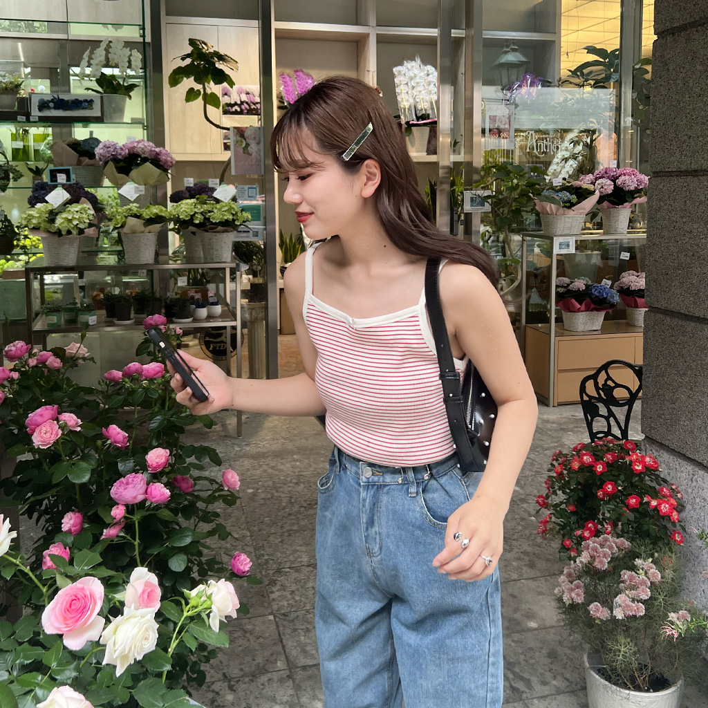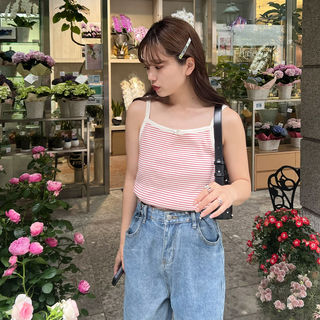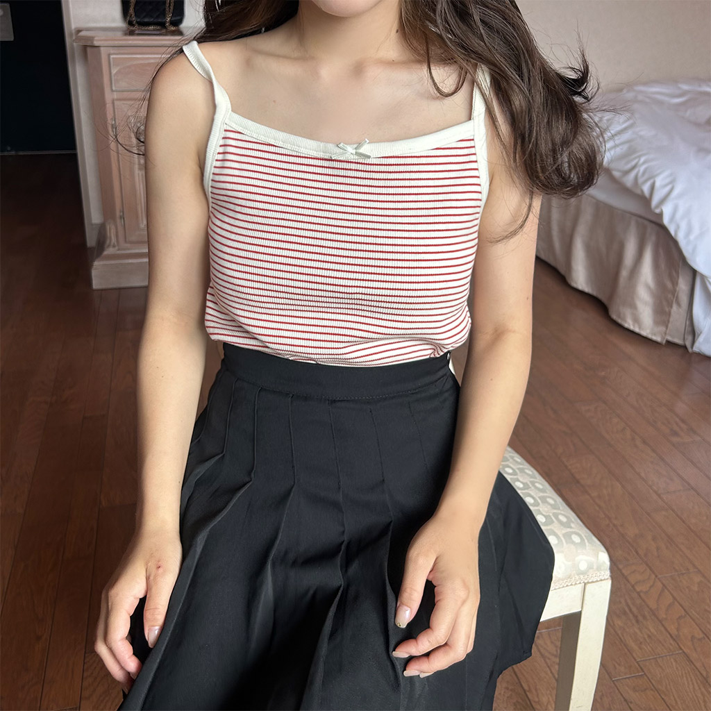 リボンカラーボーダーキャミソール