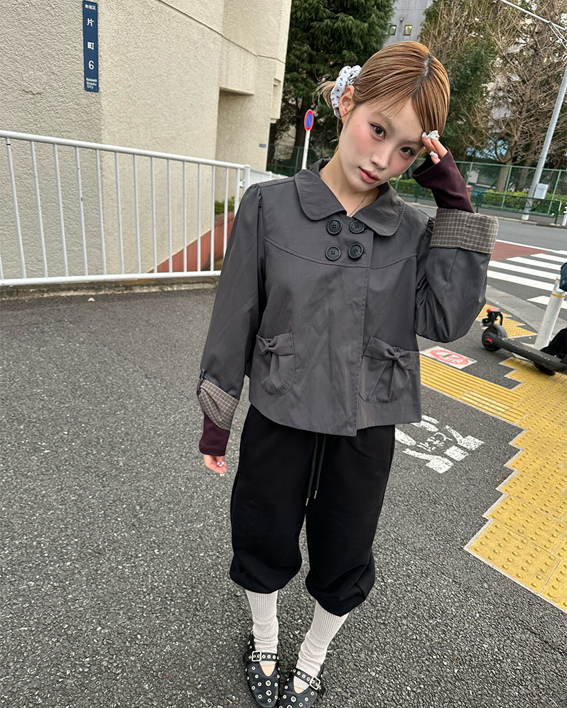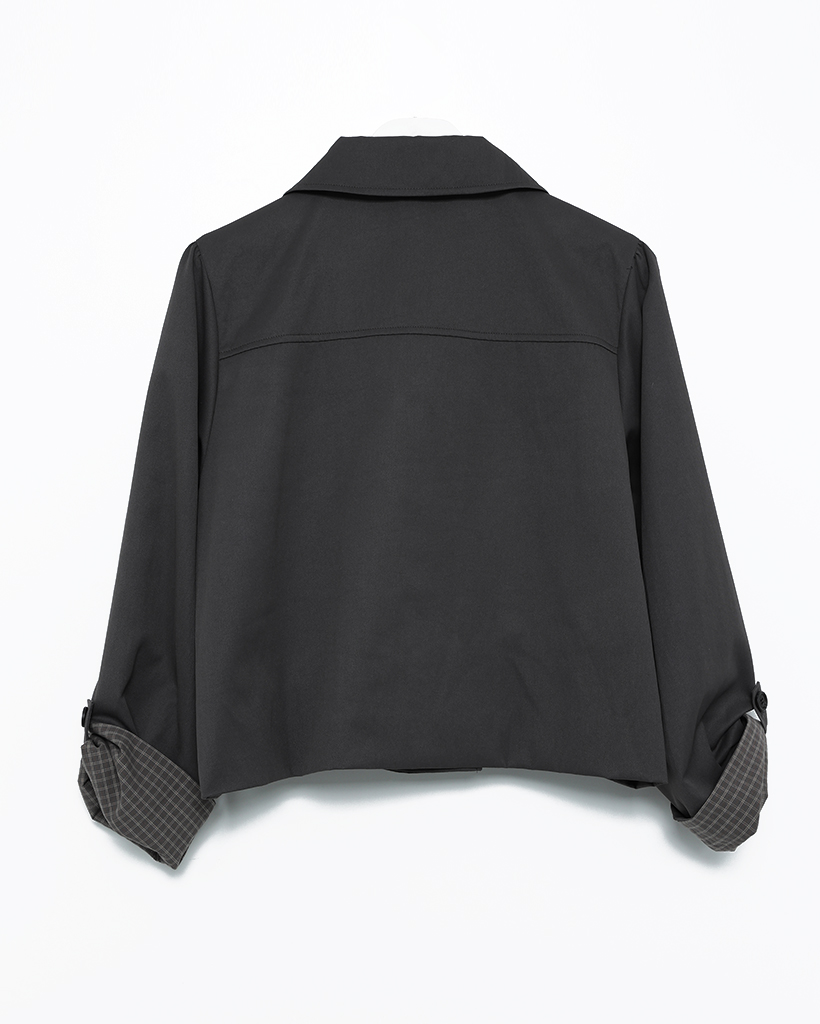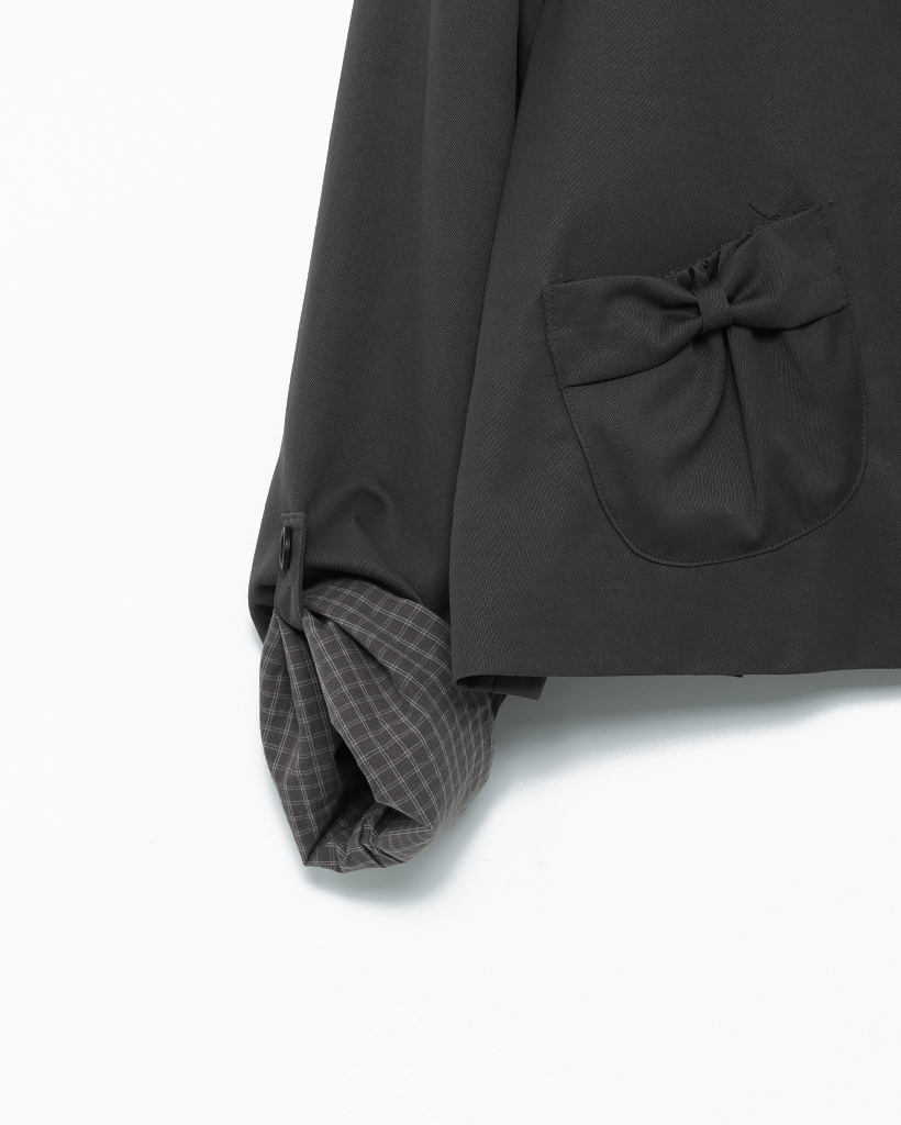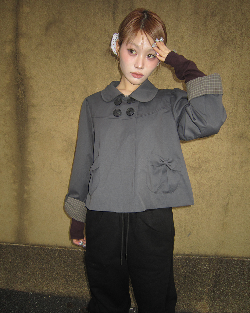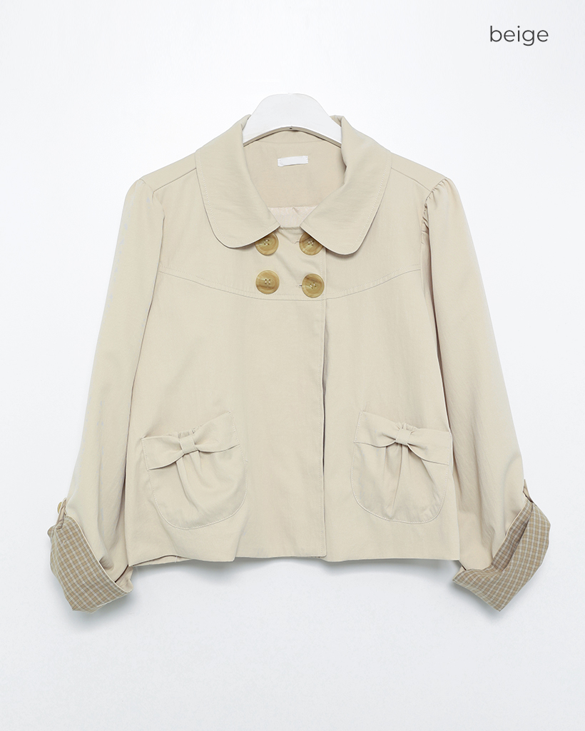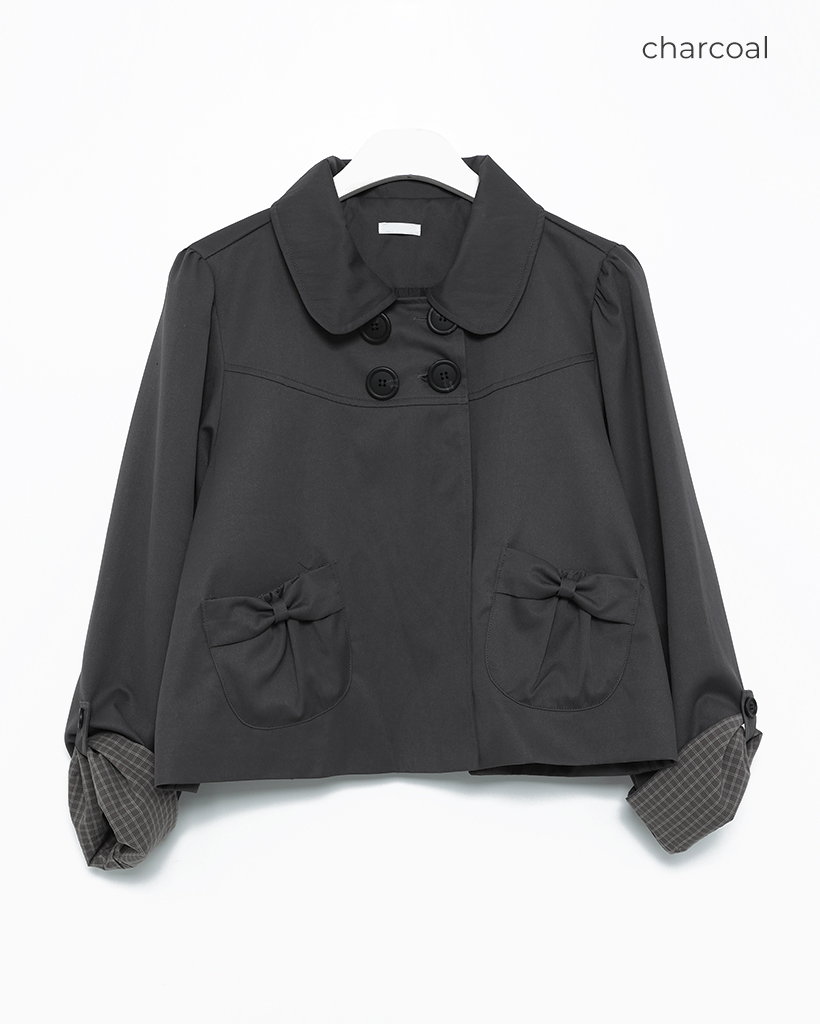 チェックカフスリボンポケットダブルボタンショートジャケット