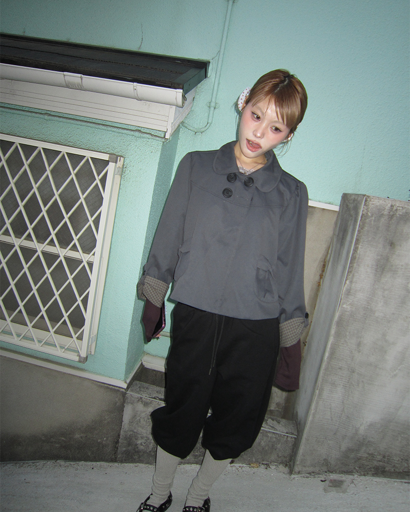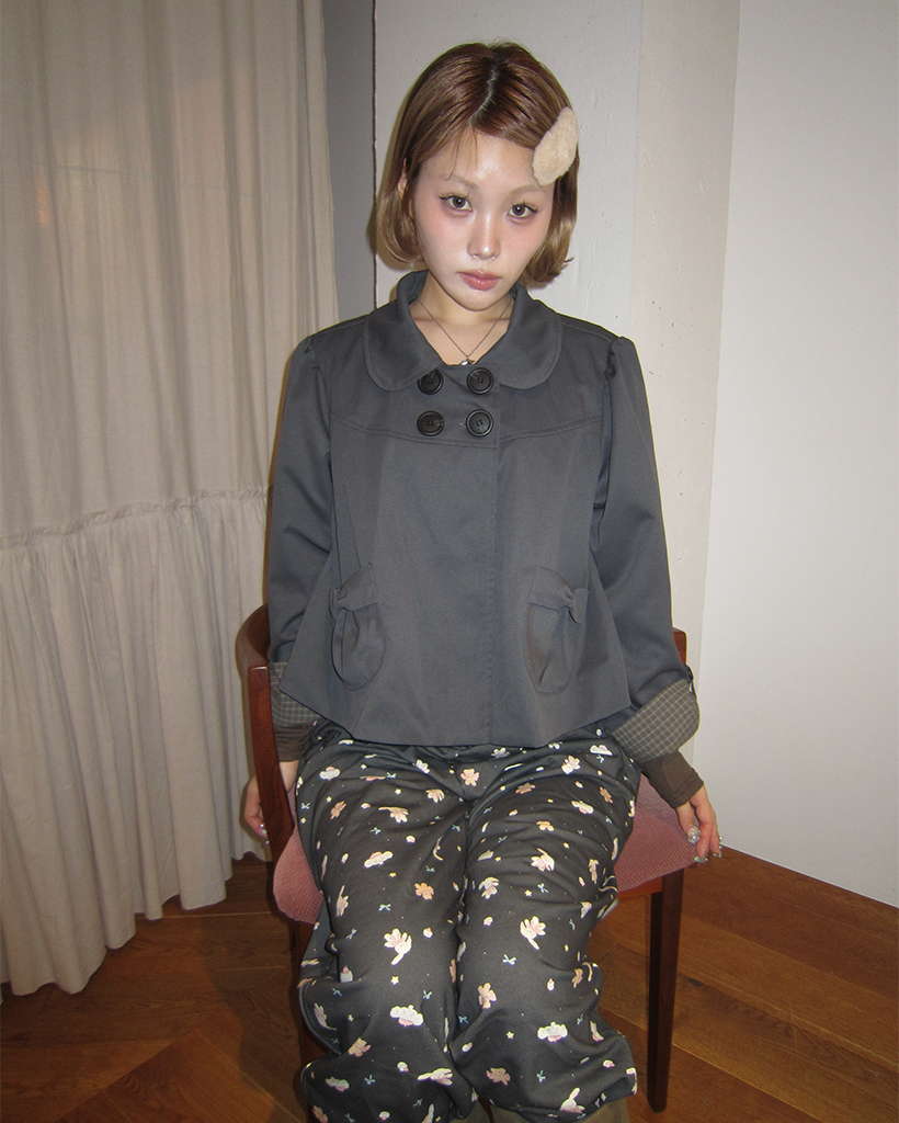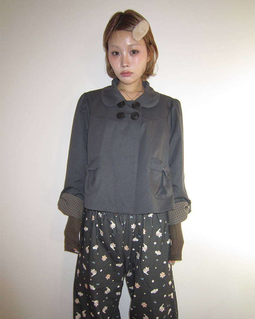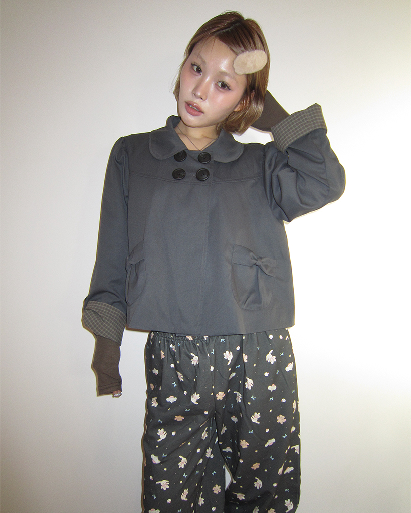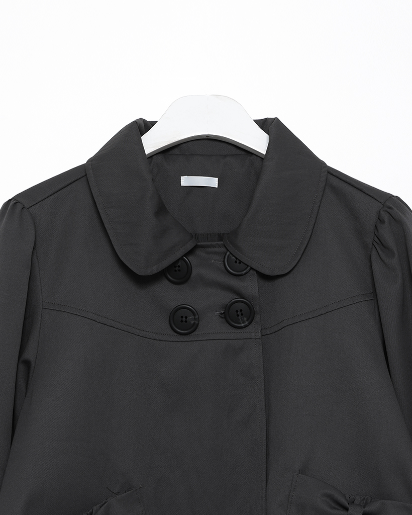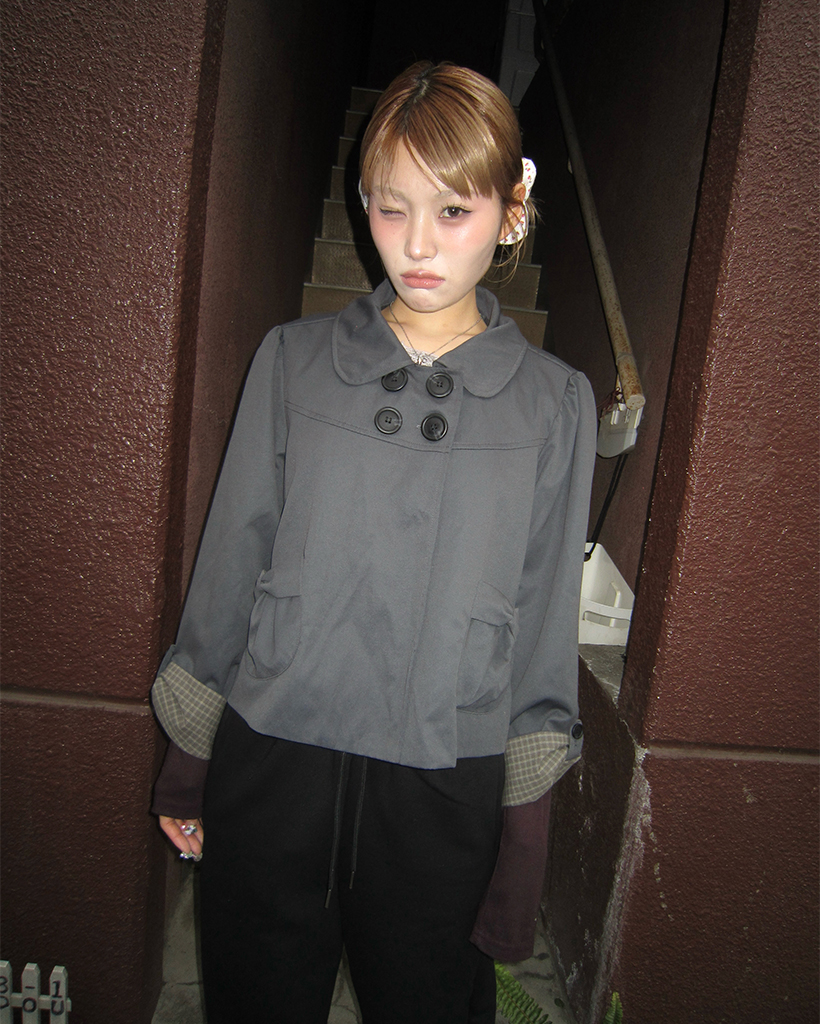 チェックカフスリボンポケットダブルボタンショートジャケット