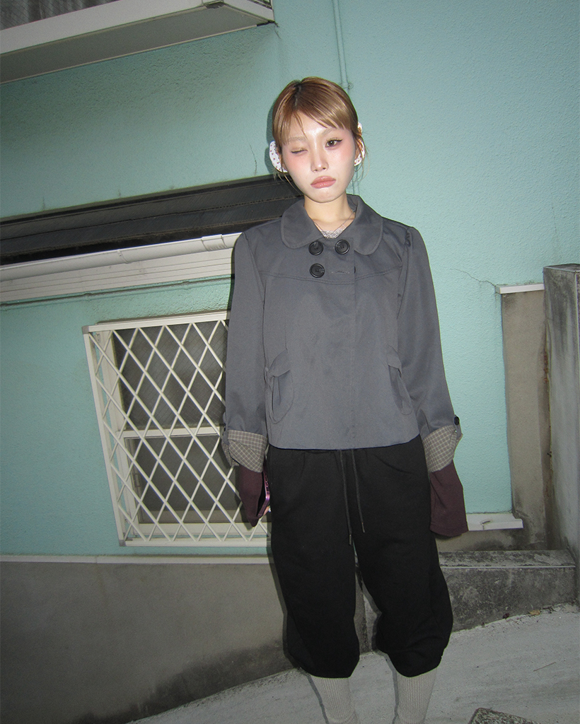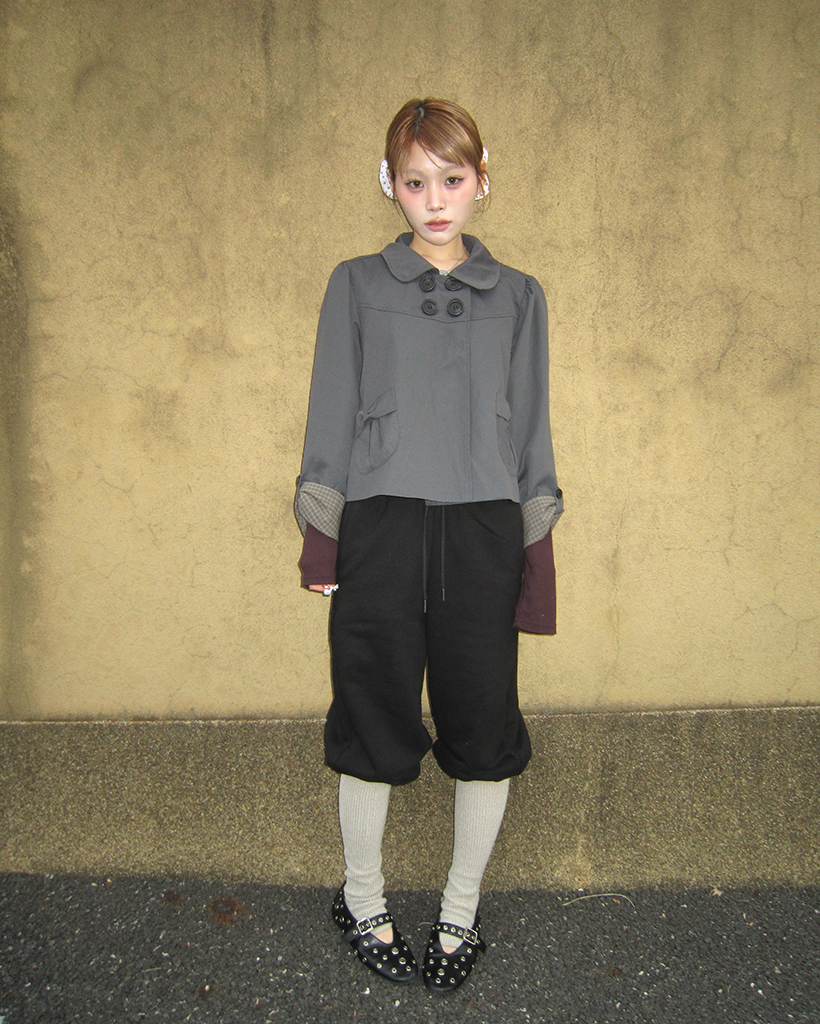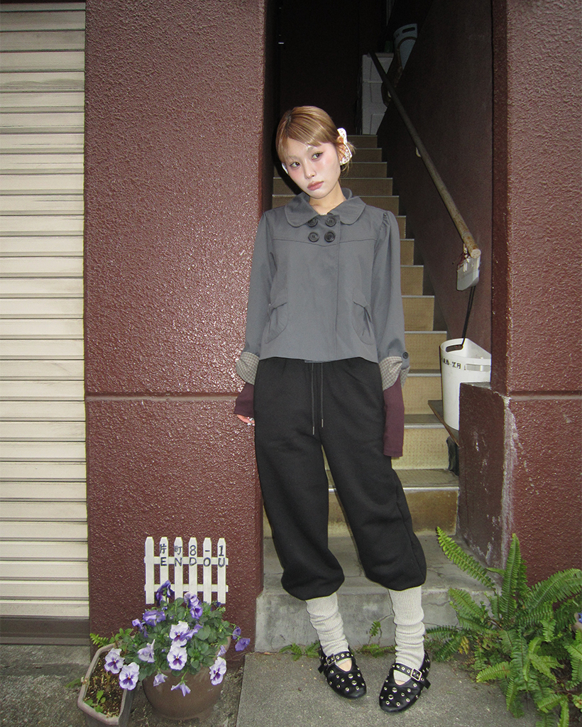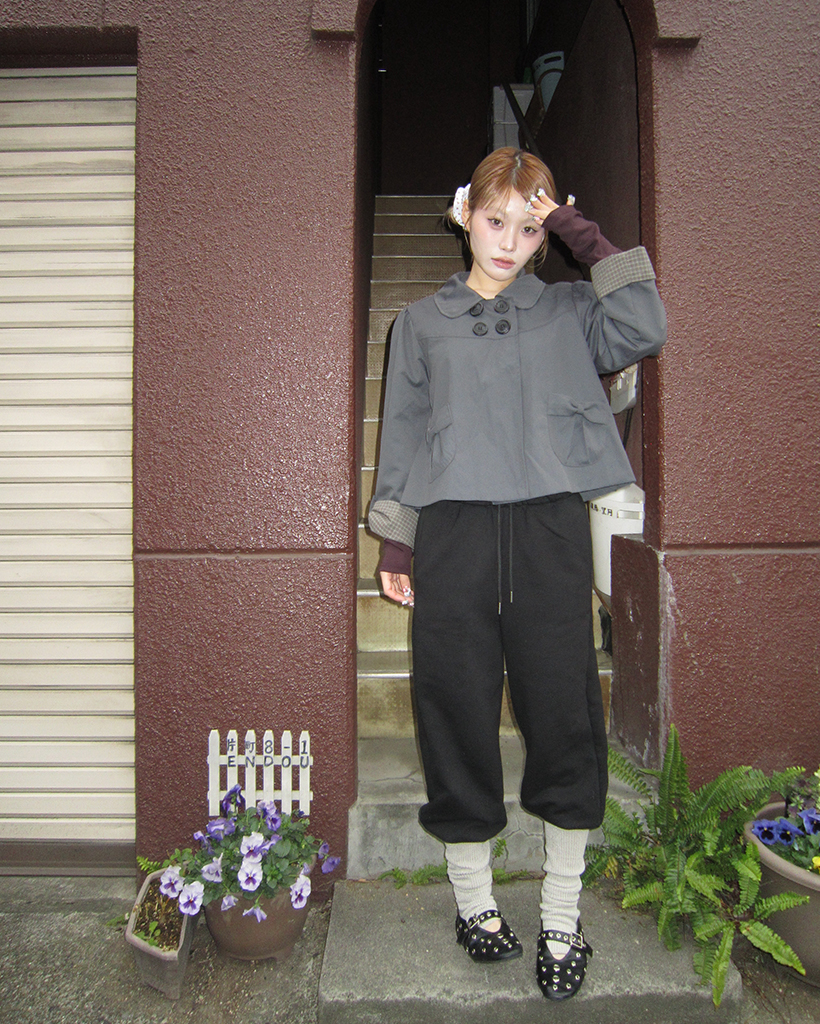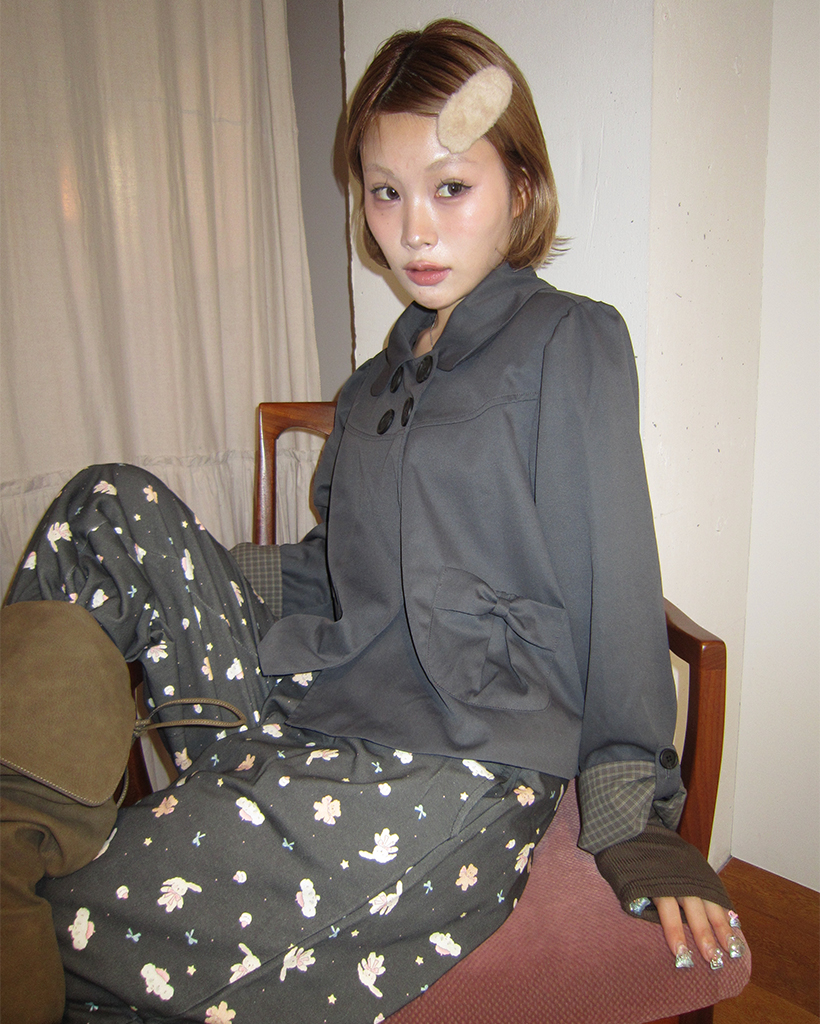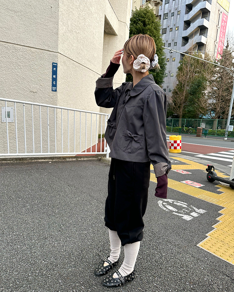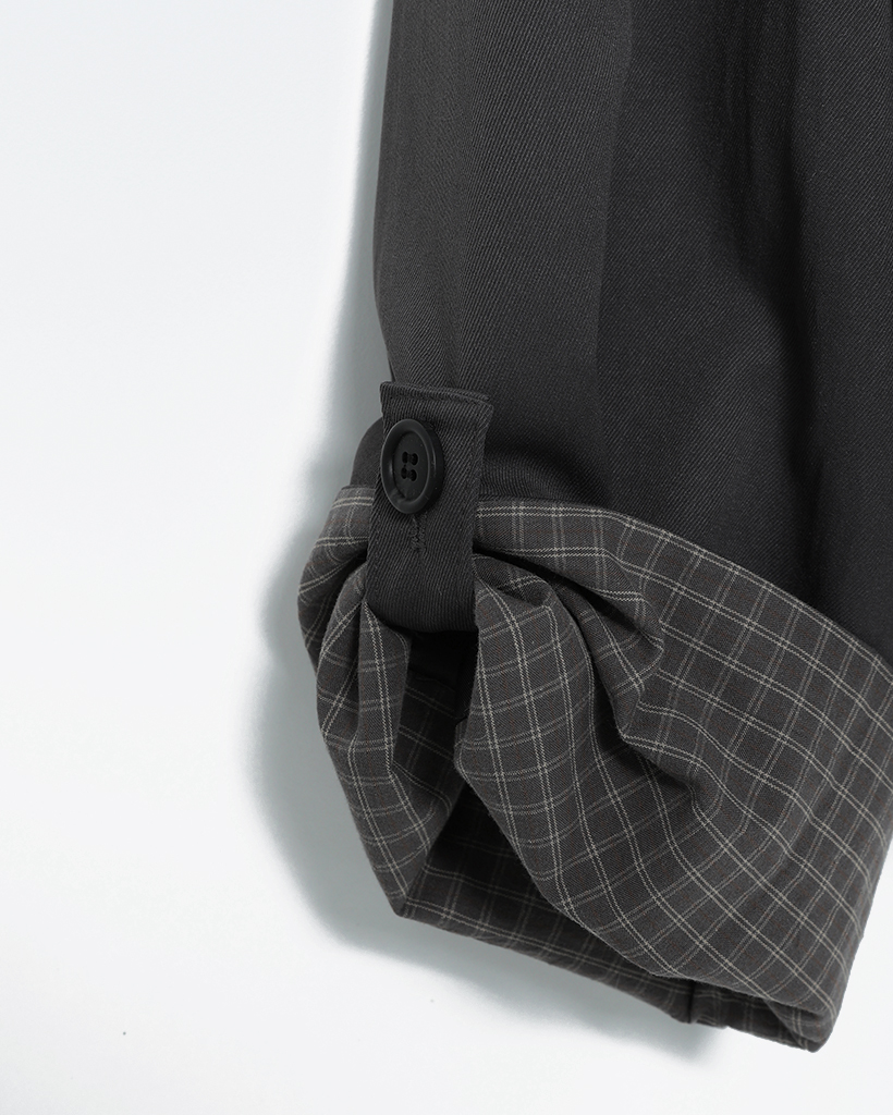 チェックカフスリボンポケットダブルボタンショートジャケット