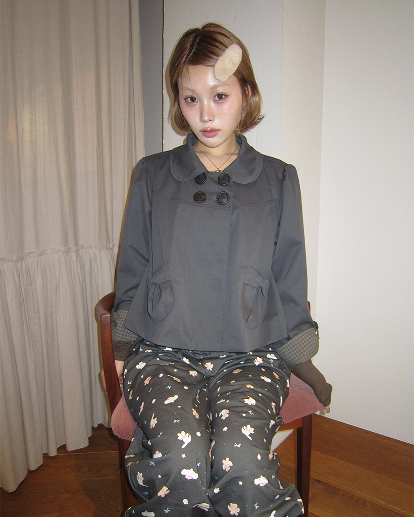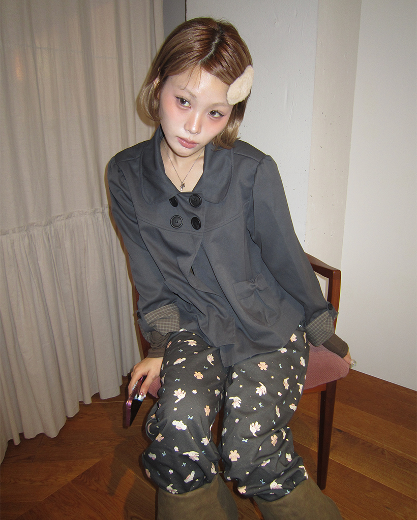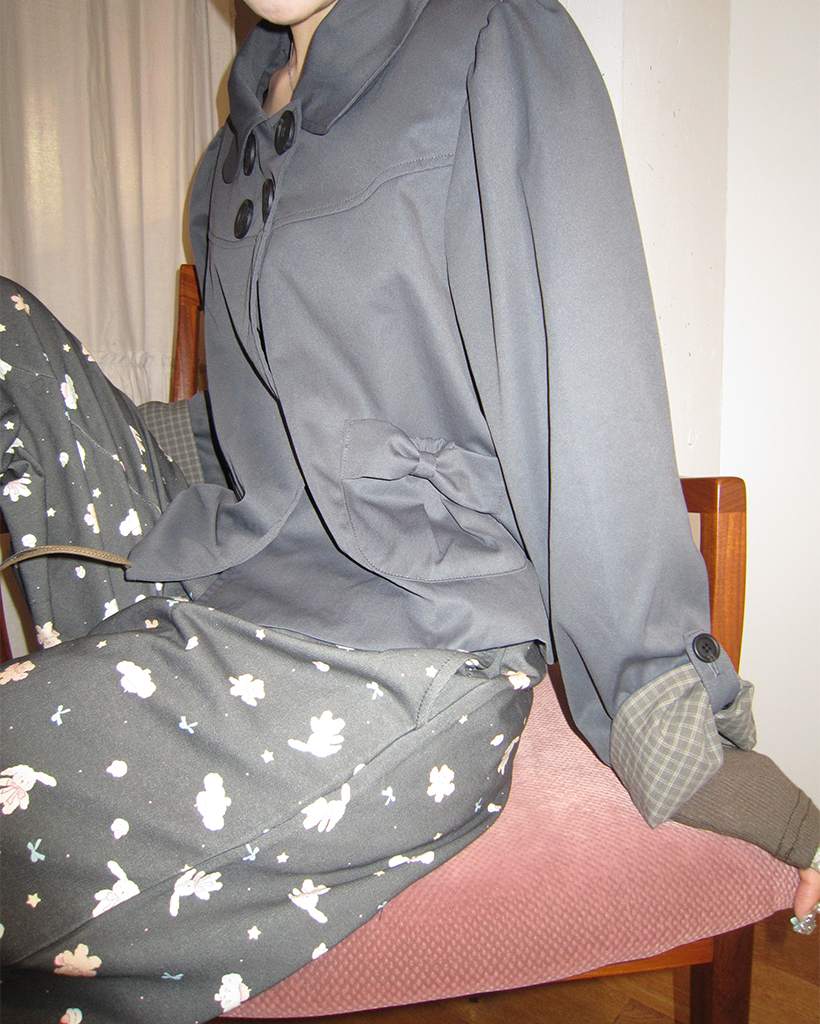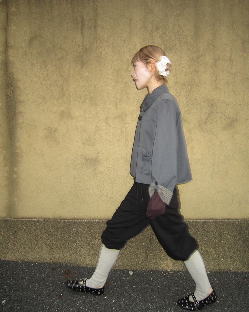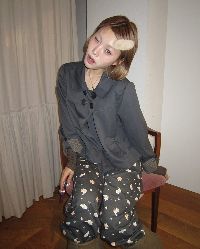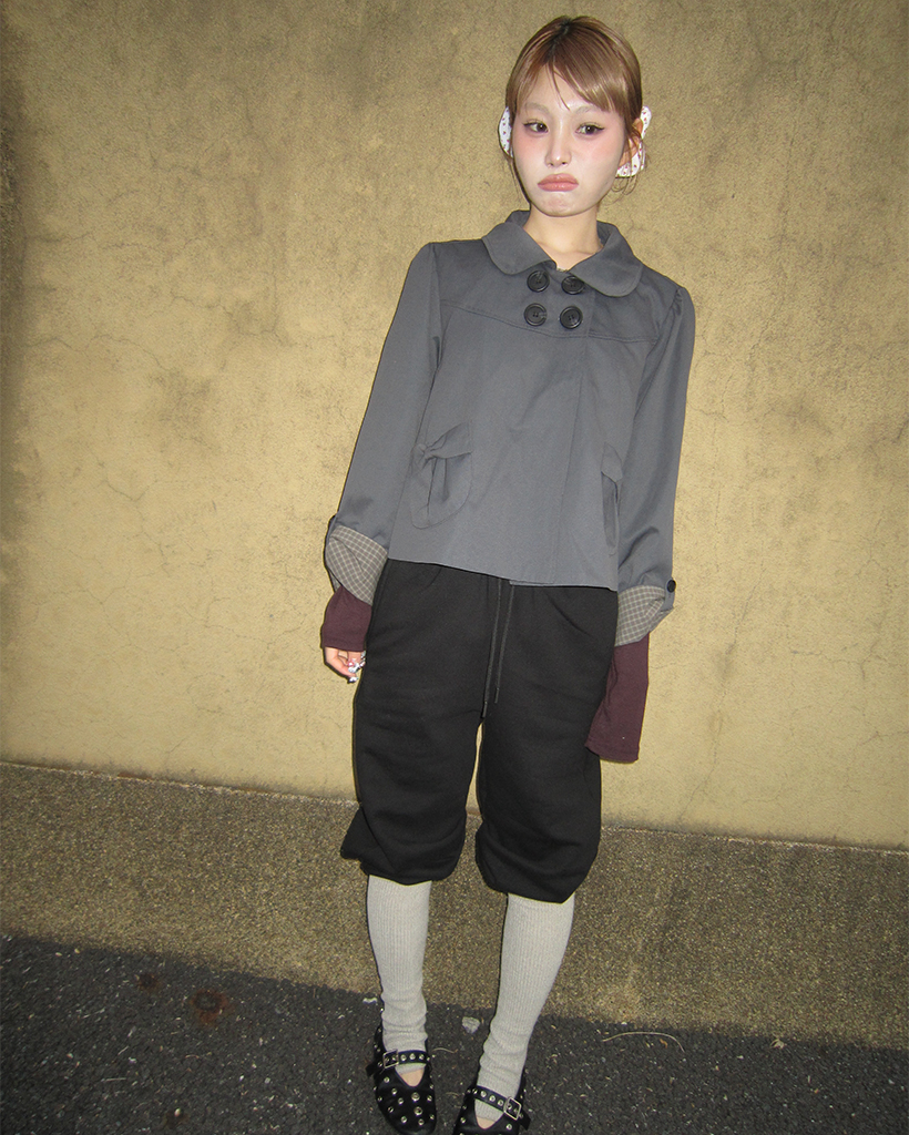 チェックカフスリボンポケットダブルボタンショートジャケット