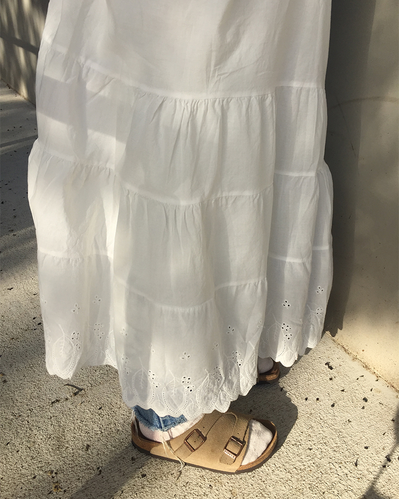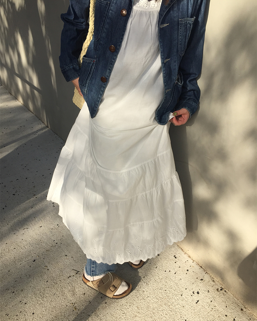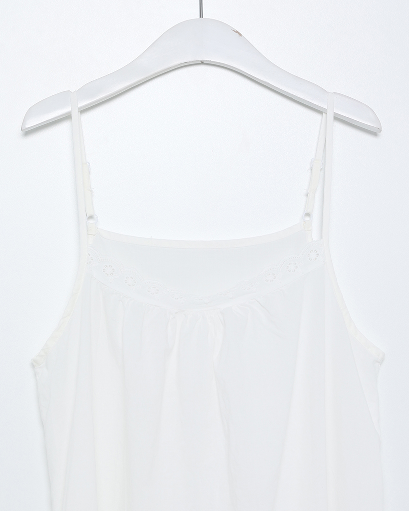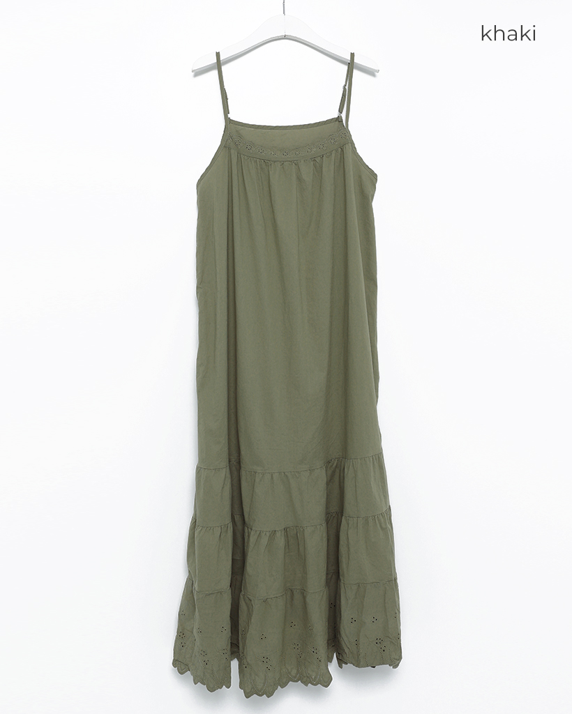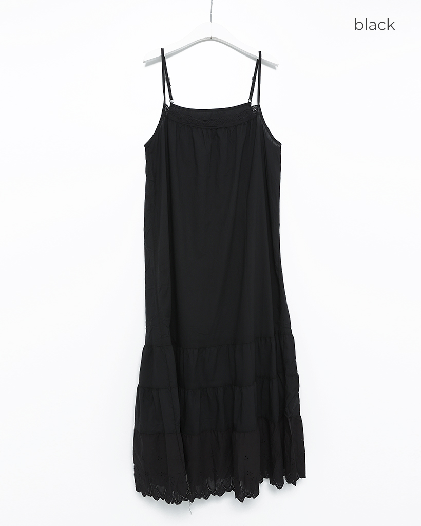 ネックヘムパンチングレースロングキャミワンピース