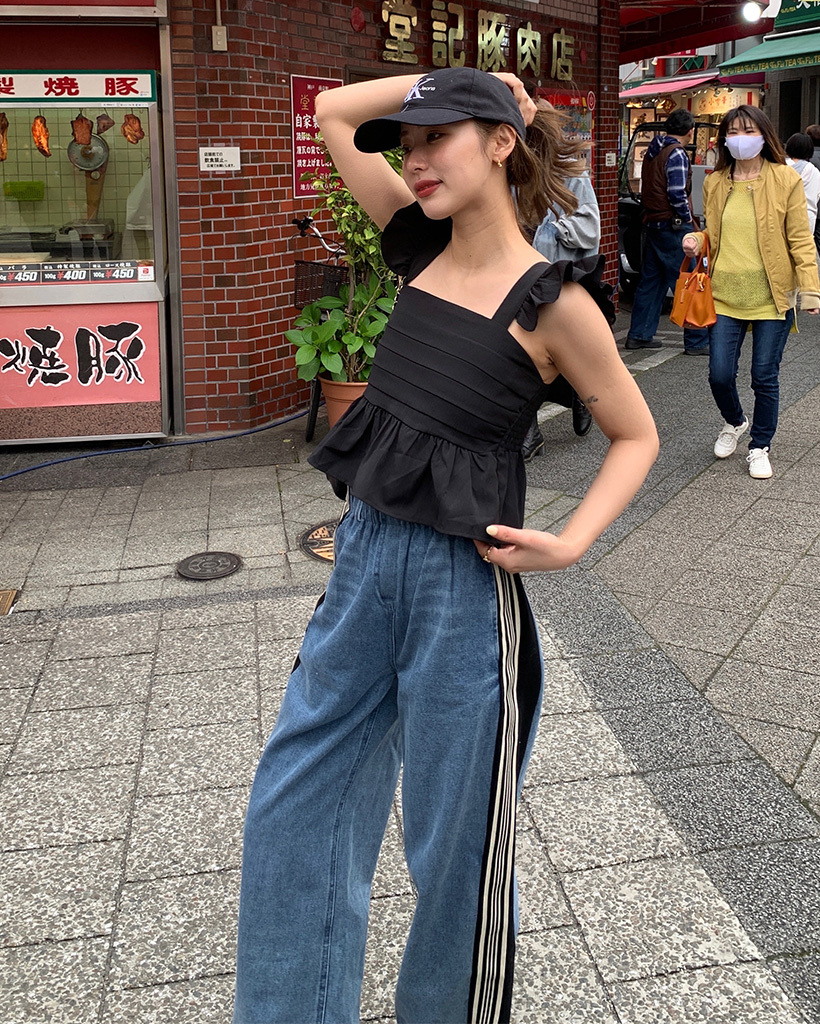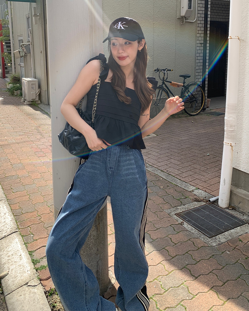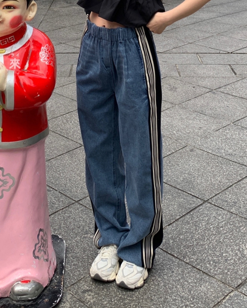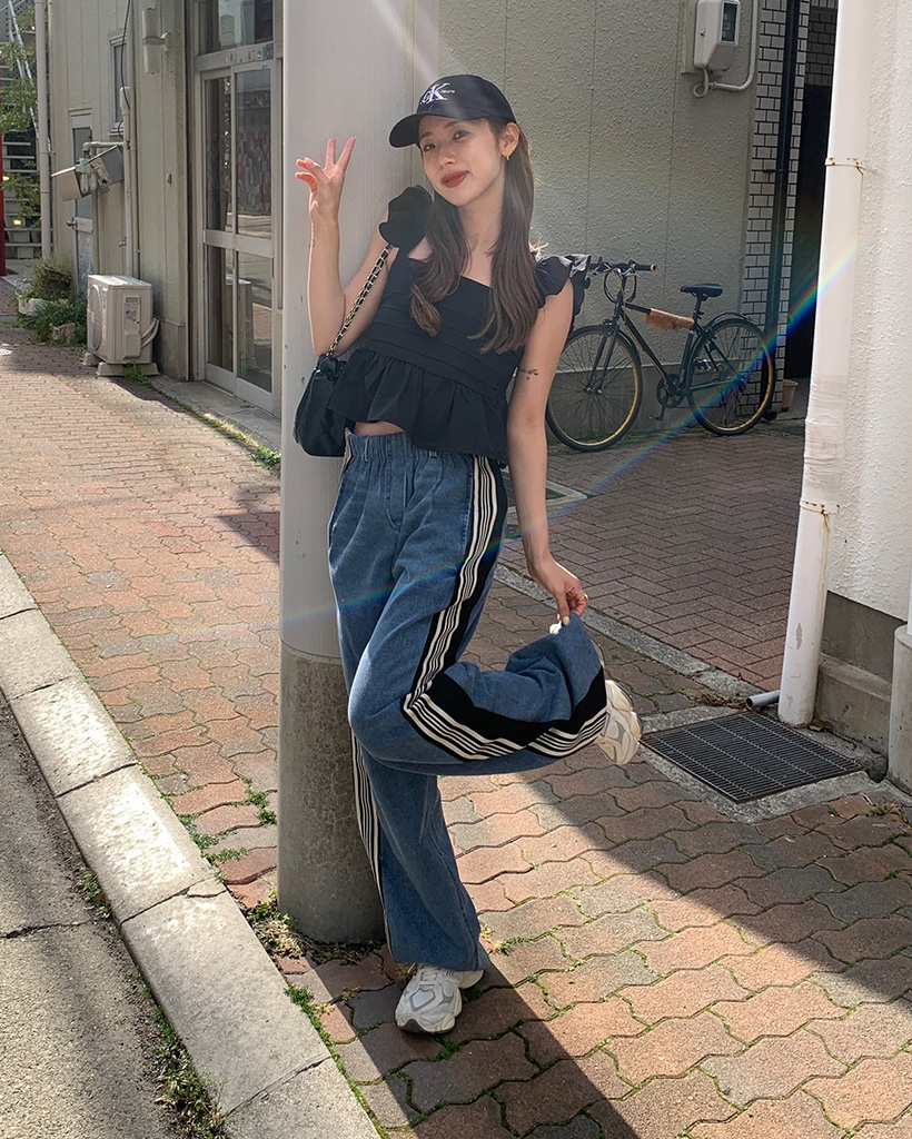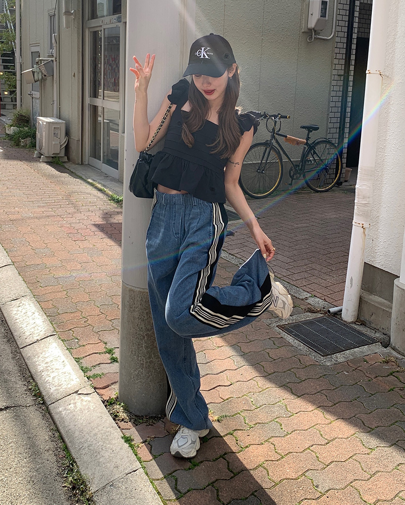トリプルサイドラインカットオフデニムパンツ