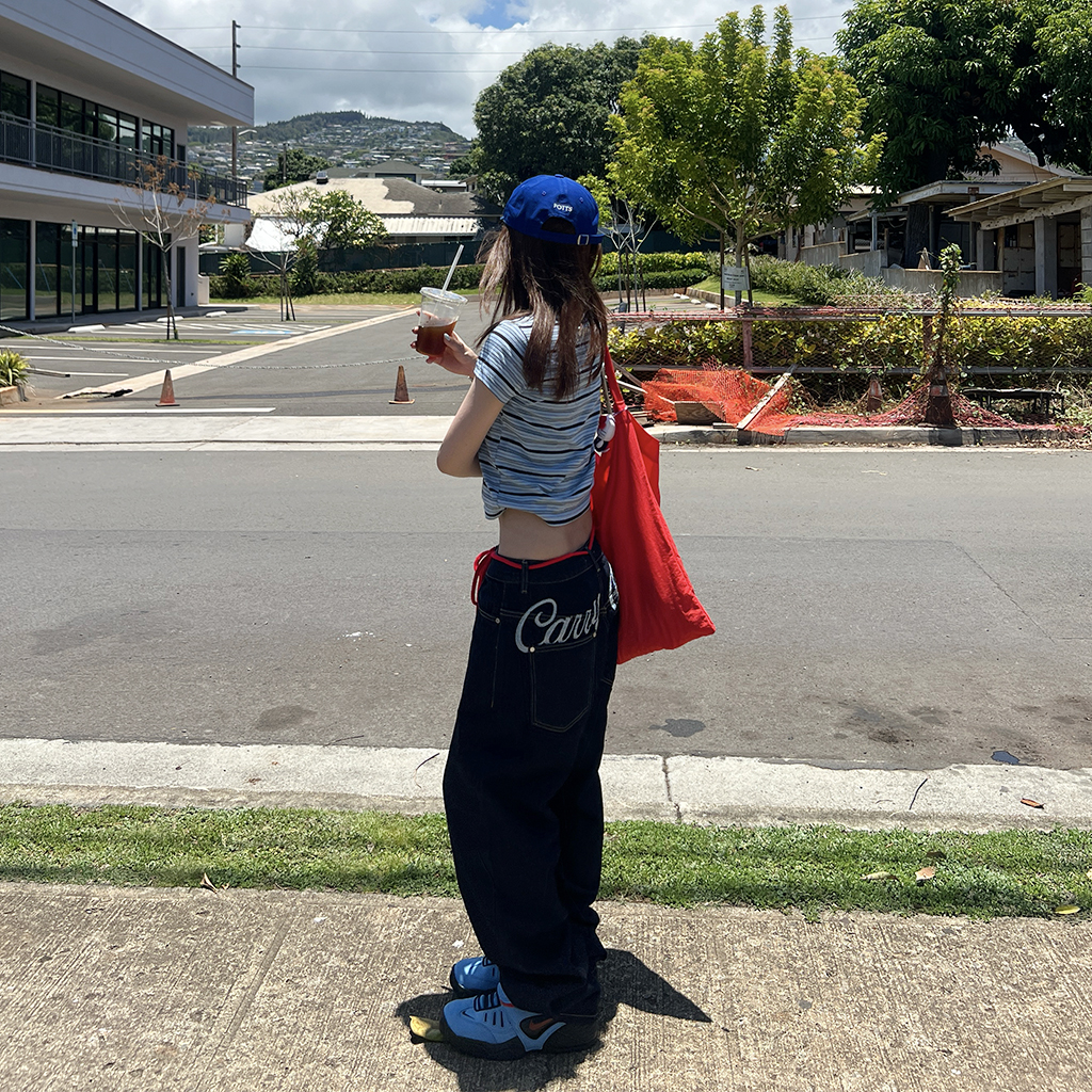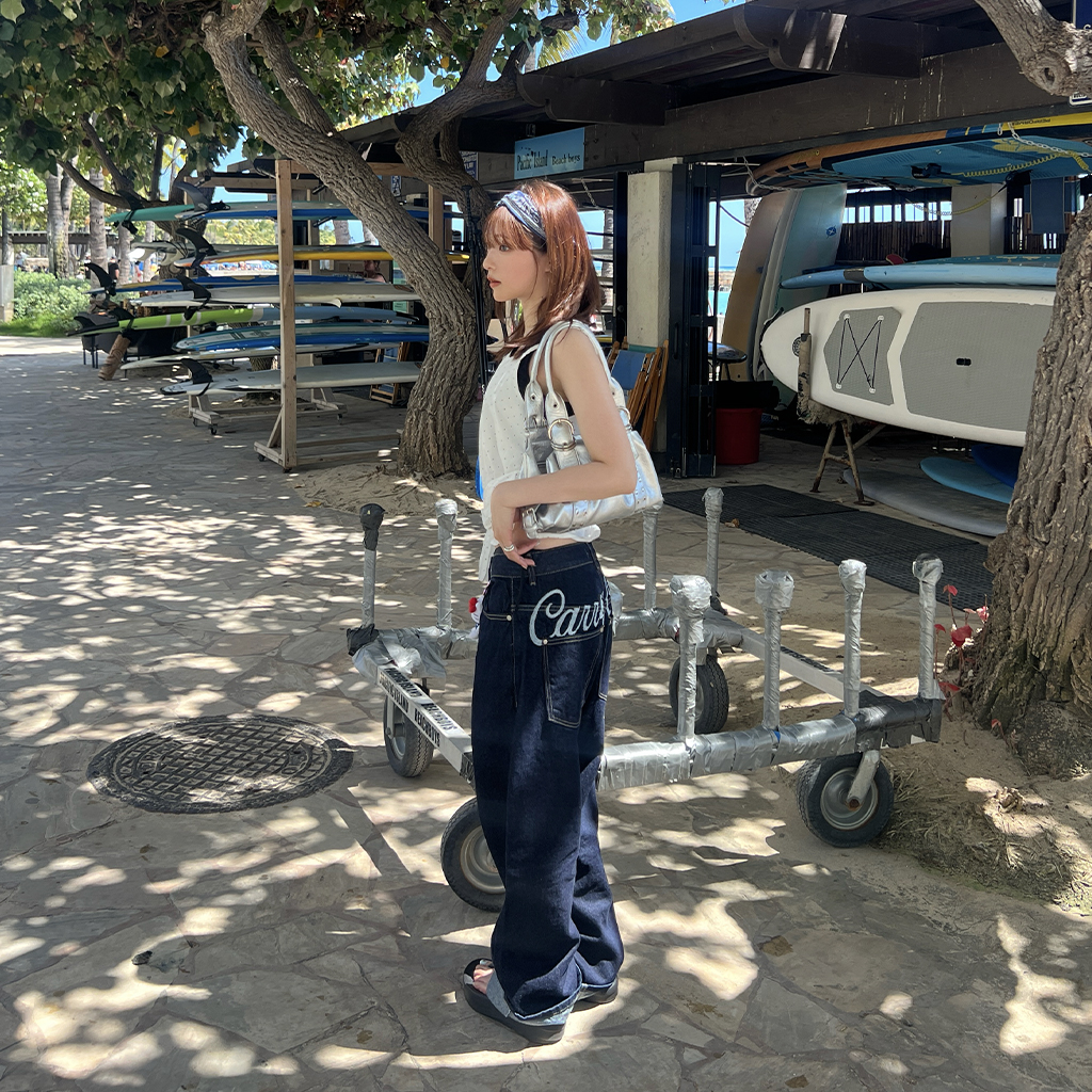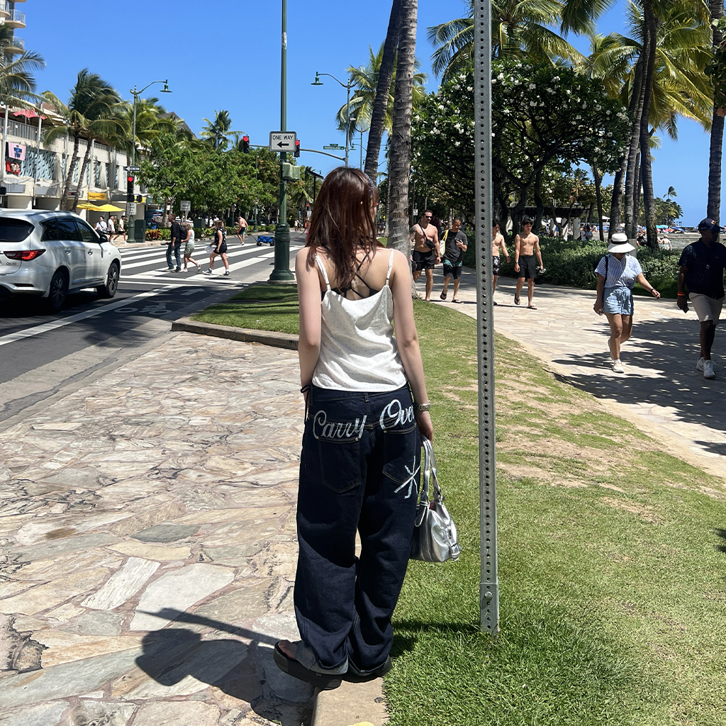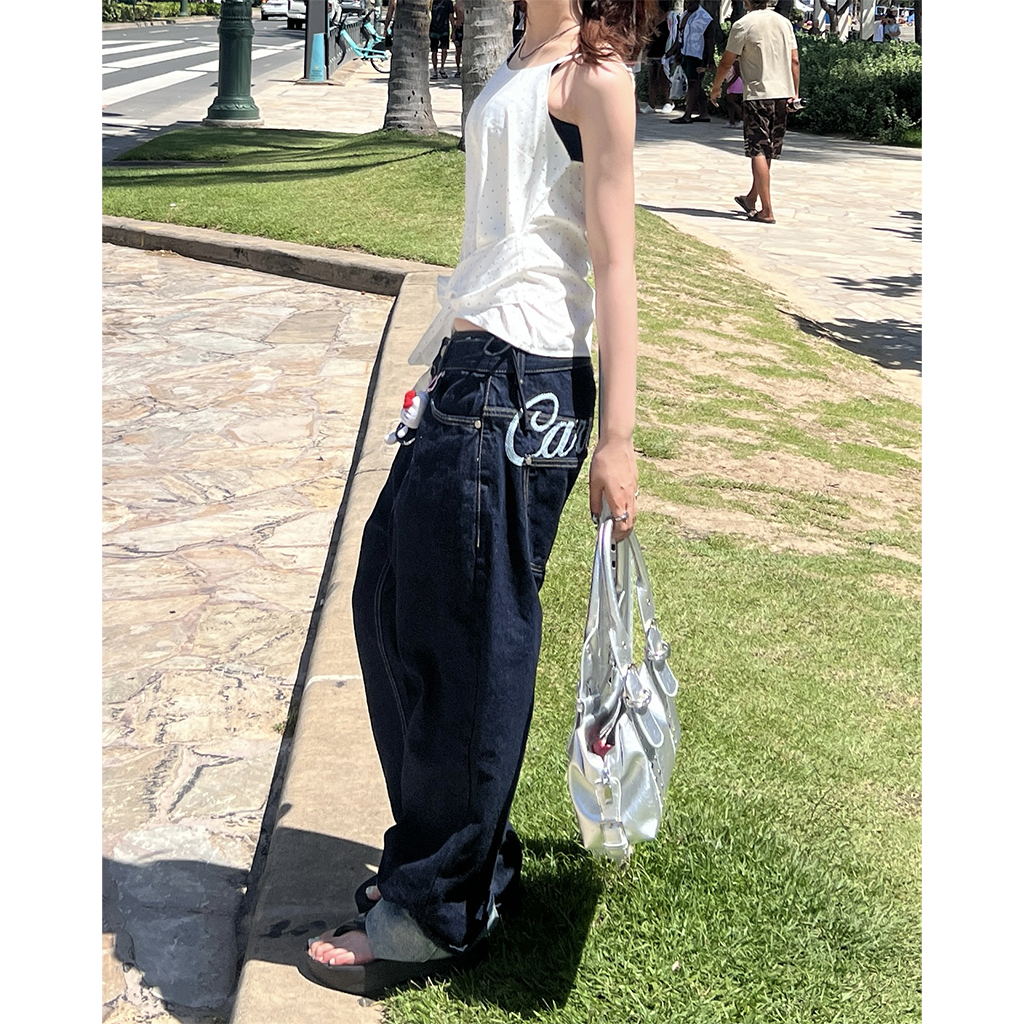 (ユニセックス) バックエンブロイダリーデニムパンツ