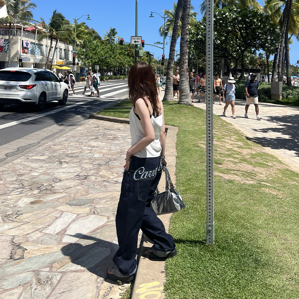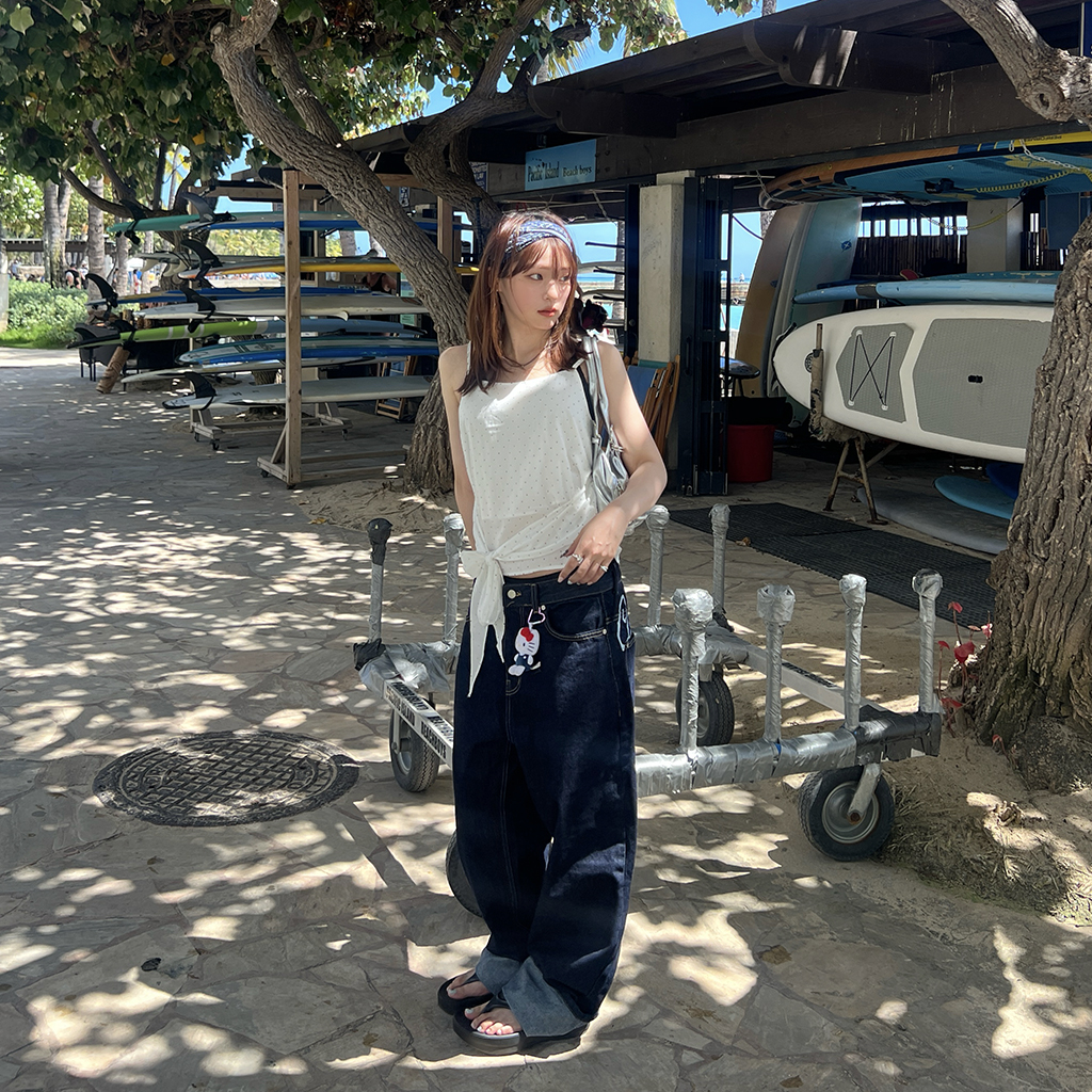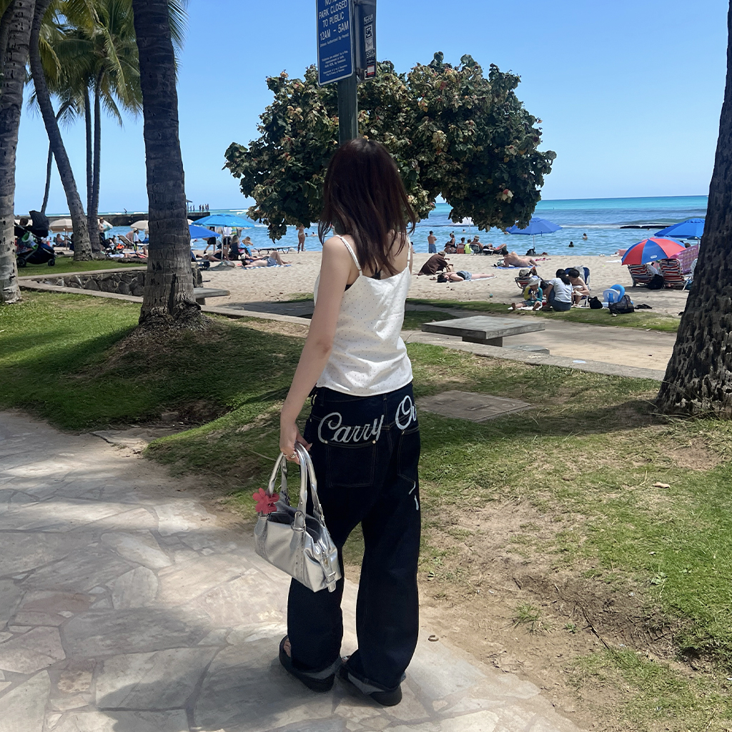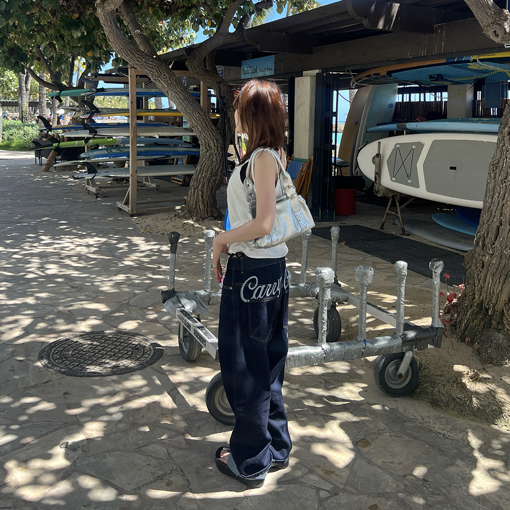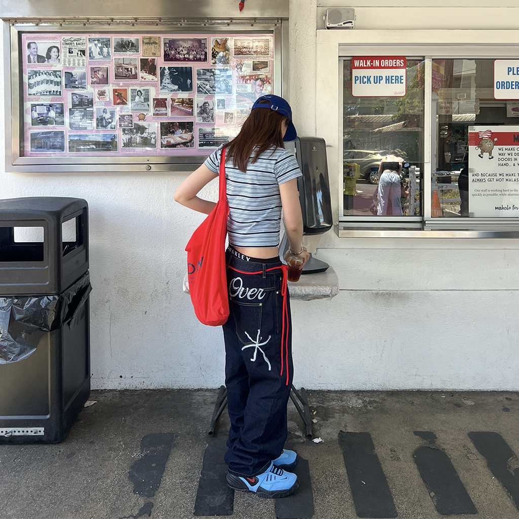 (ユニセックス) バックエンブロイダリーデニムパンツ