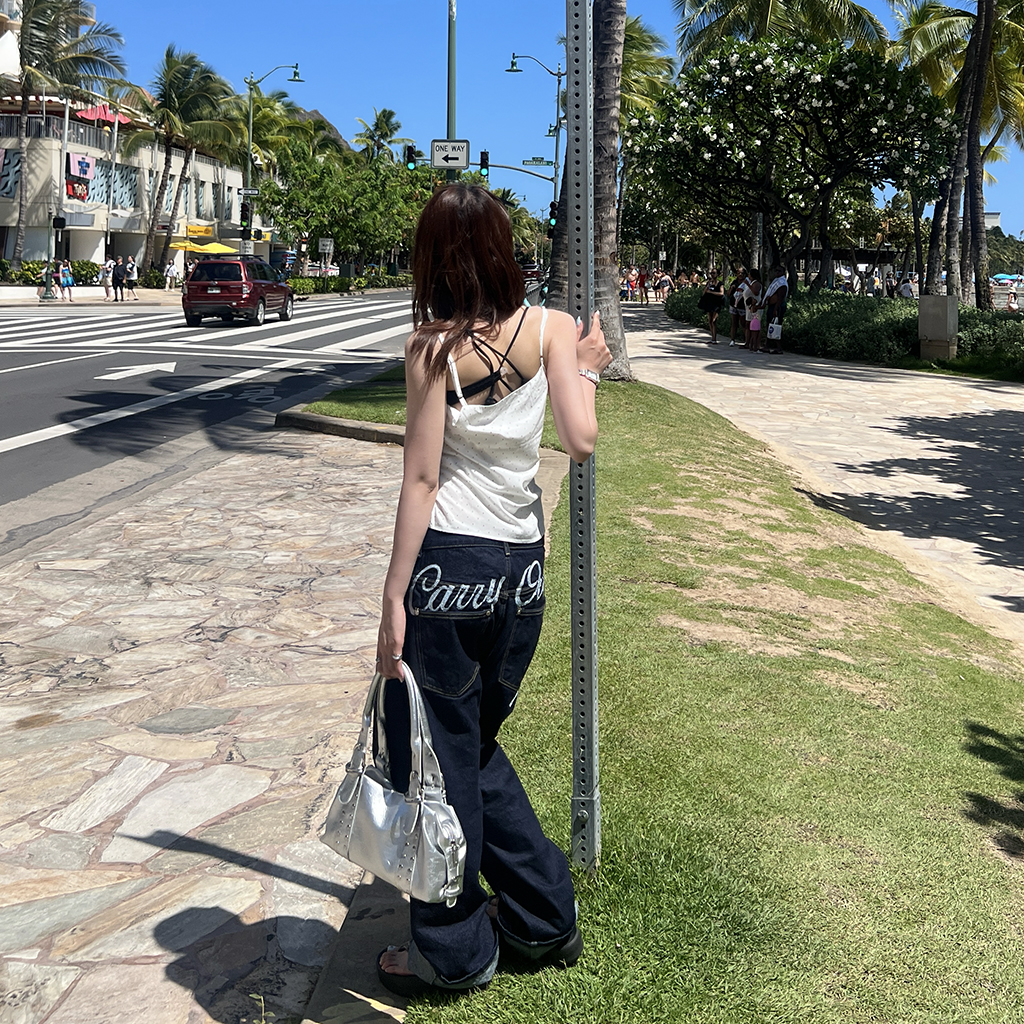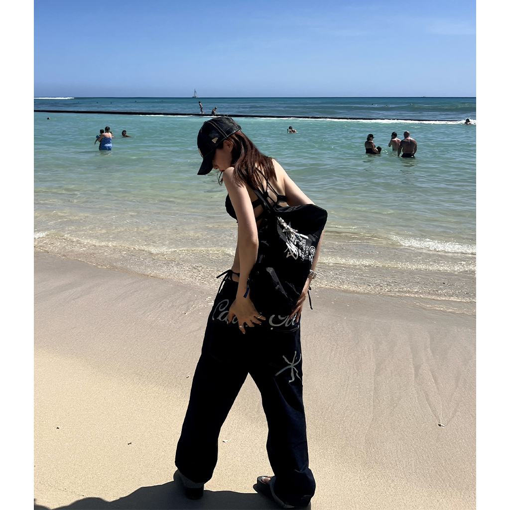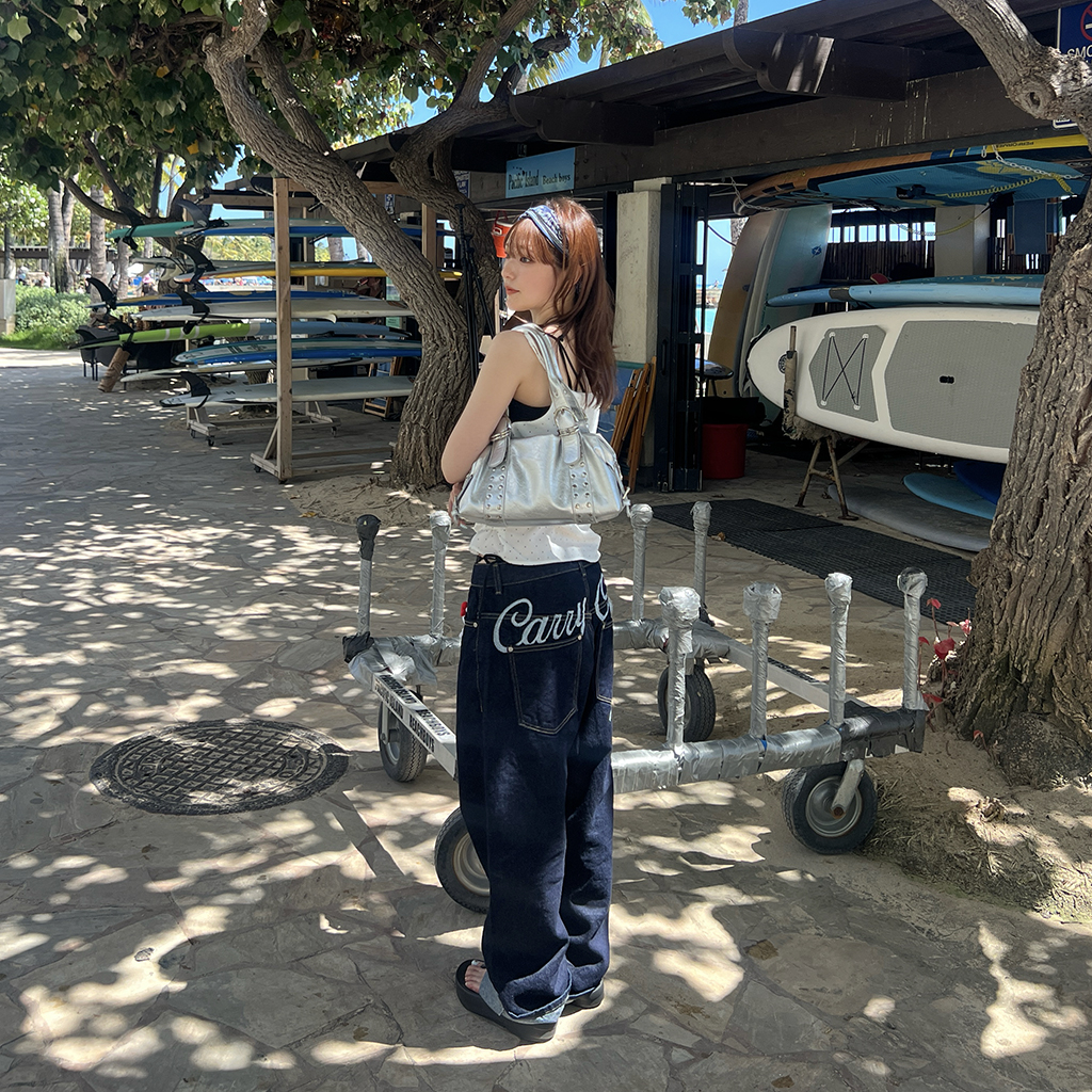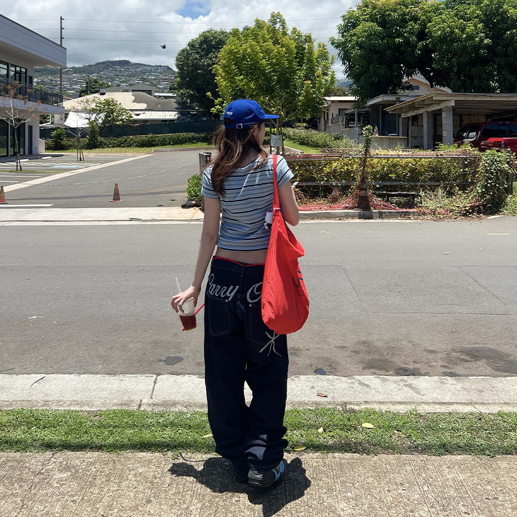 (ユニセックス) バックエンブロイダリーデニムパンツ