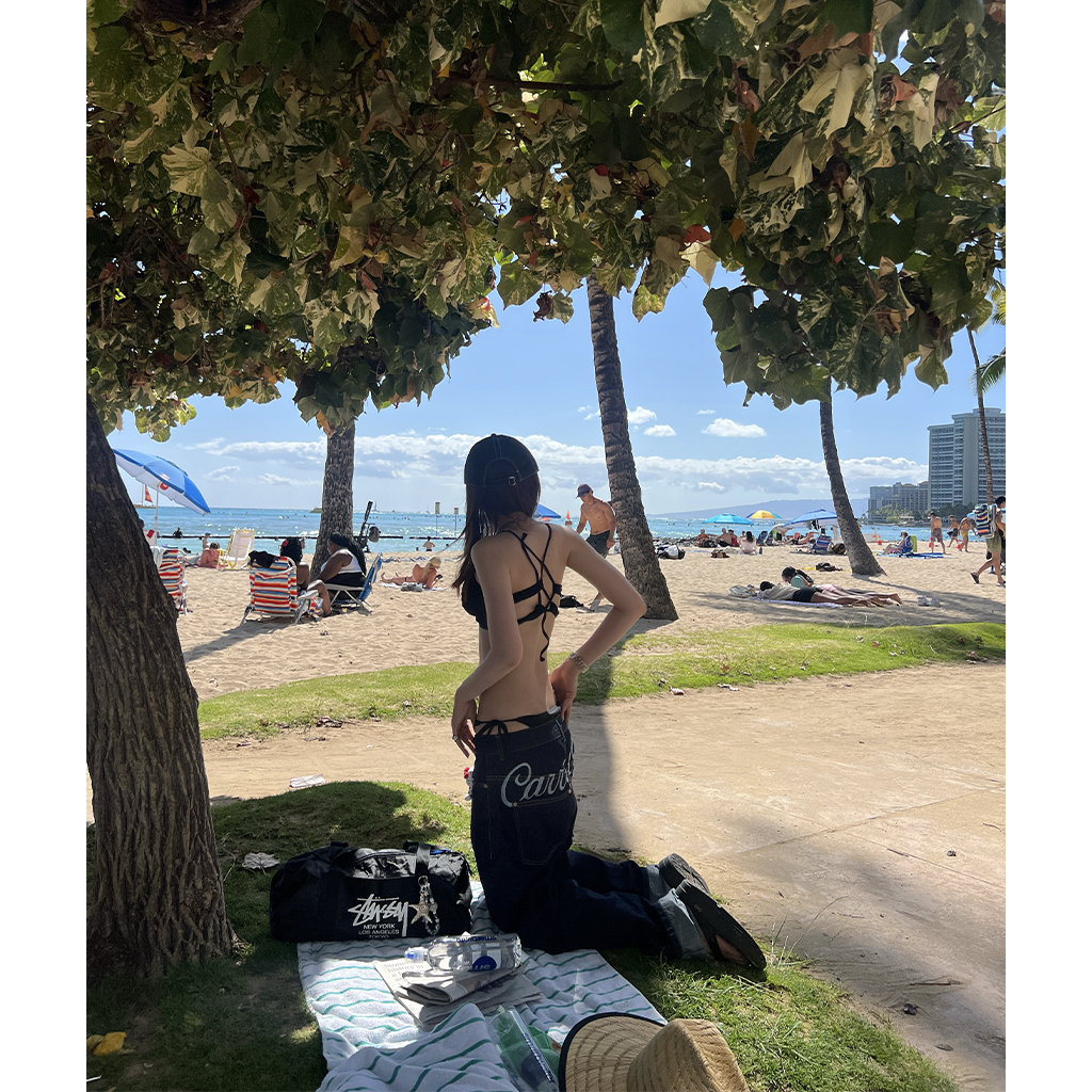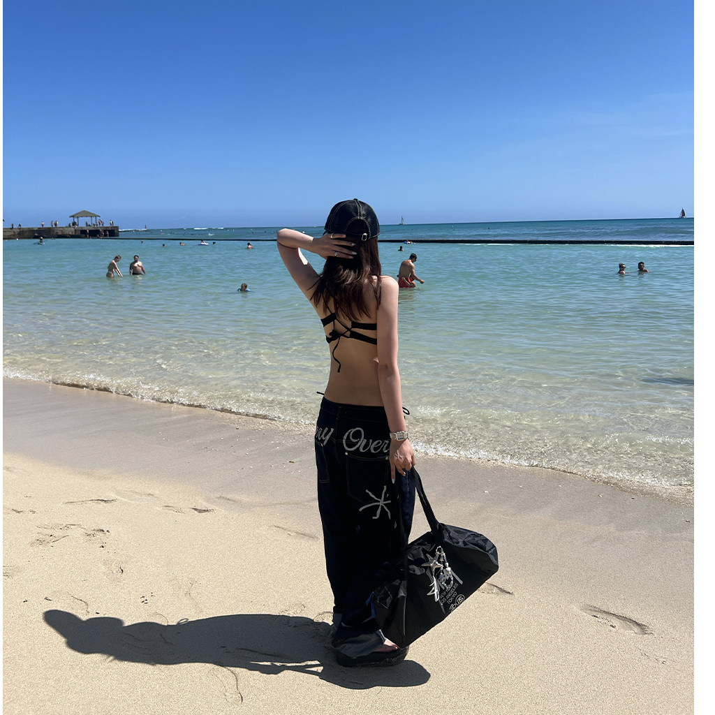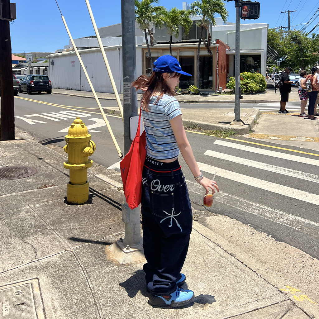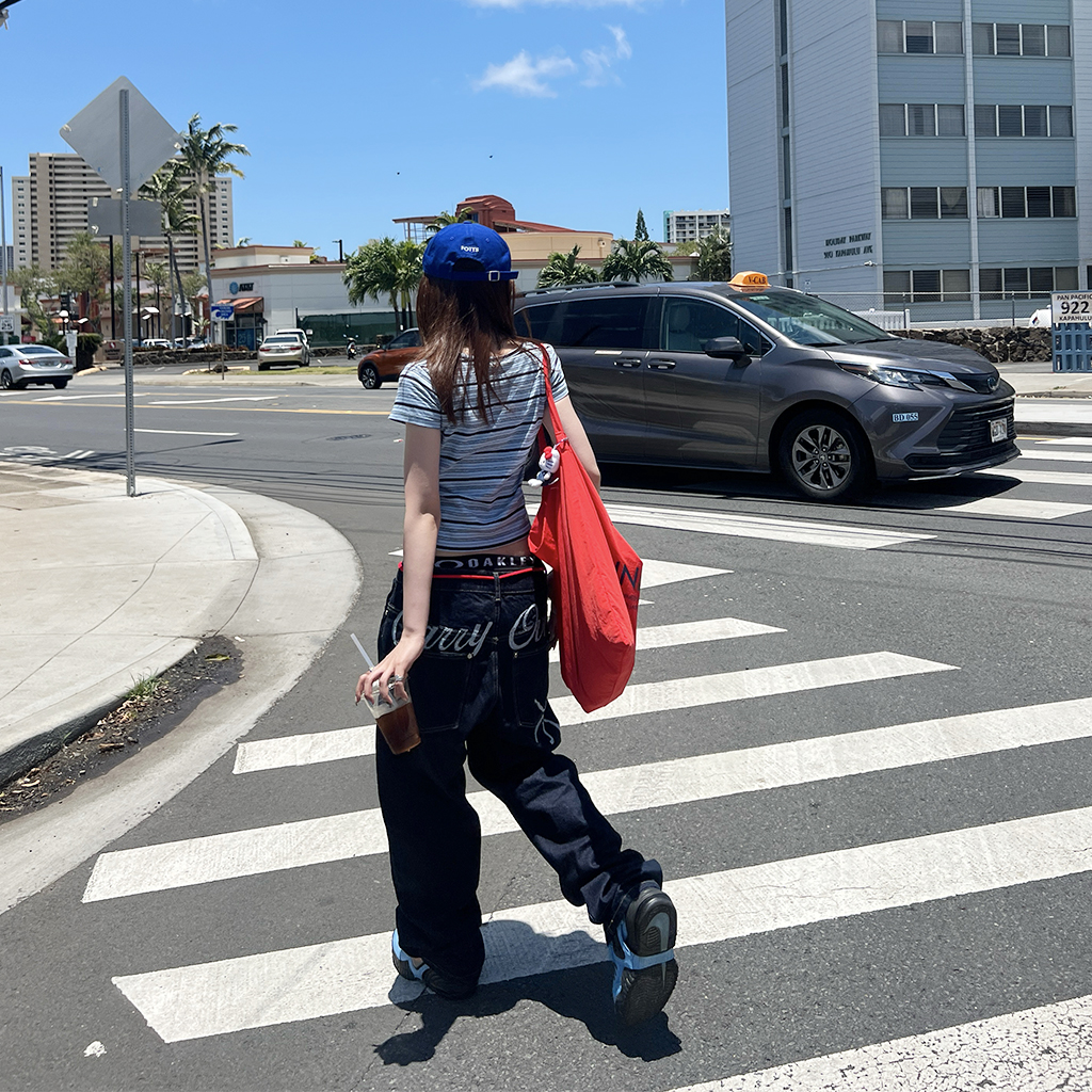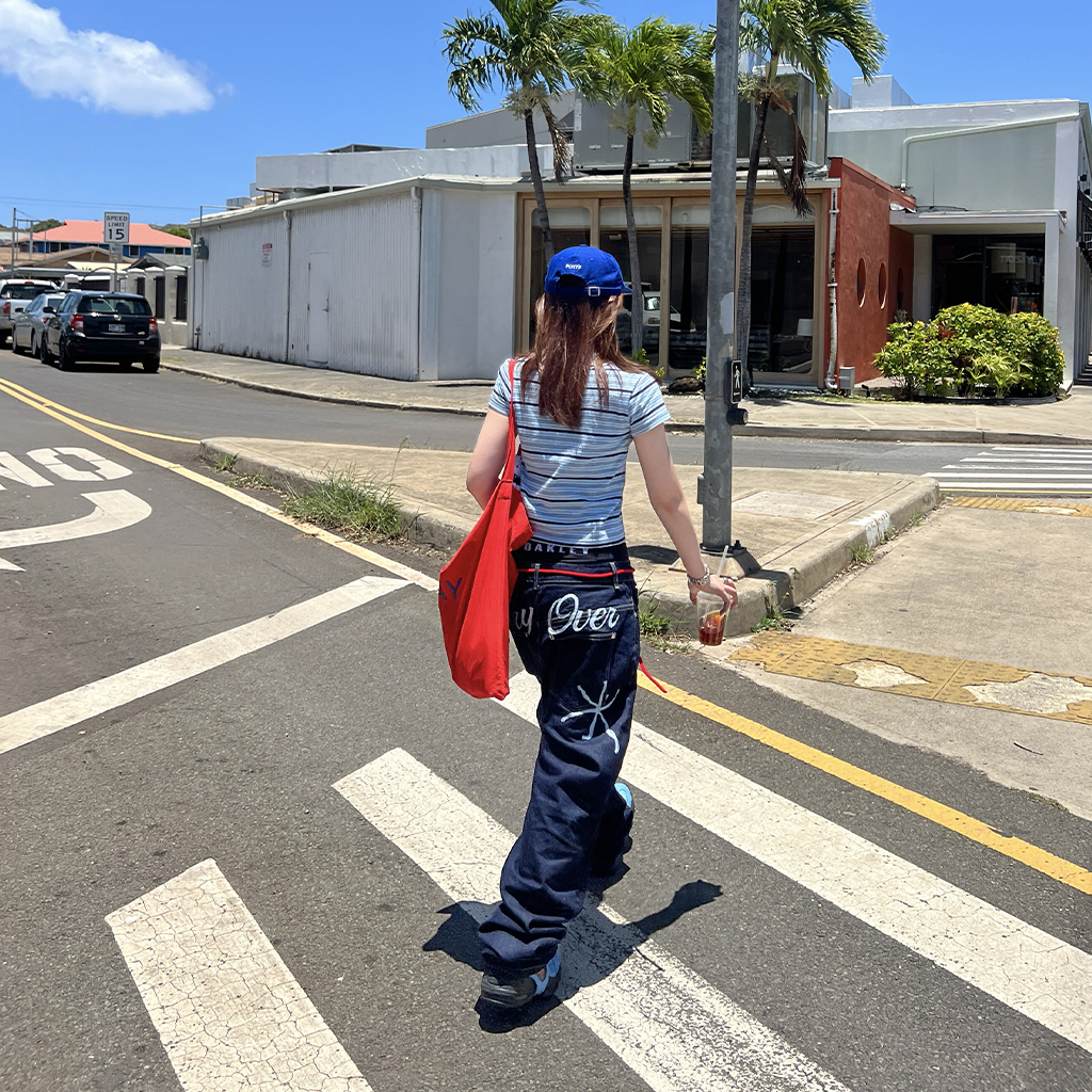 (ユニセックス) バックエンブロイダリーデニムパンツ