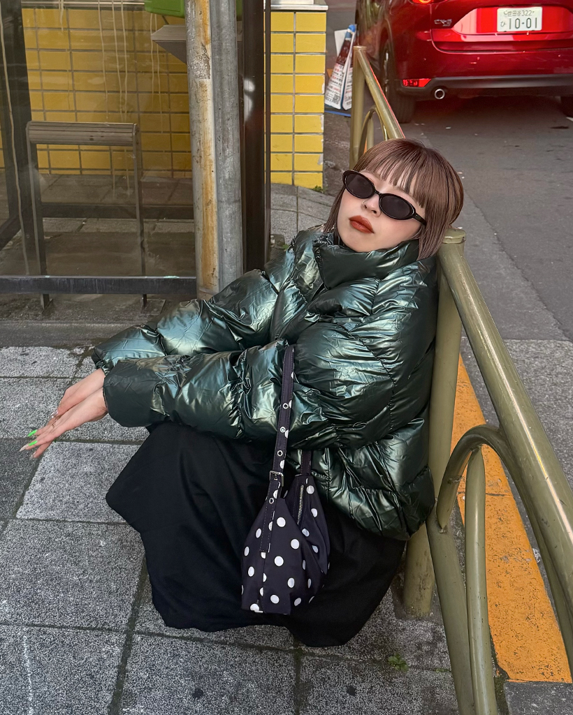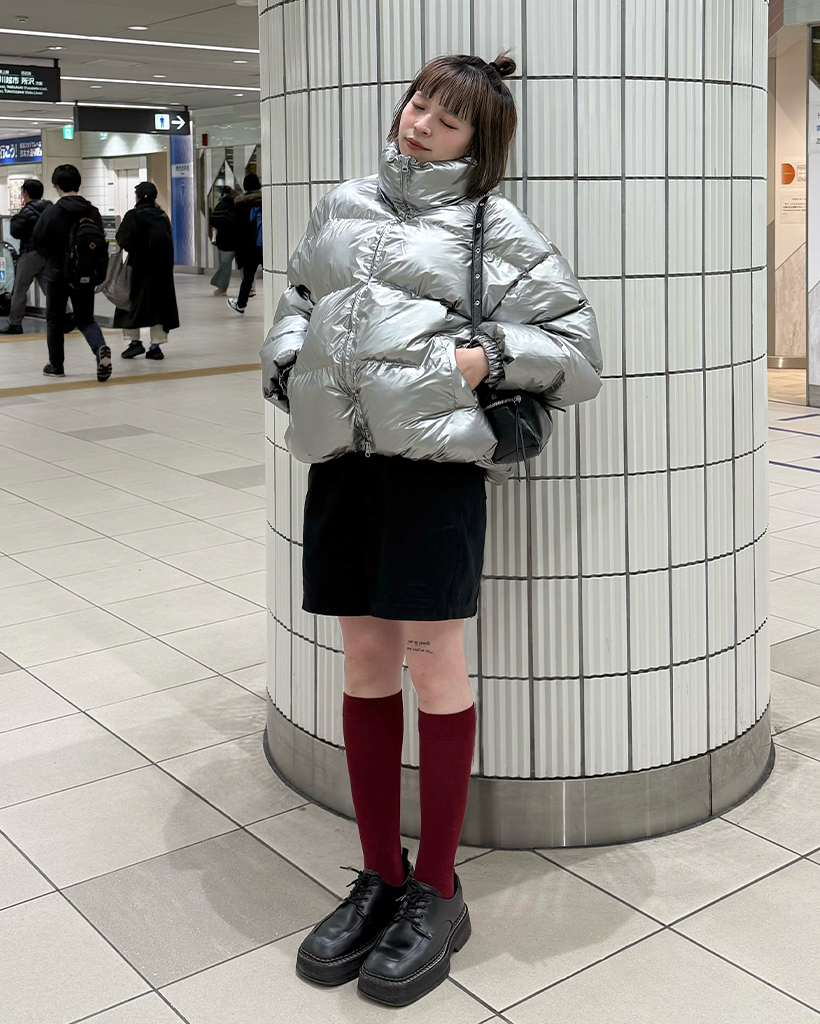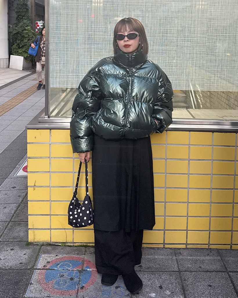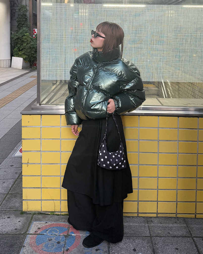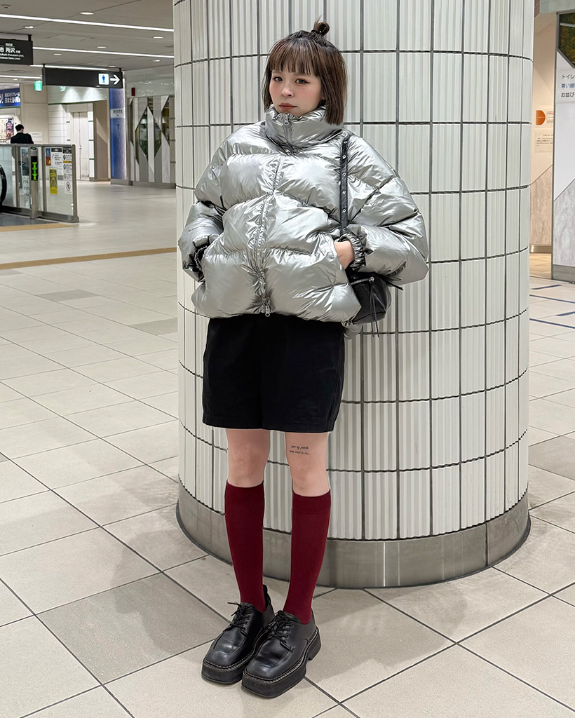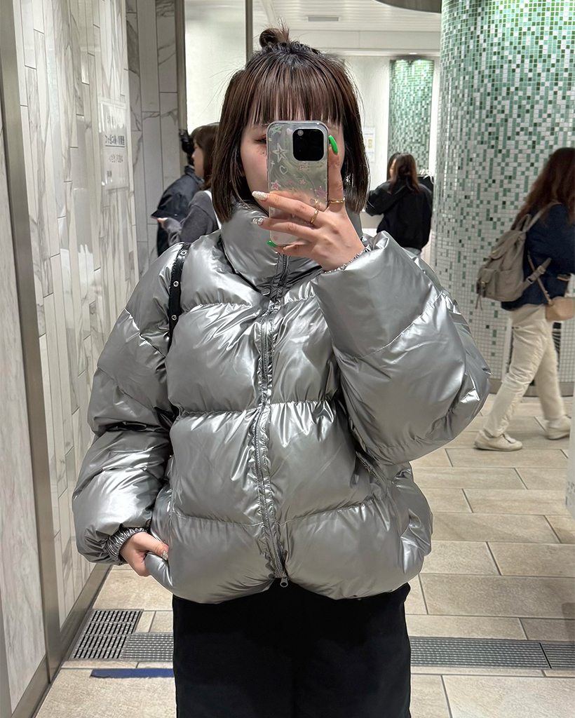 (ユニセックス)グロッシーショートダウンジャケット