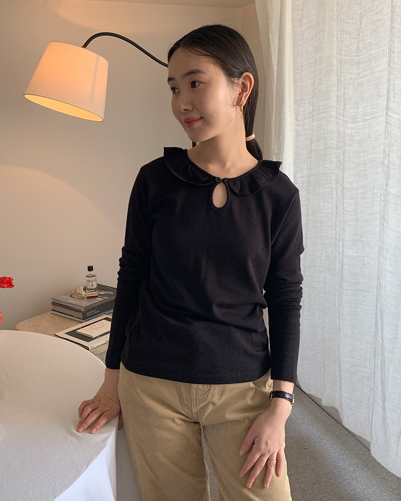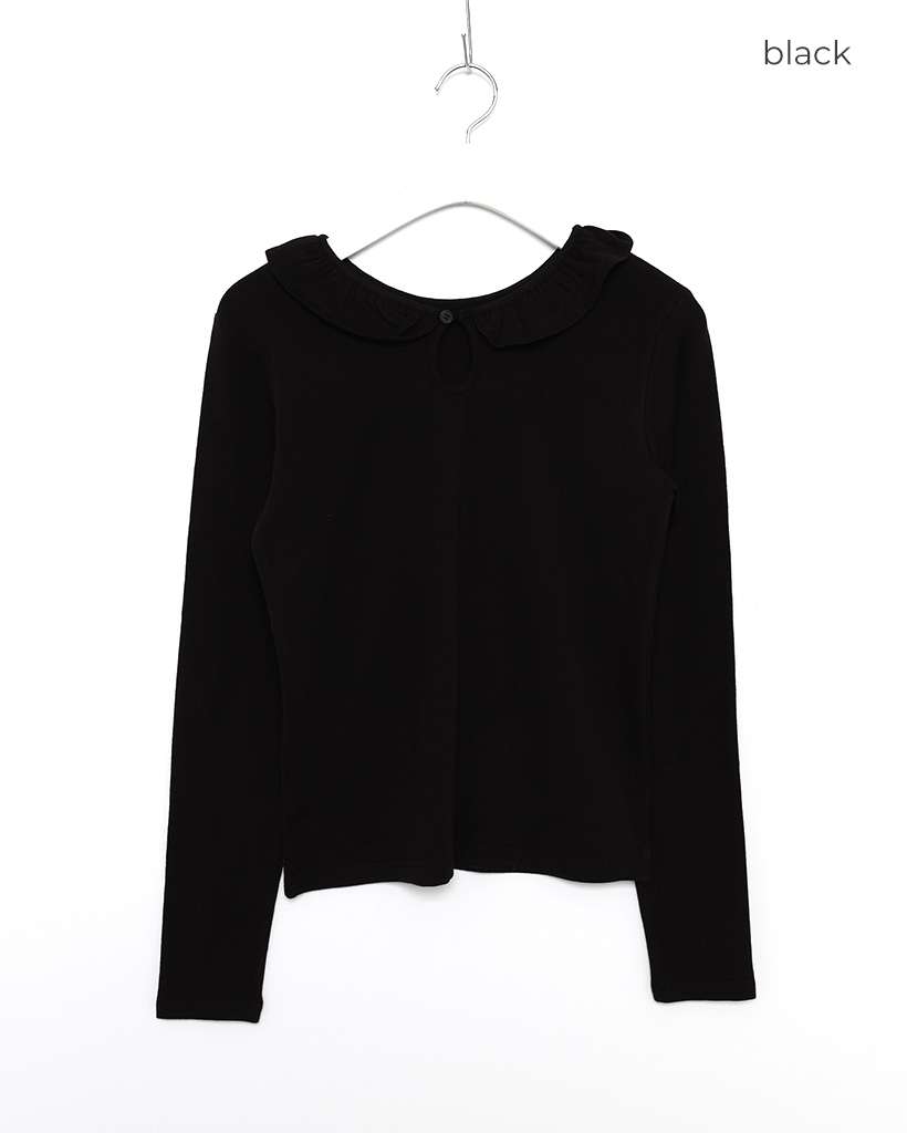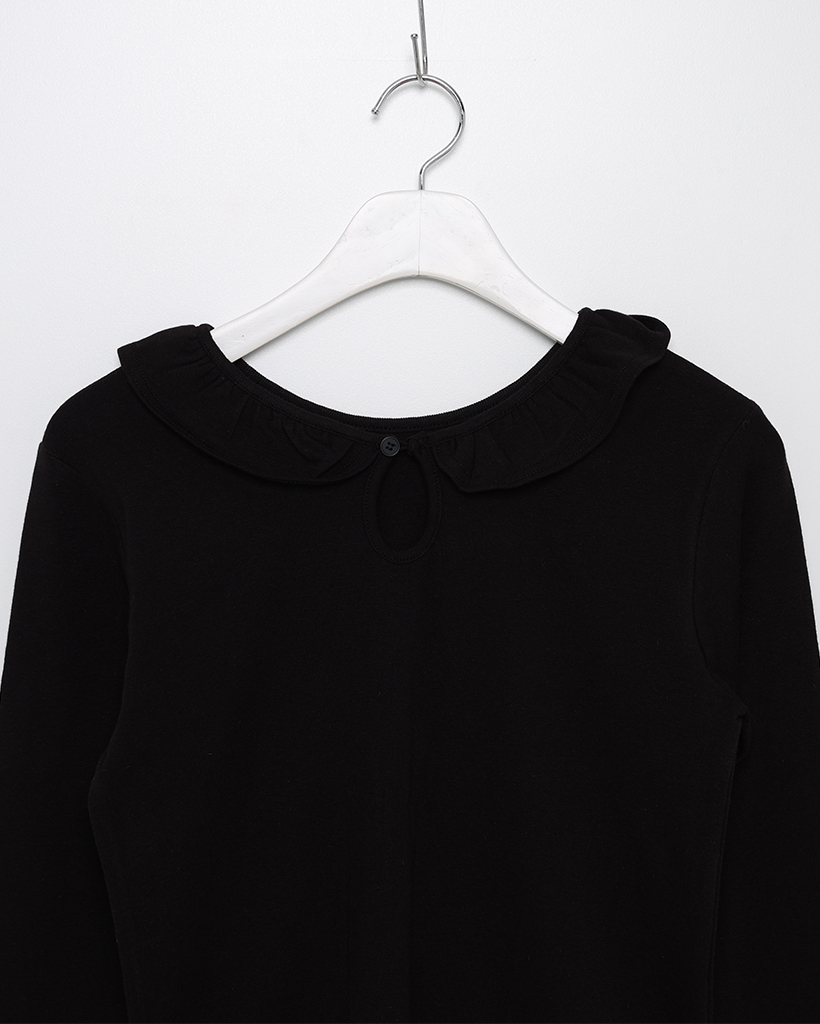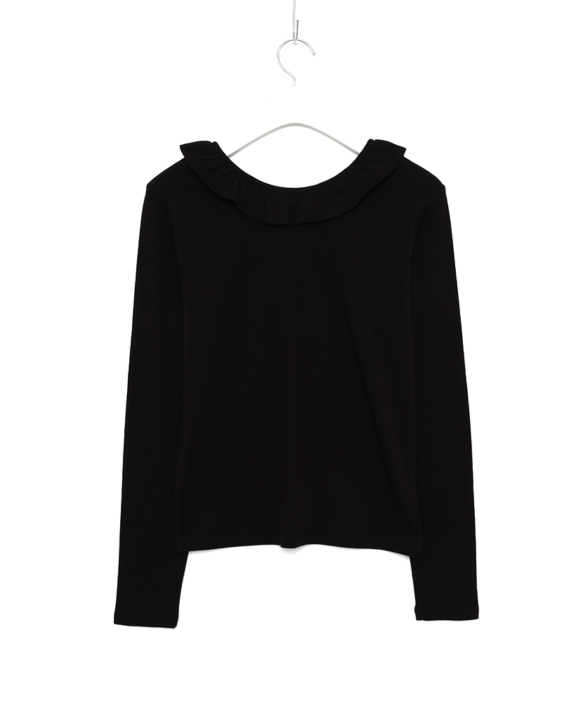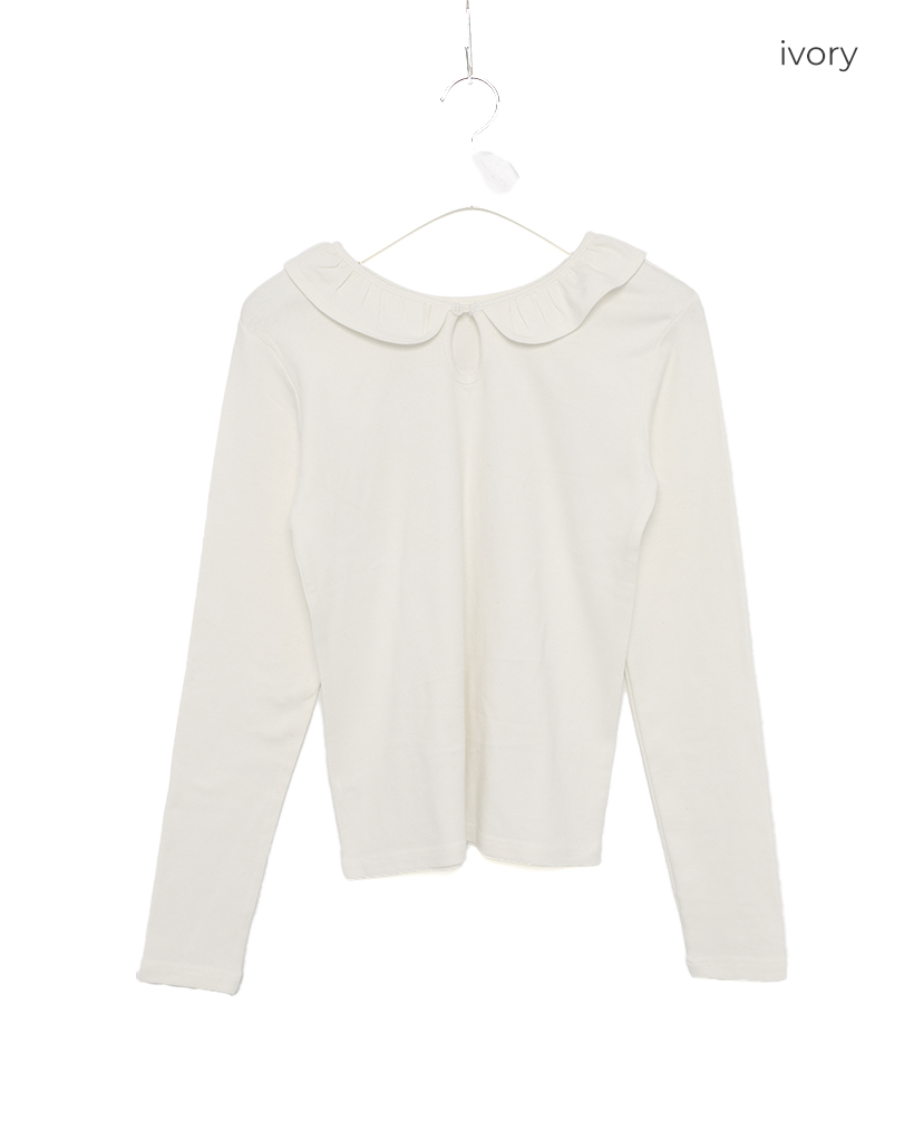 ラウンドカラーフリルボタンソフトTシャツ
