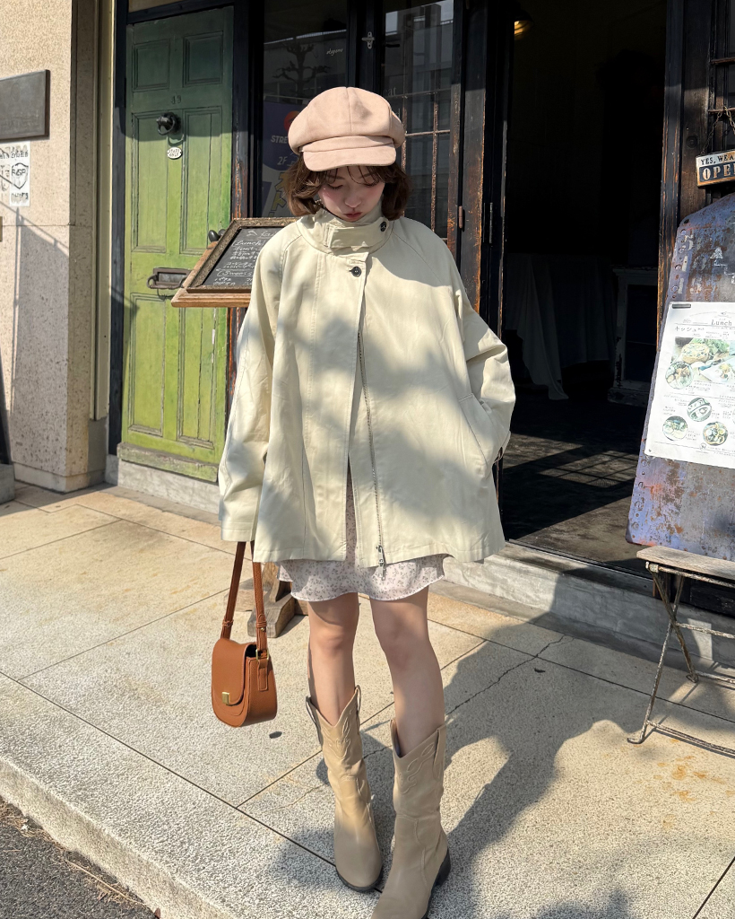 スタンドネックケープバックダブルジップジャケット