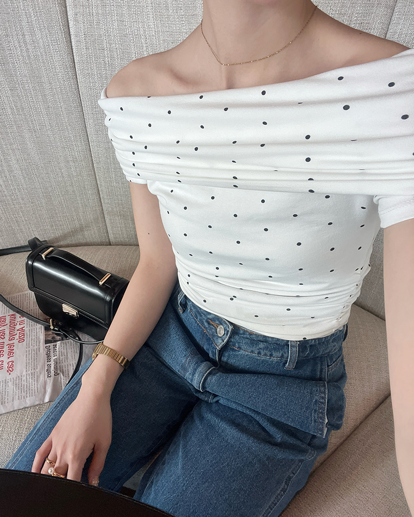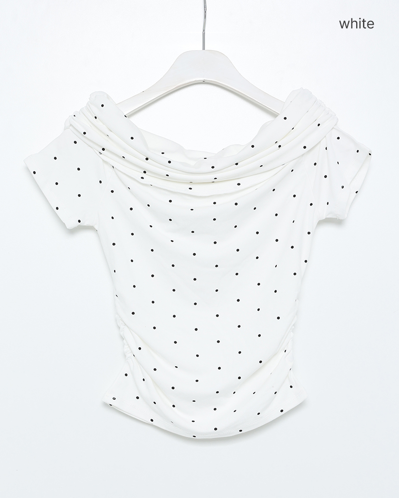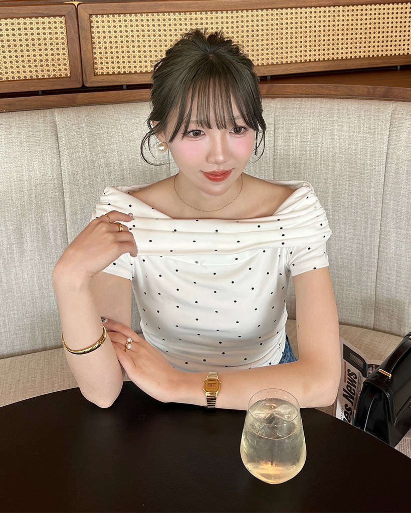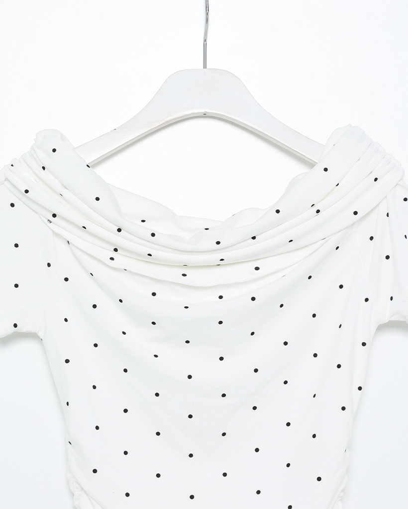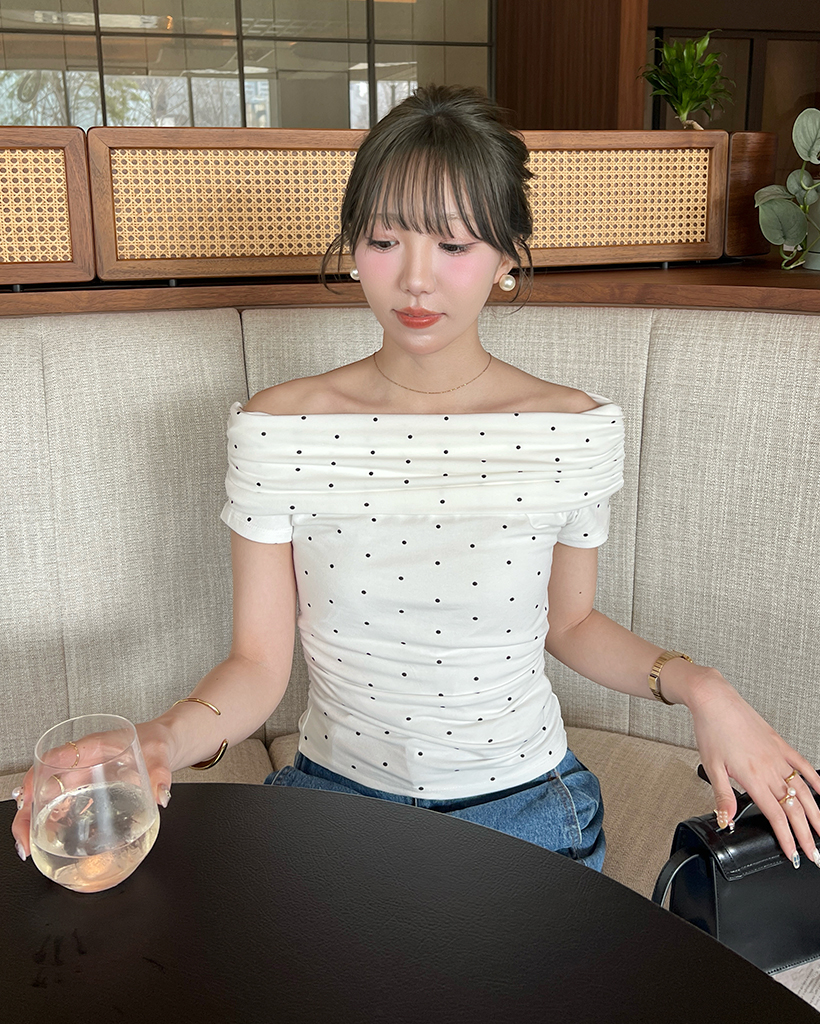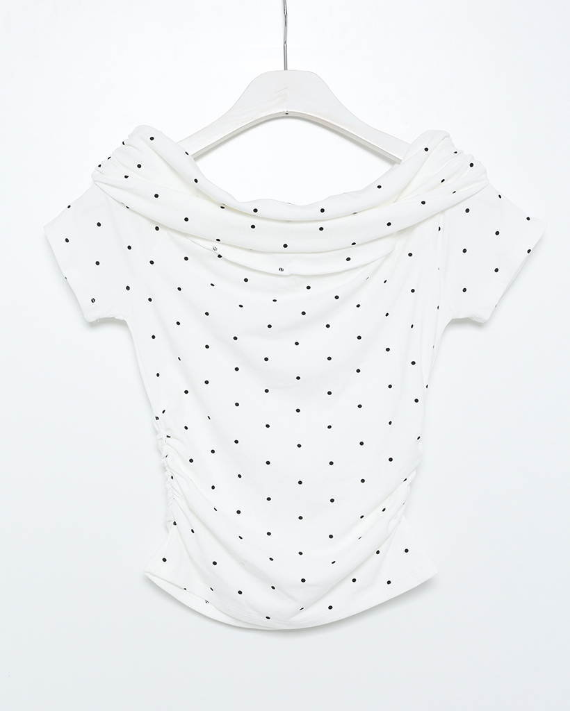 シャーリングドットオフショルTシャツ