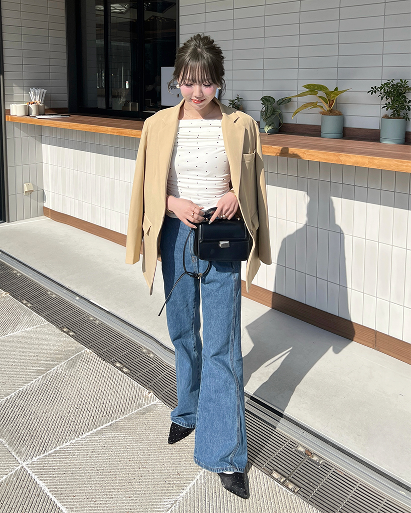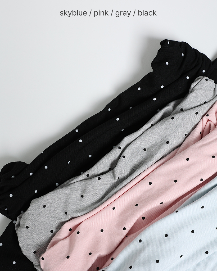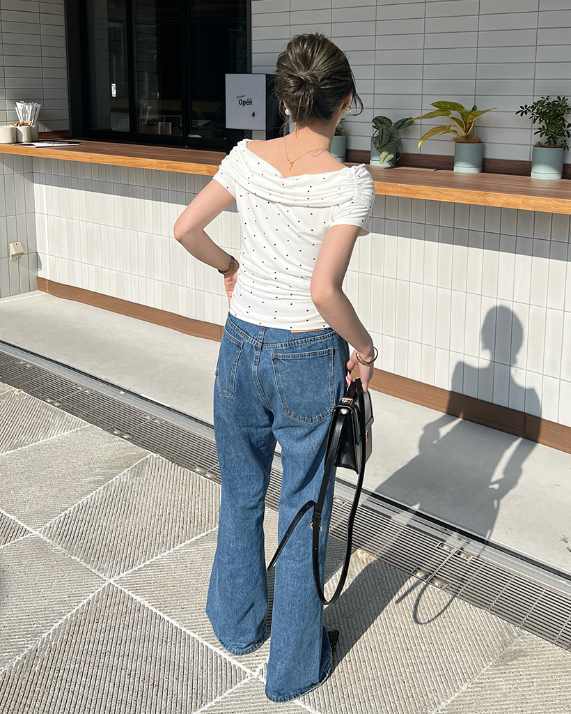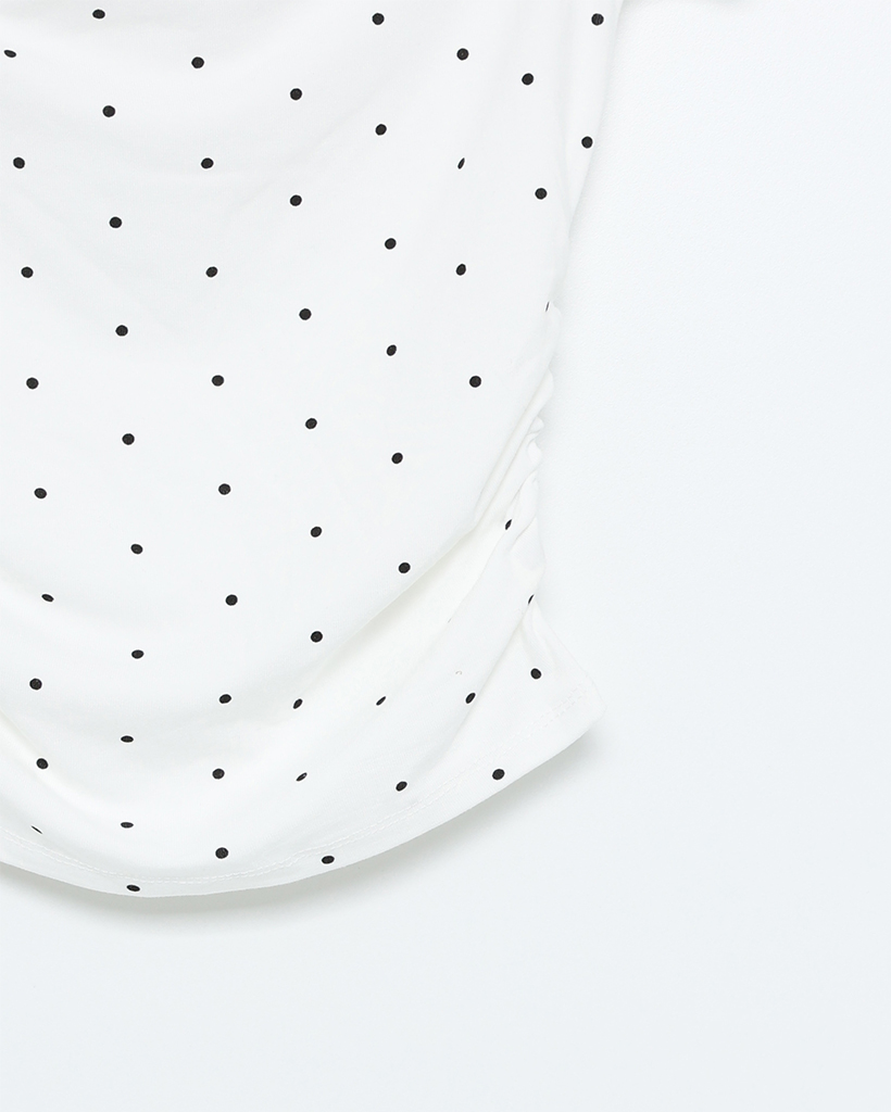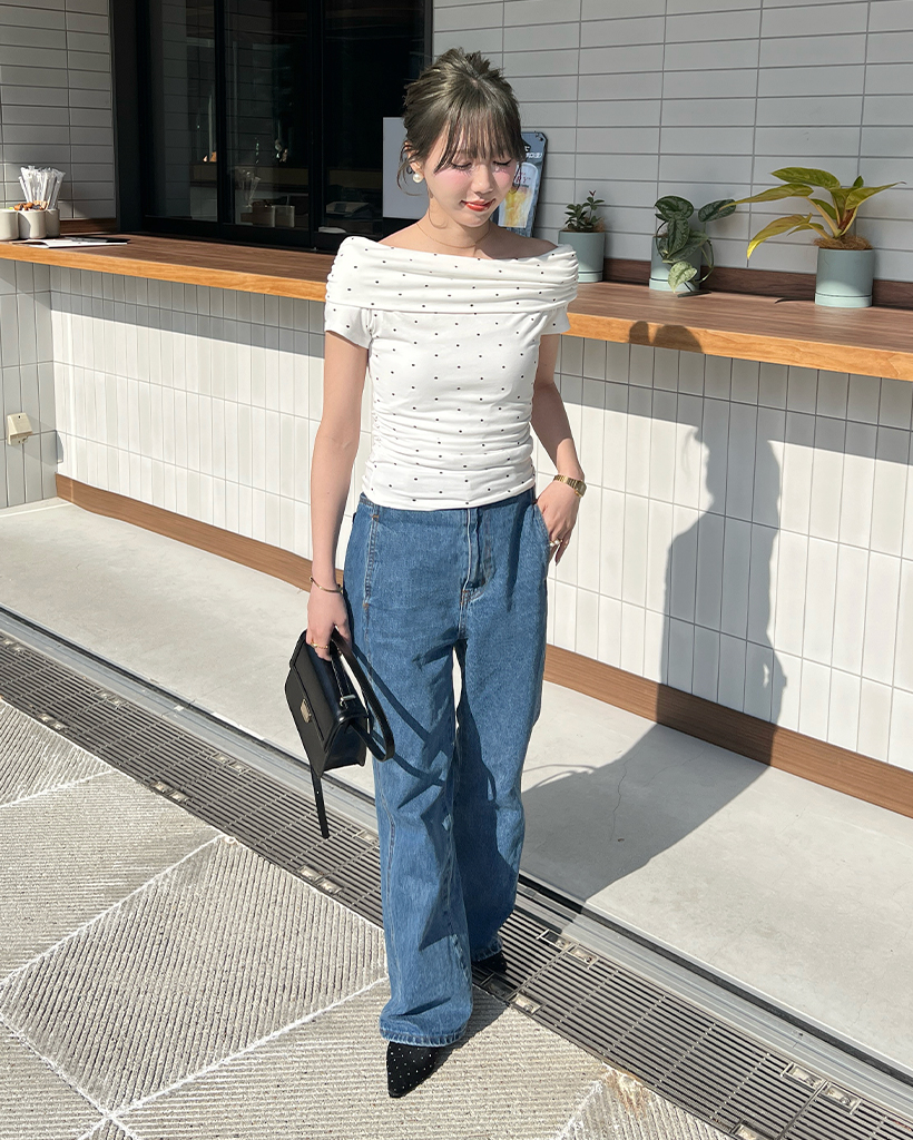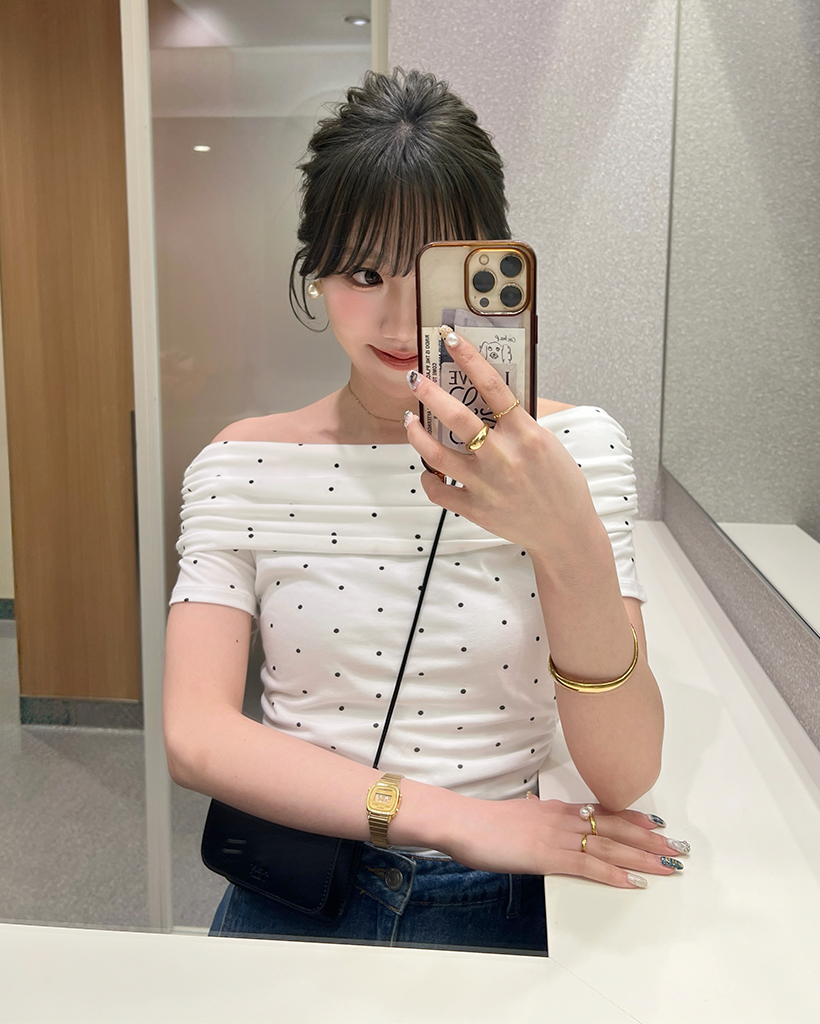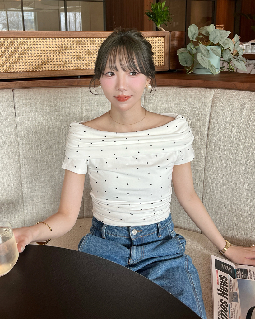 シャーリングドットオフショルTシャツ