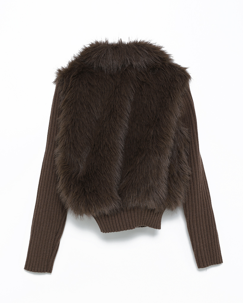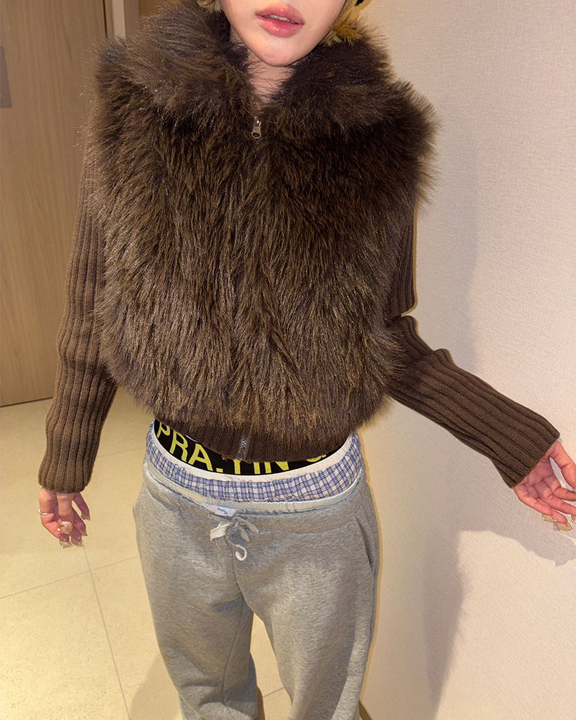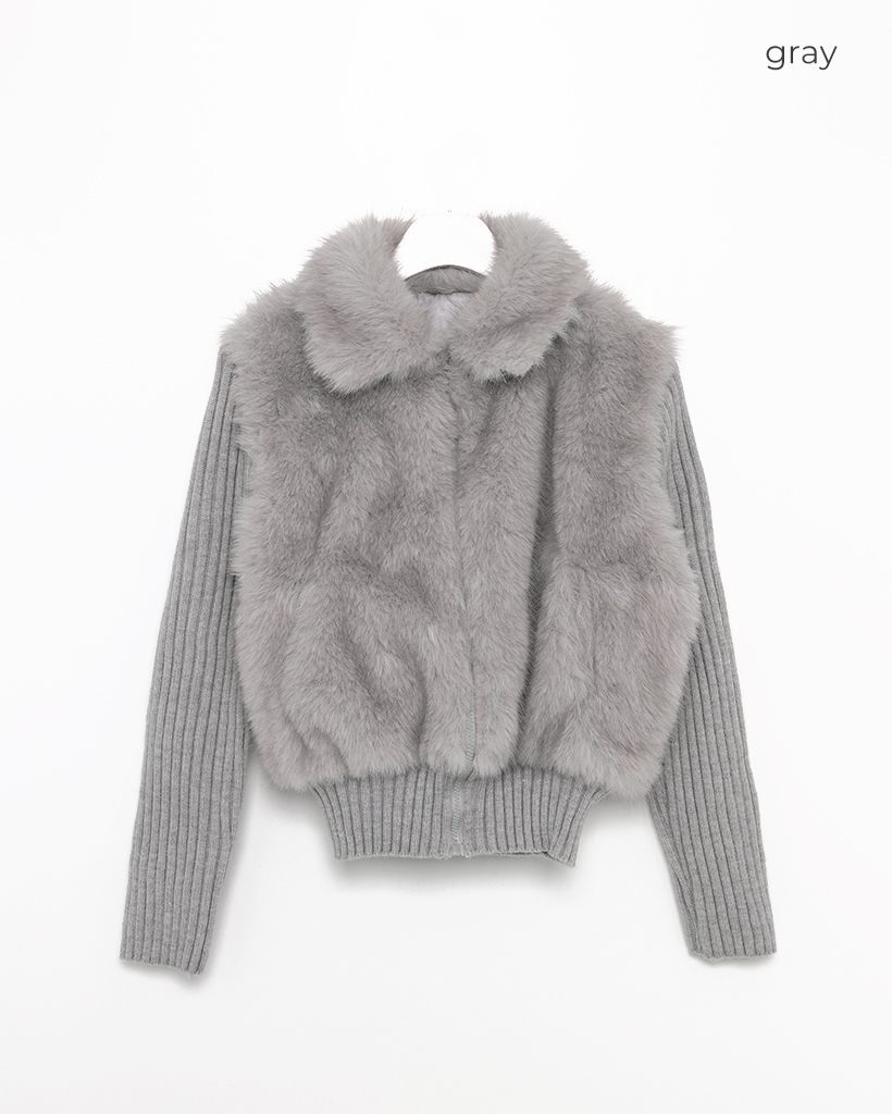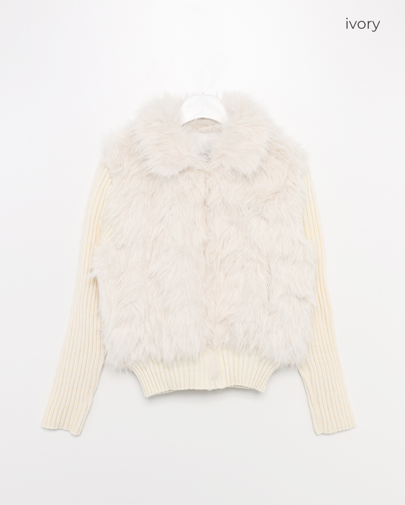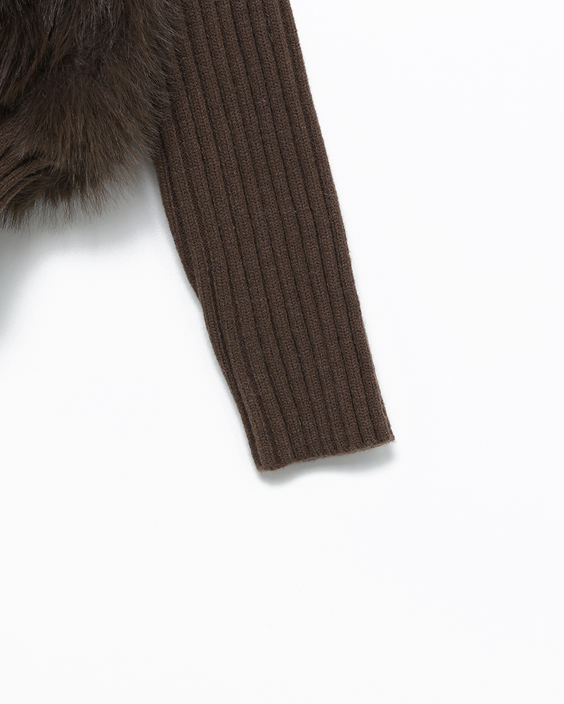 カラーファーリブニットスリーブジップアップ