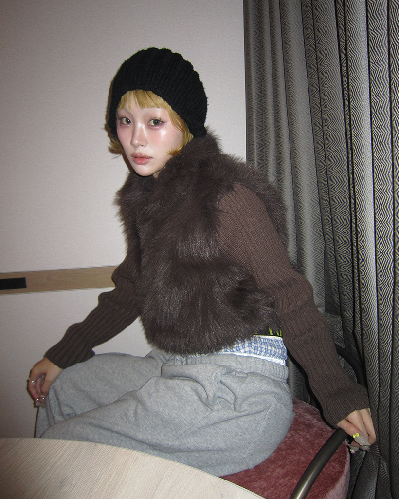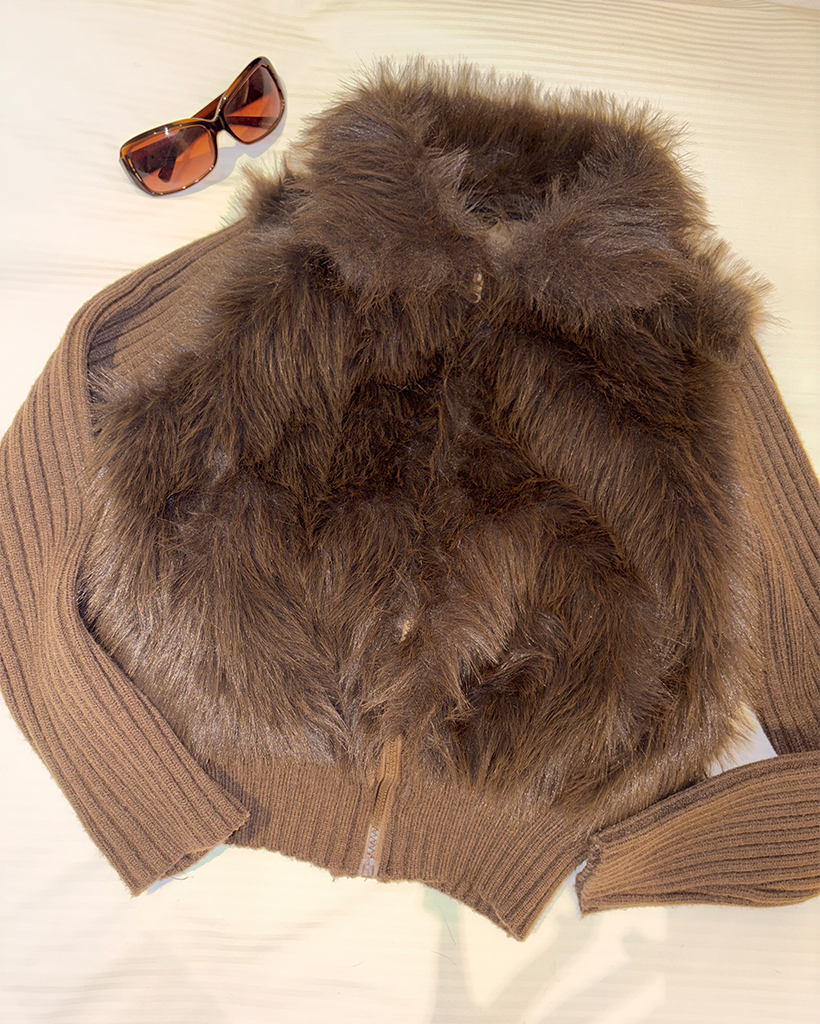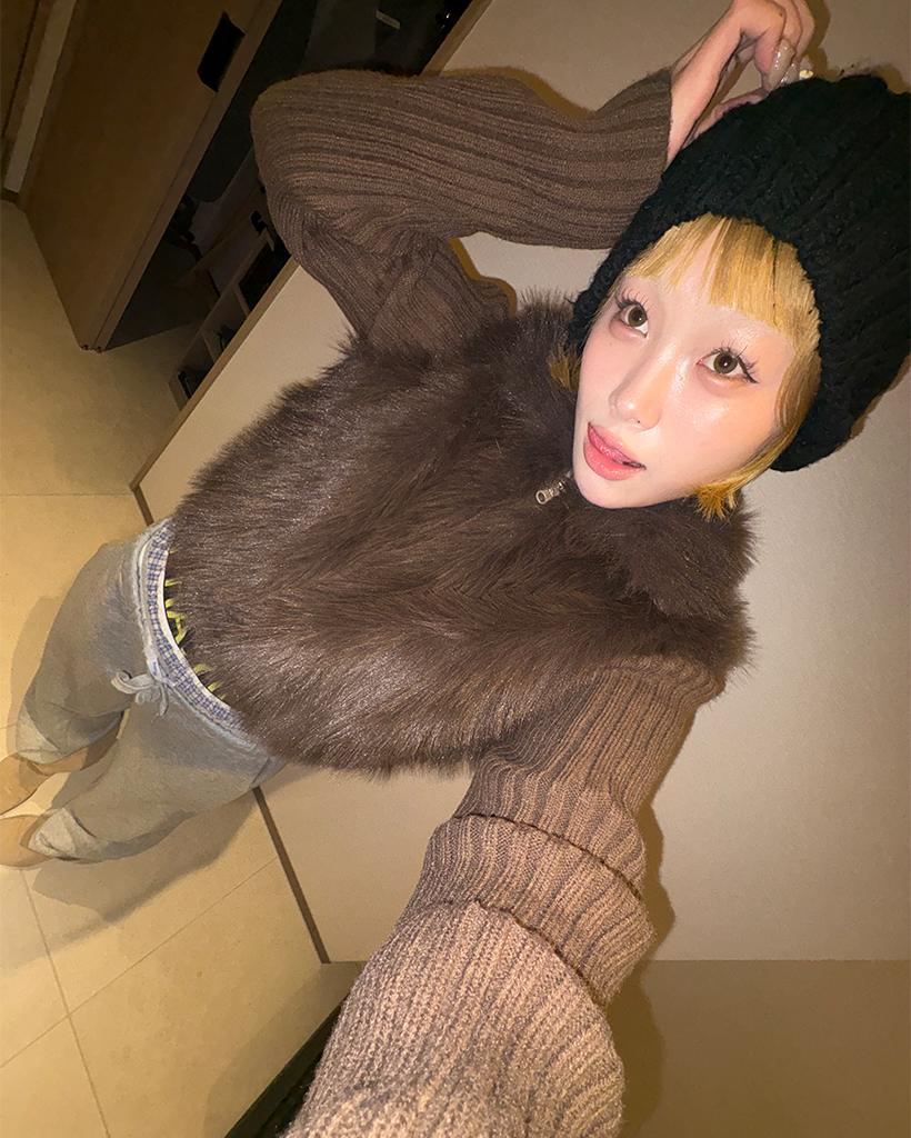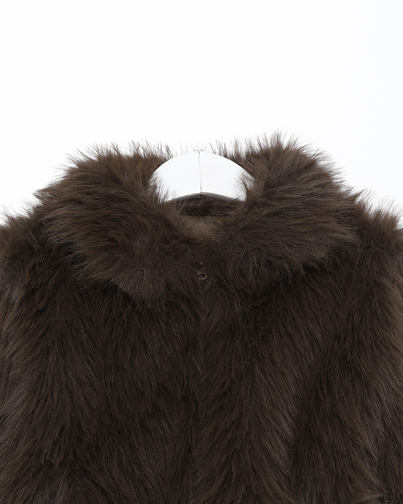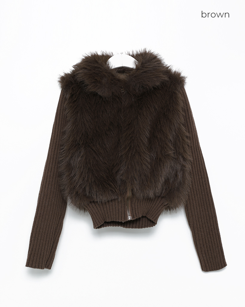 カラーファーリブニットスリーブジップアップ