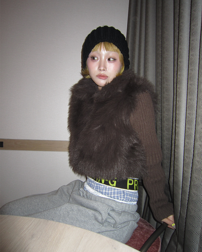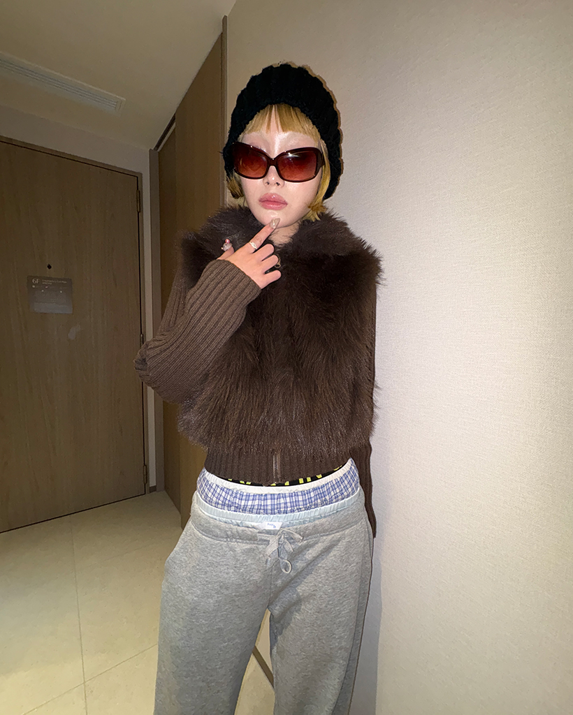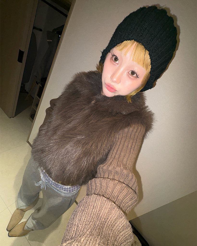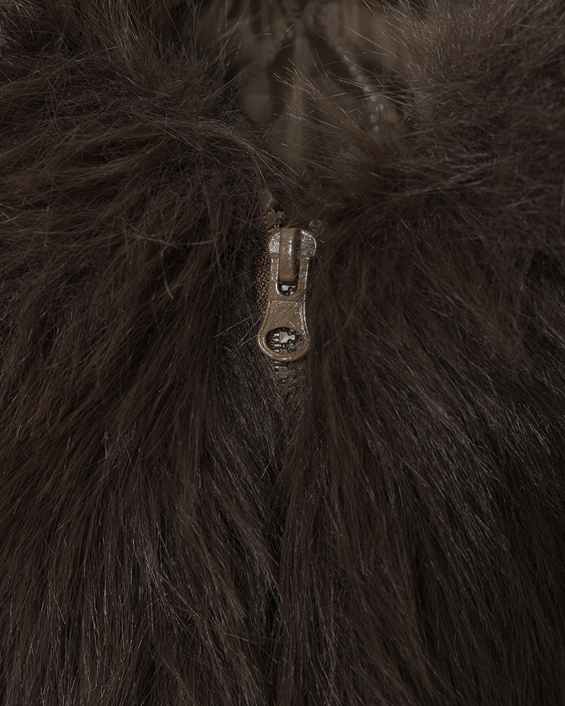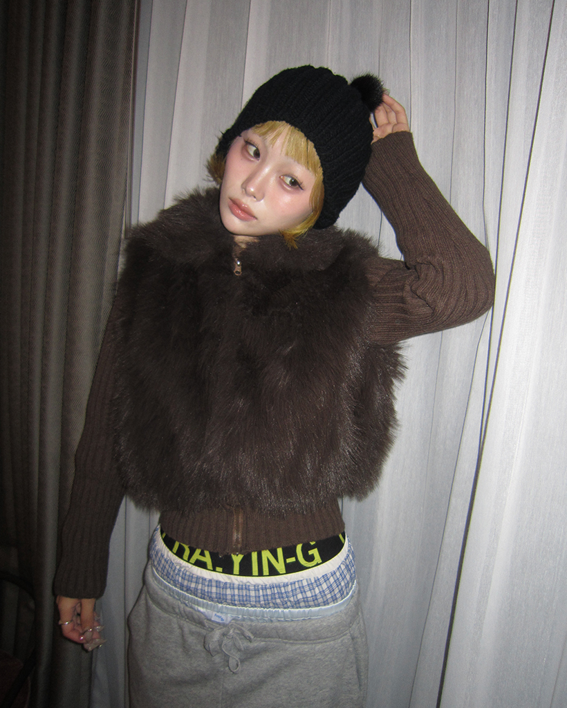 カラーファーリブニットスリーブジップアップ