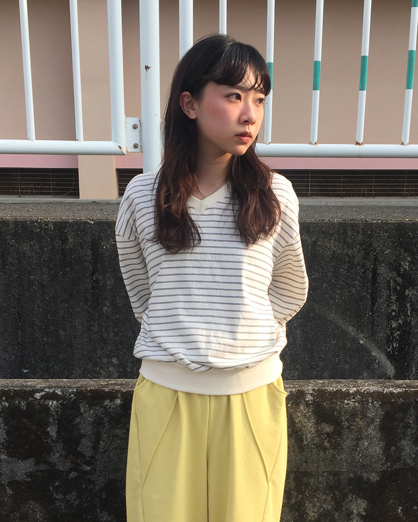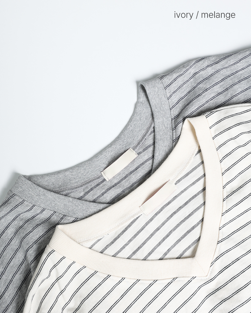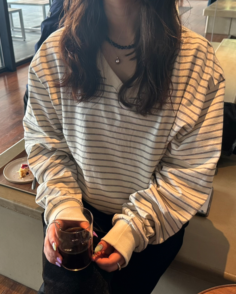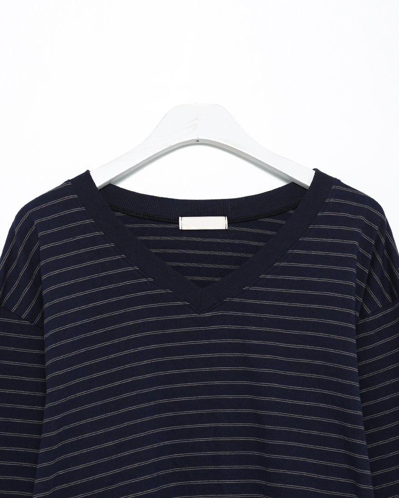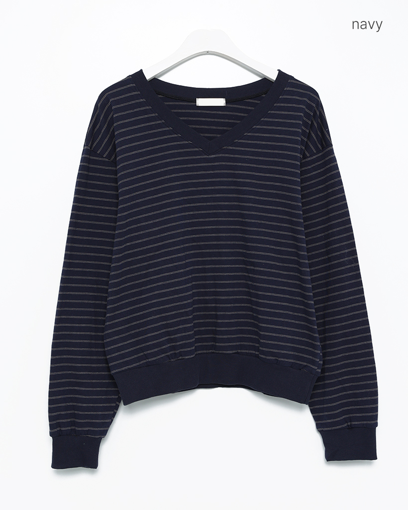 Vネックダブルボーダープルオーバー