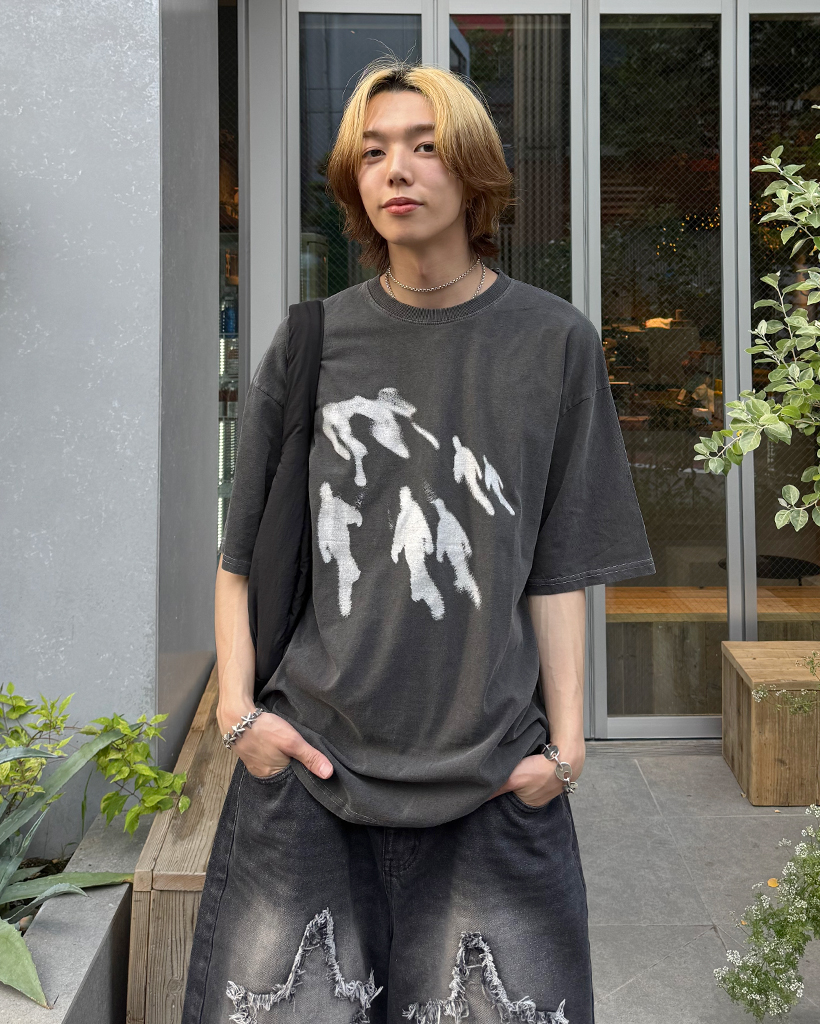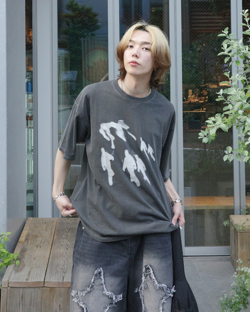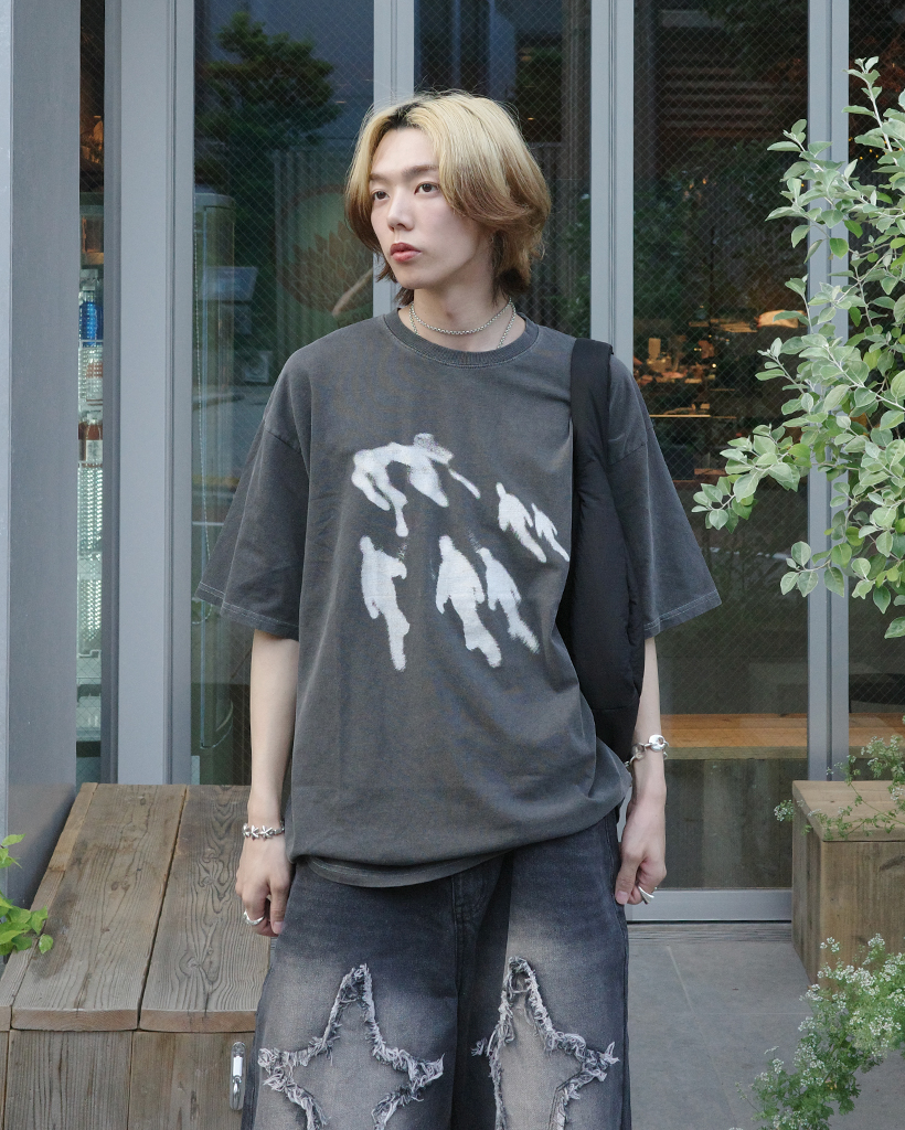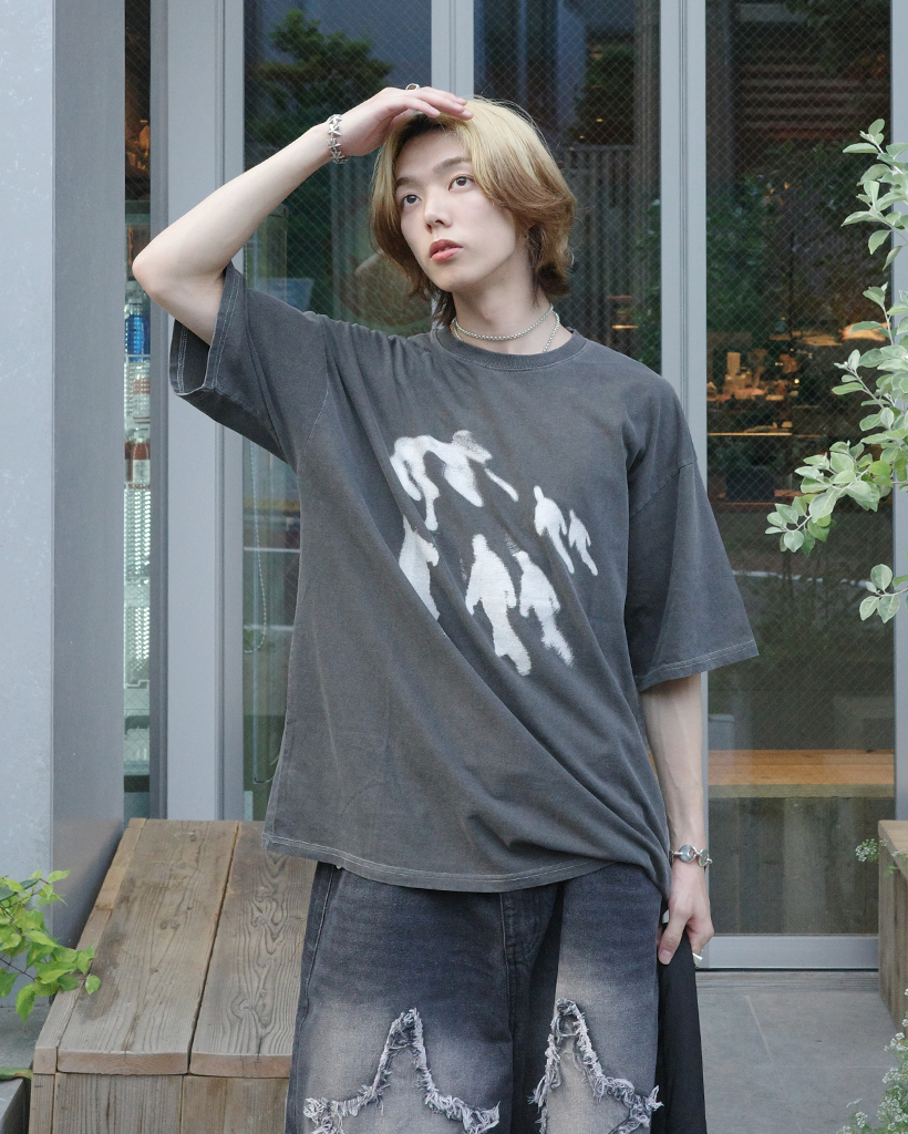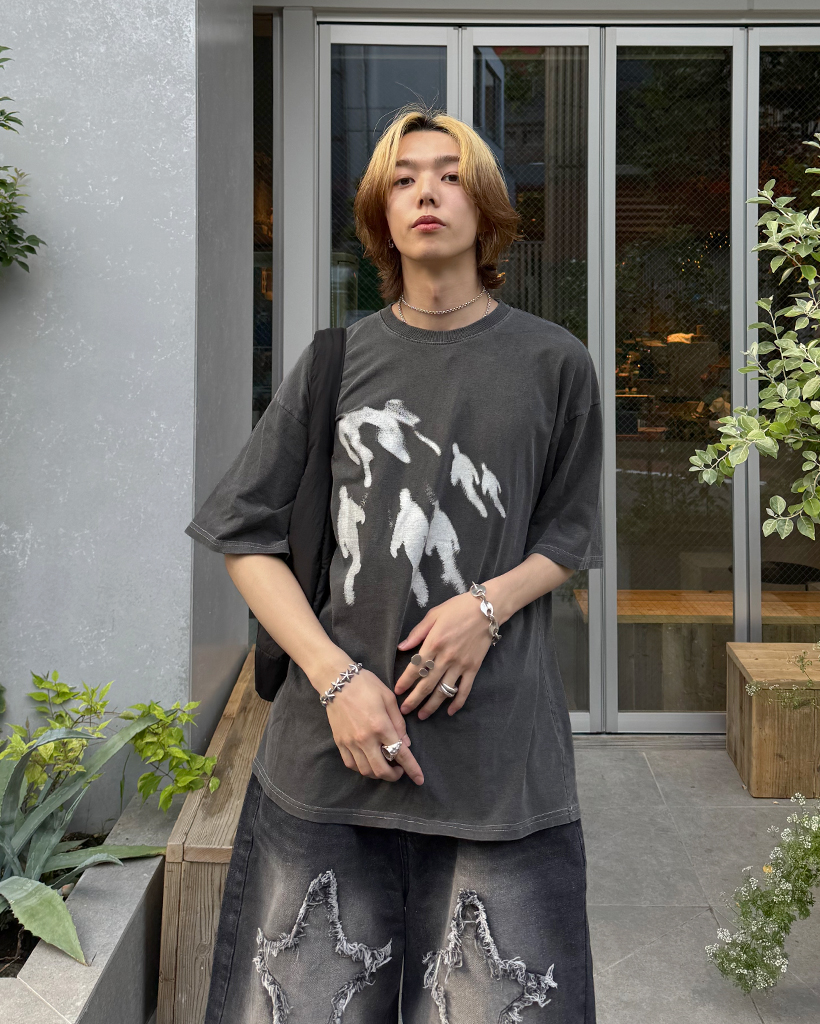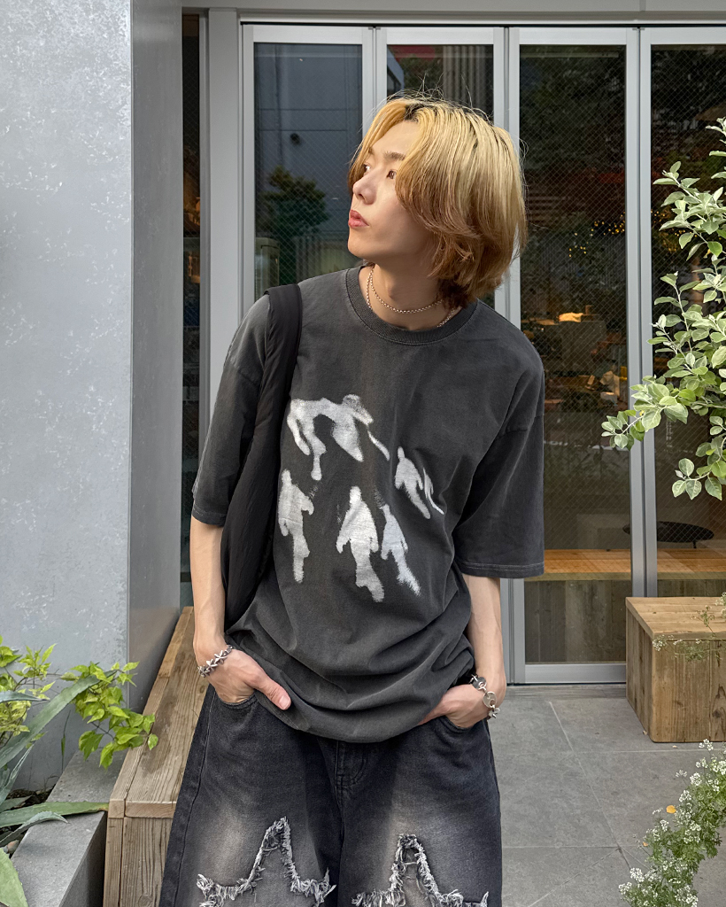 (ユニセックス)ピープルプリント半袖Tシャツ