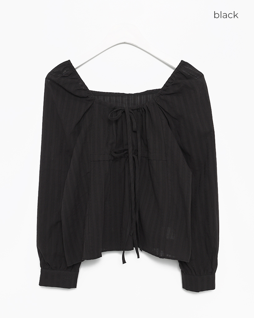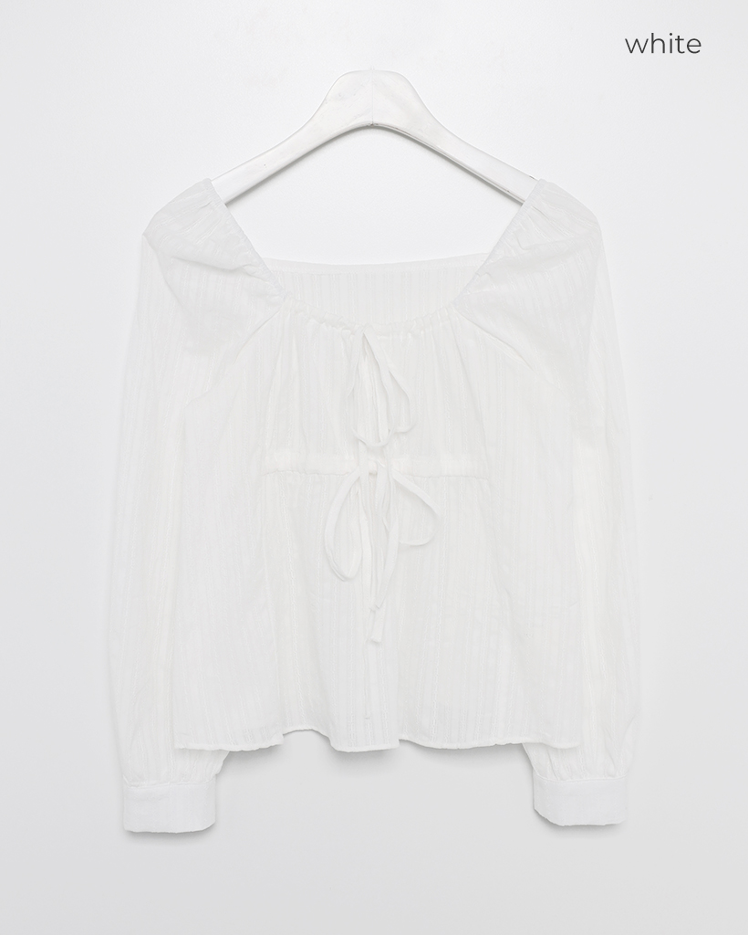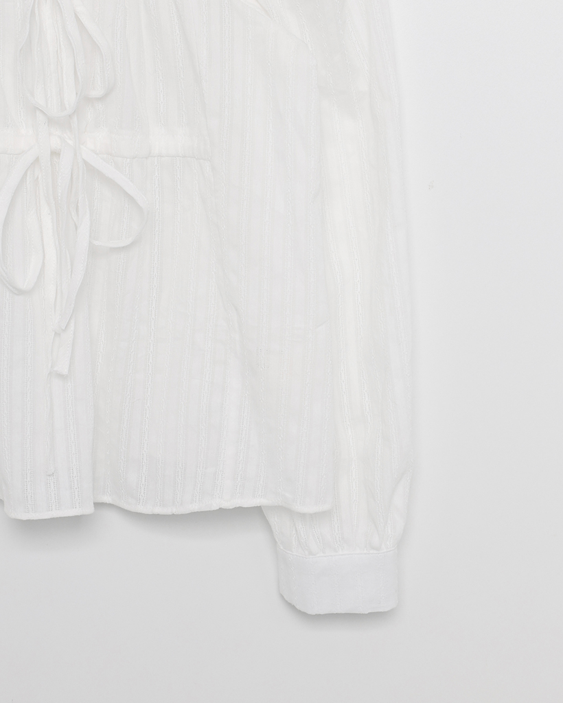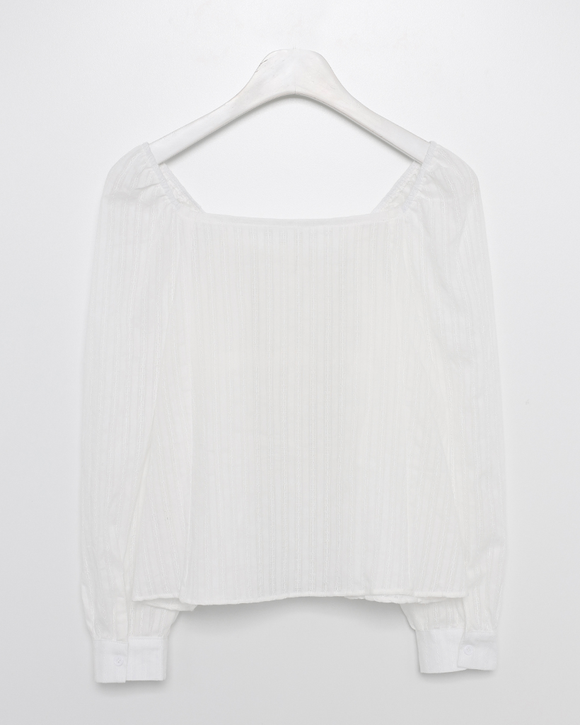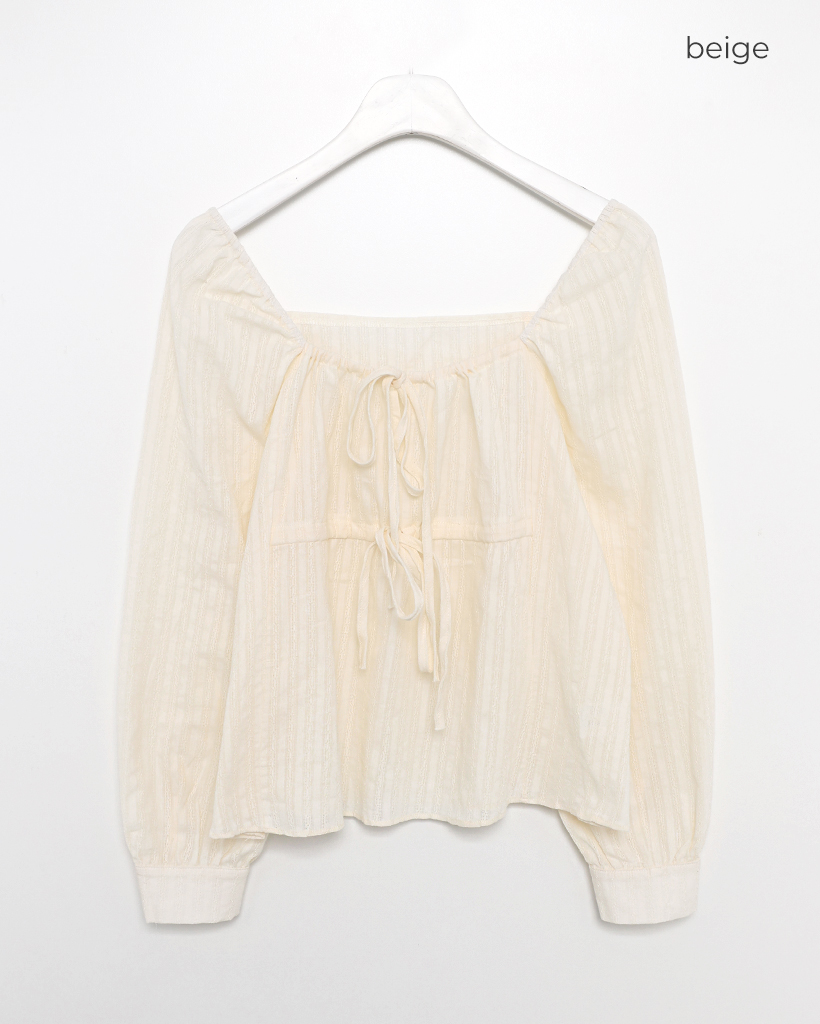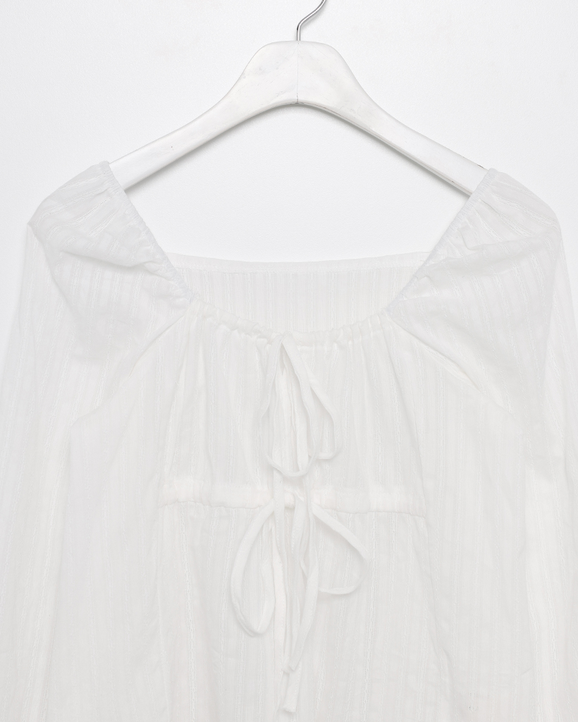スクエアドローネックドビーストライプブラウス