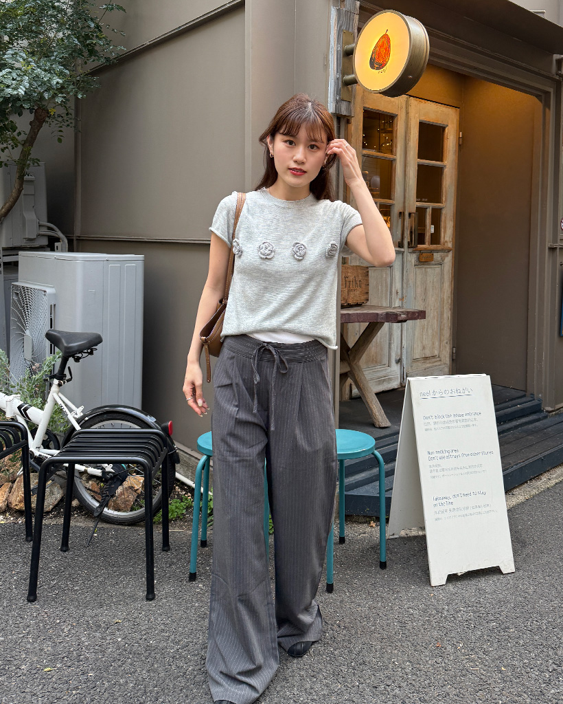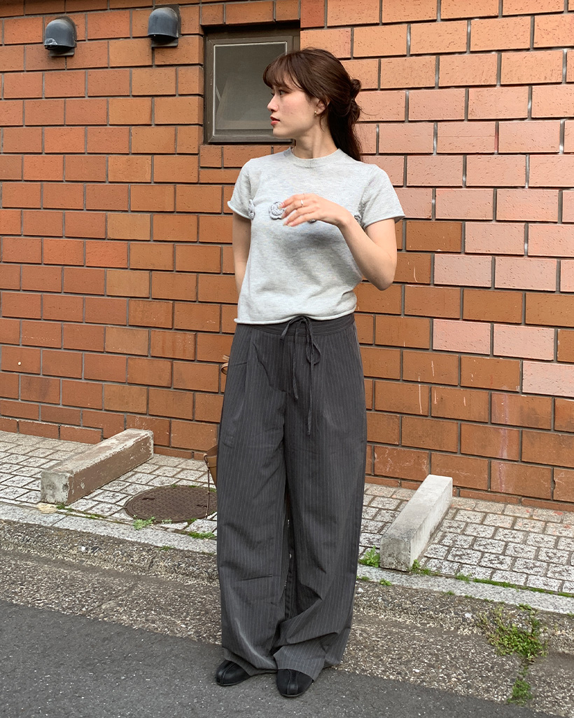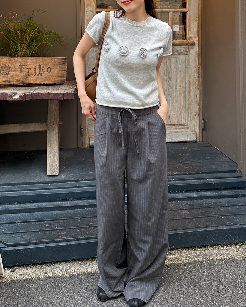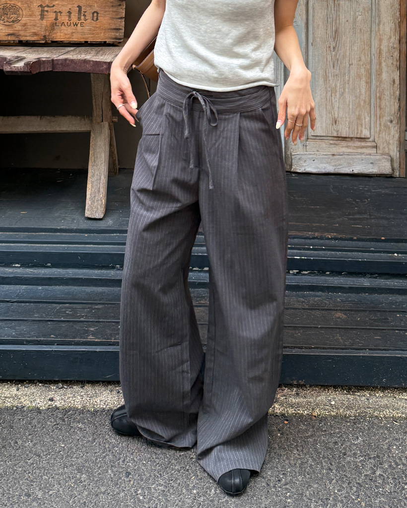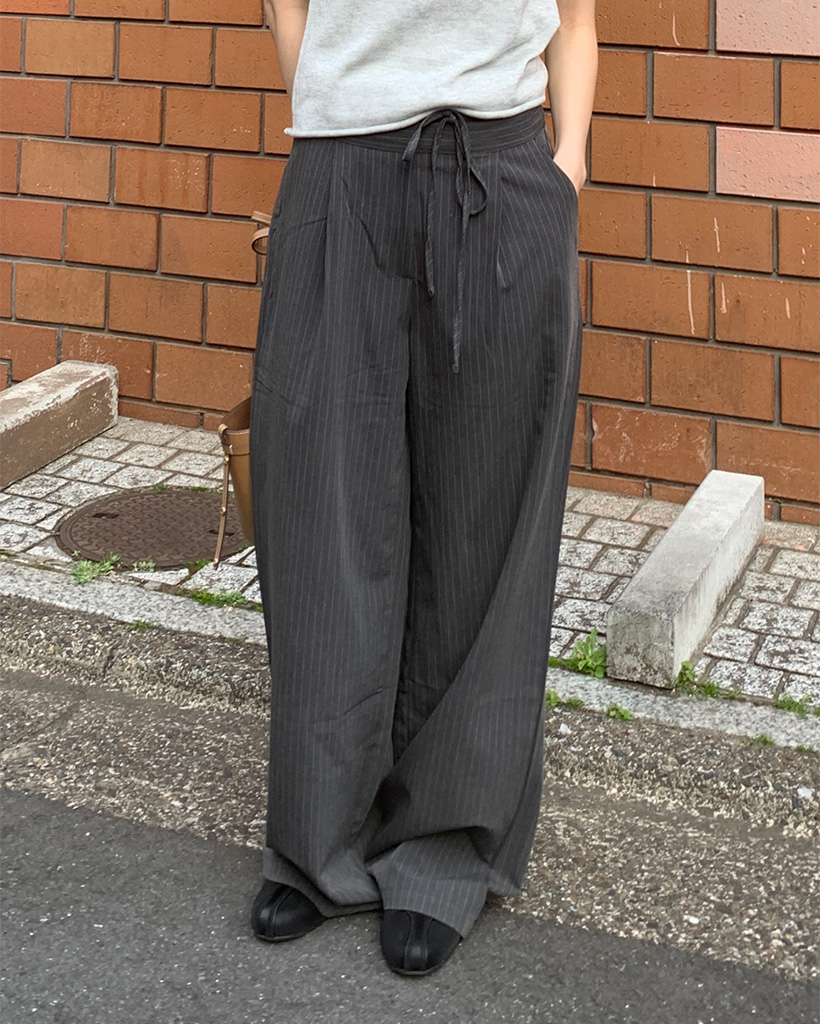 ストライプピンタックワイドパンツ