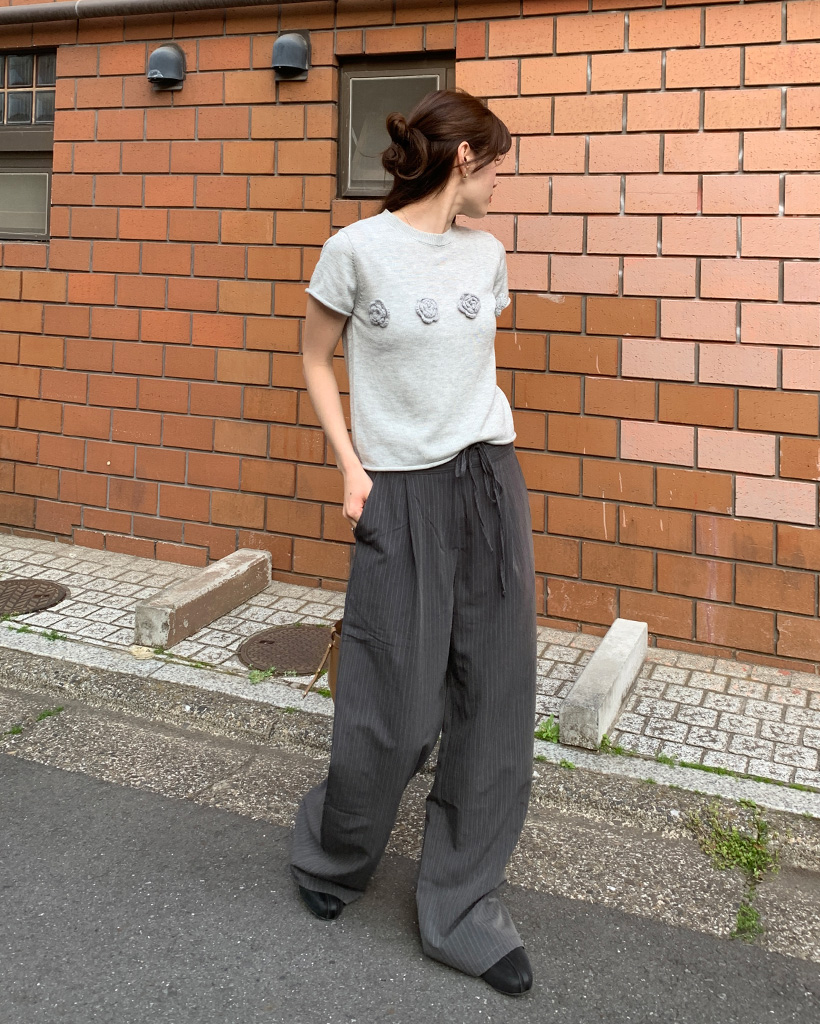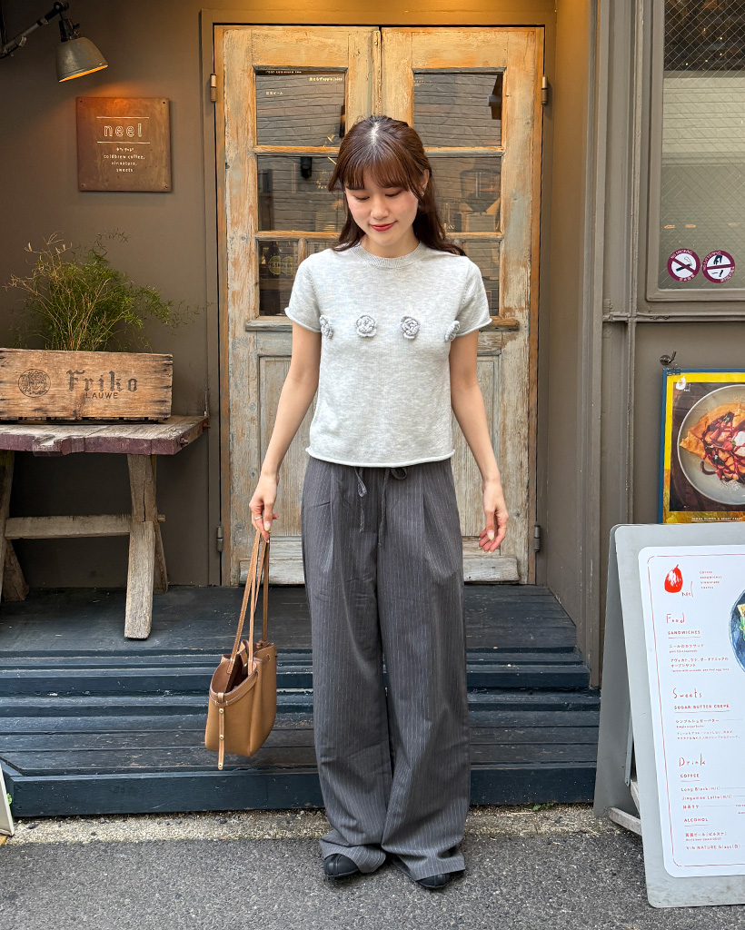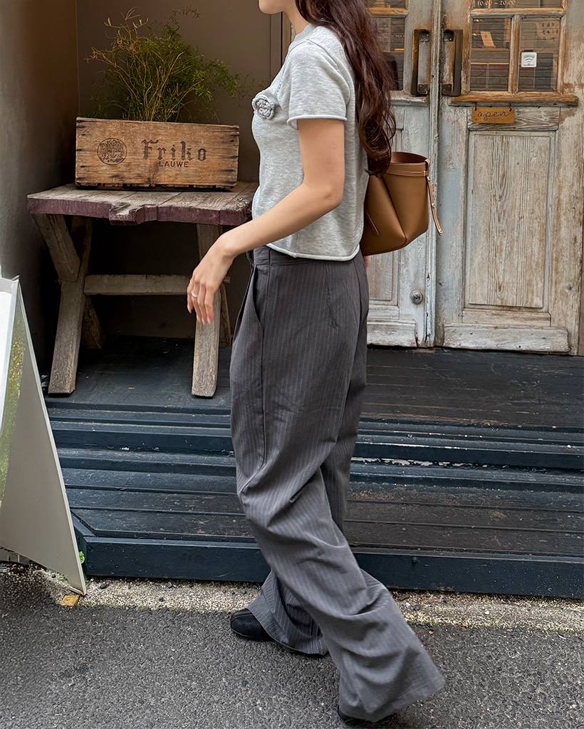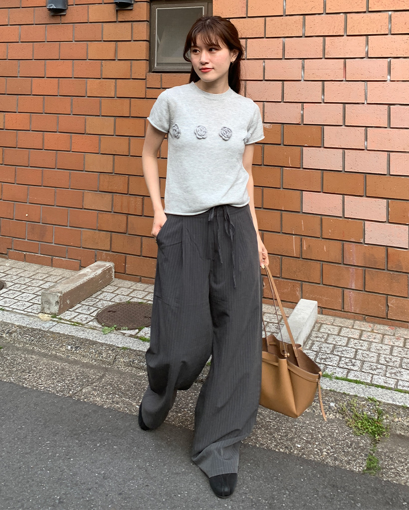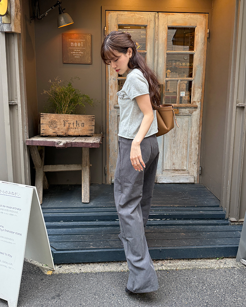 ストライプピンタックワイドパンツ