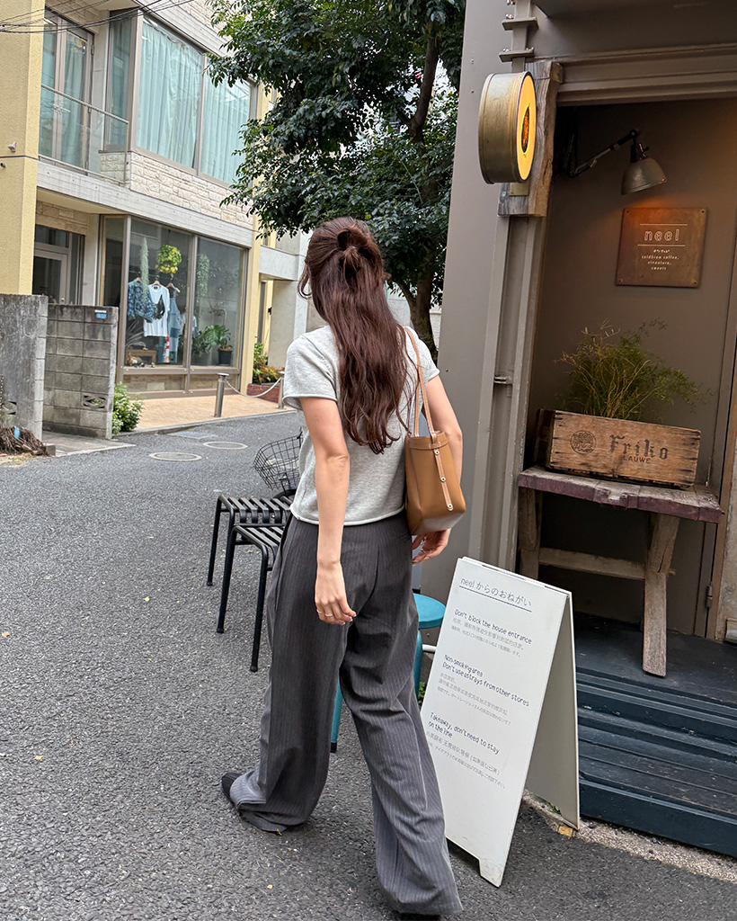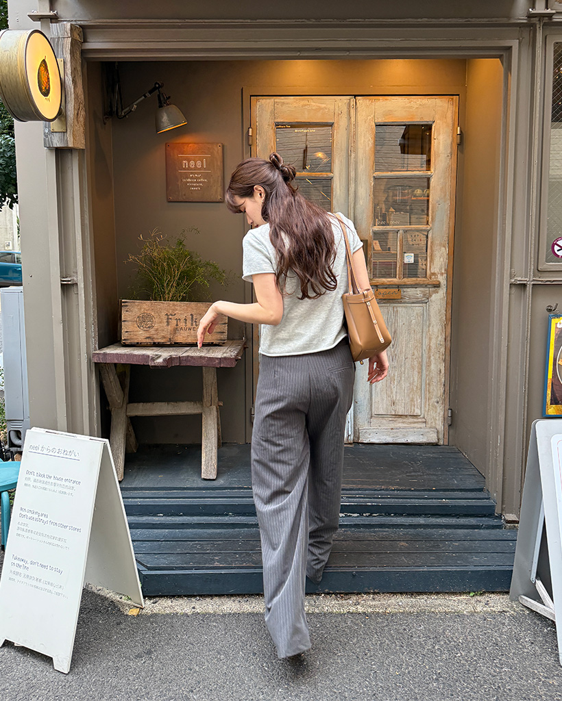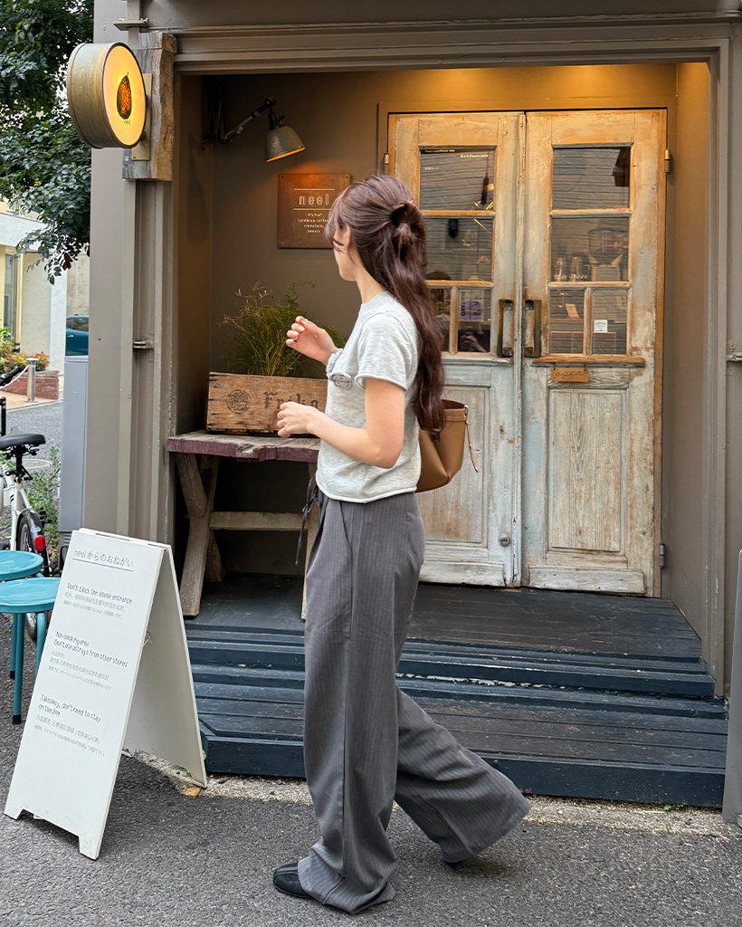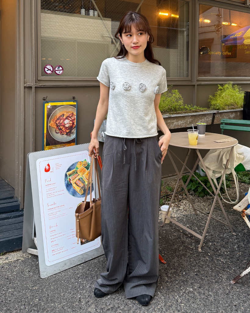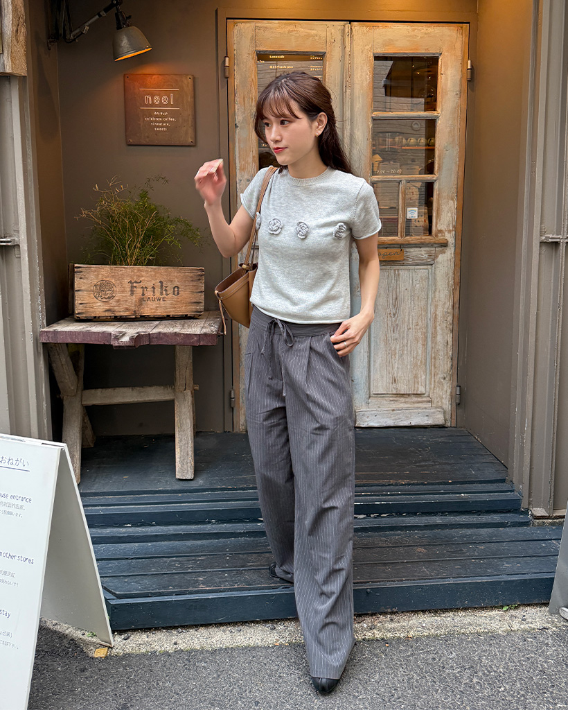 ストライプピンタックワイドパンツ