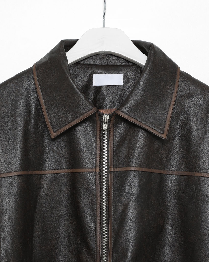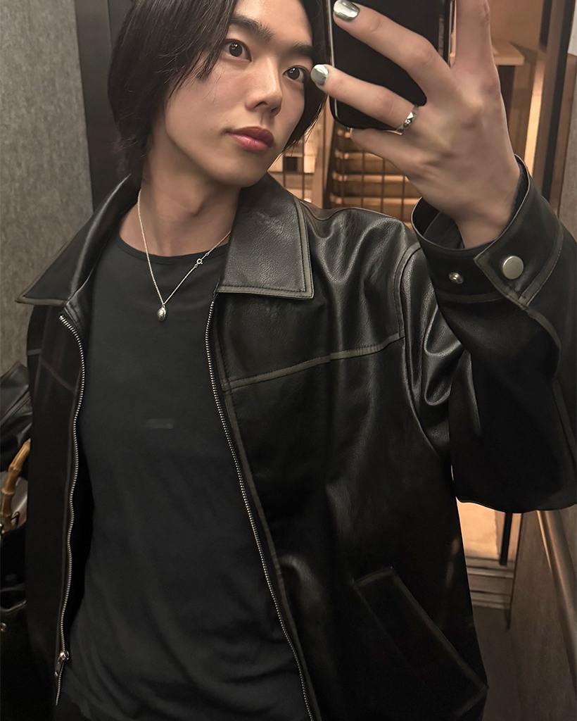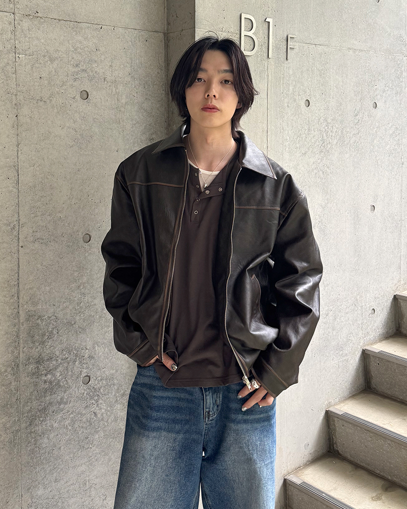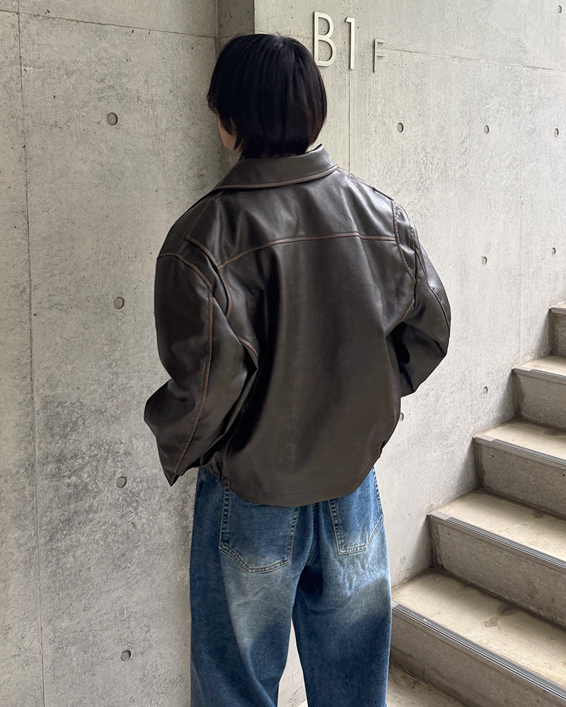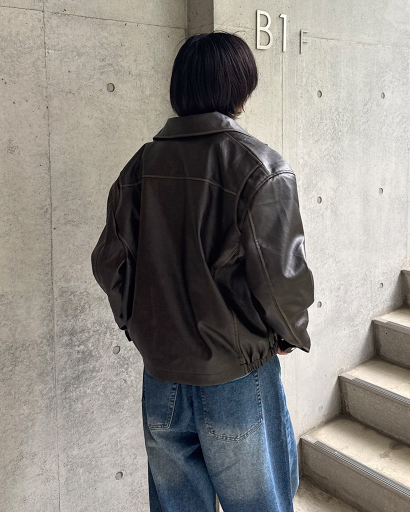 オーバーフィットスリットポイントコラールレザージャケット
