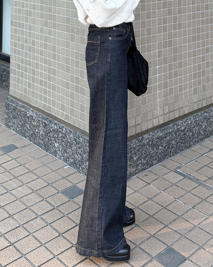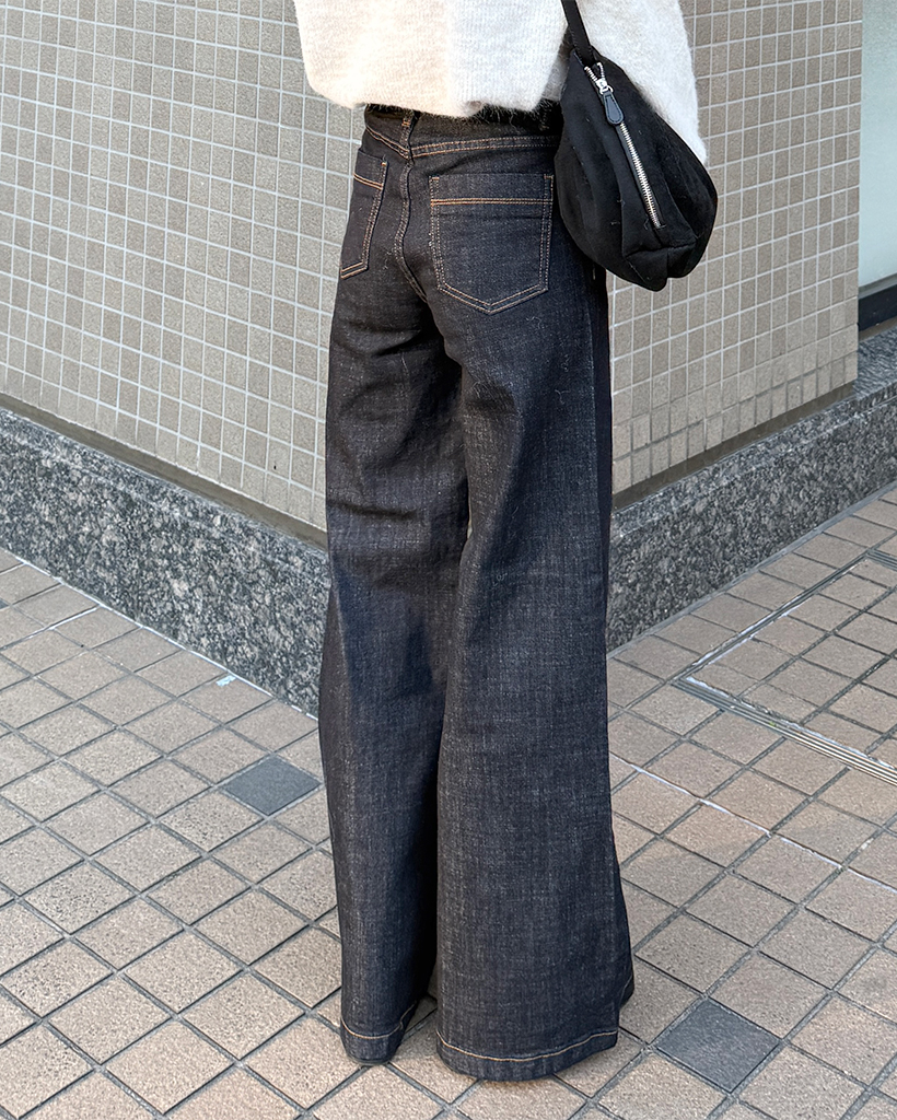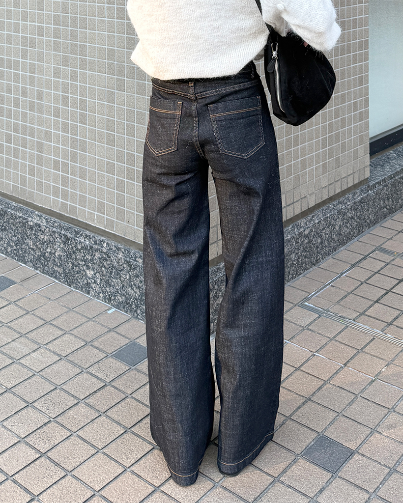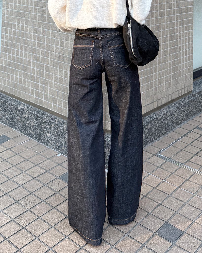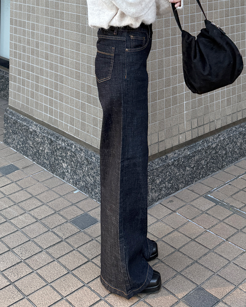 セミワイド生地デニムパンツ