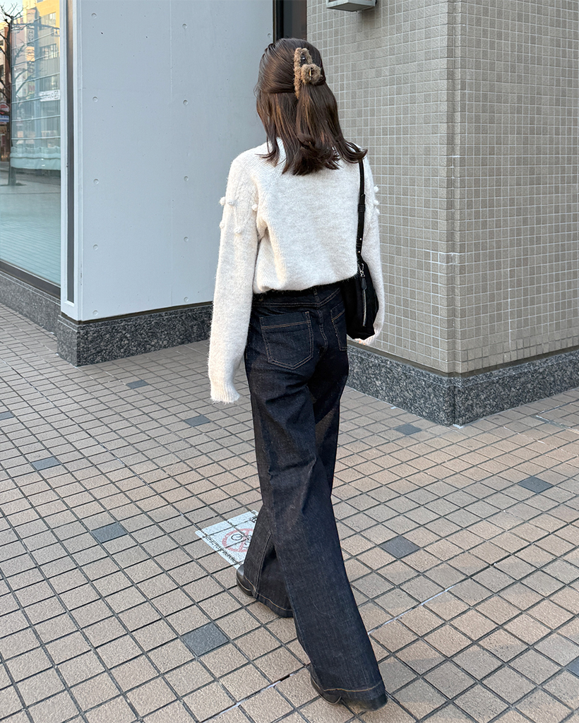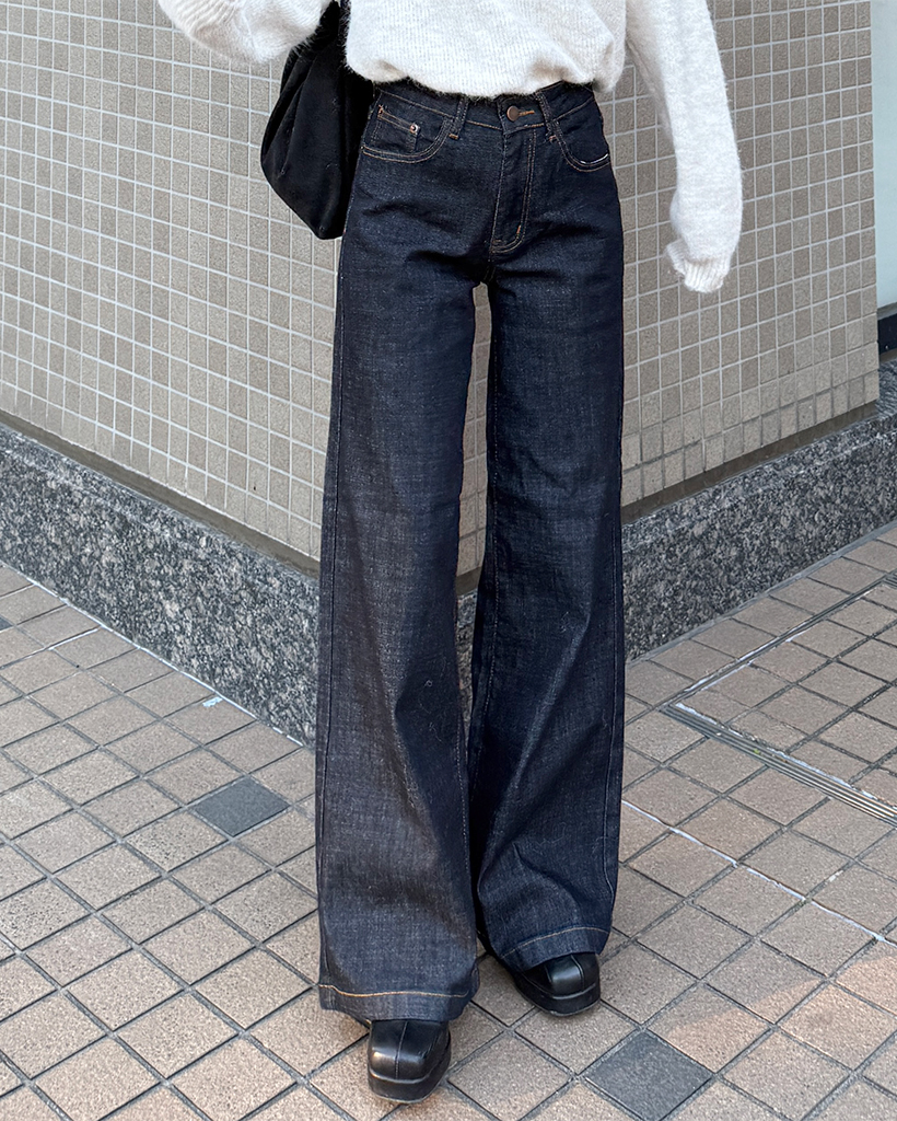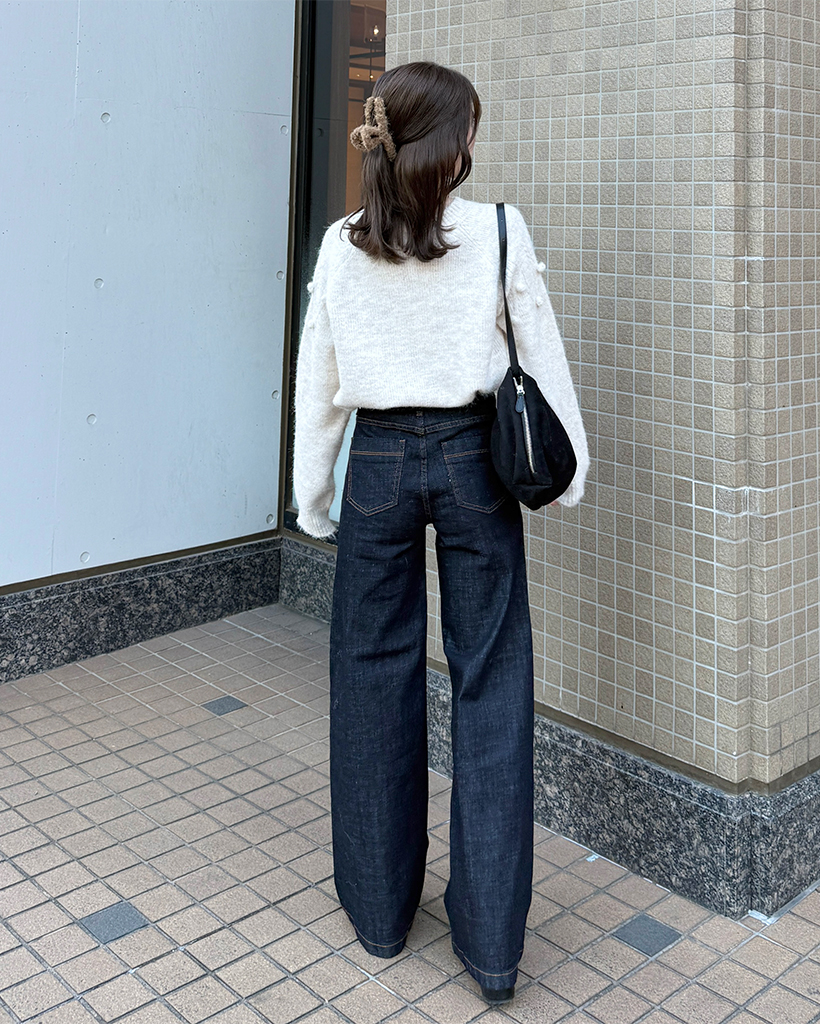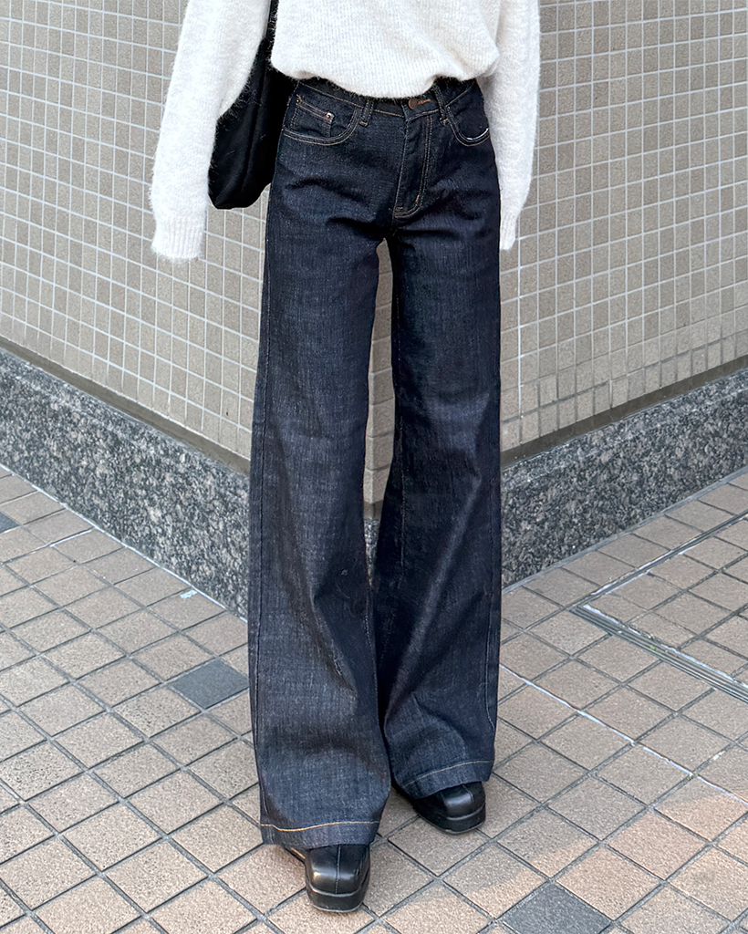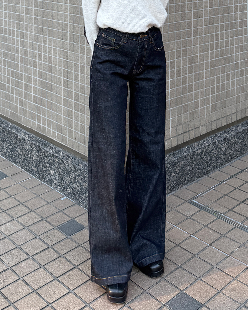 セミワイド生地デニムパンツ