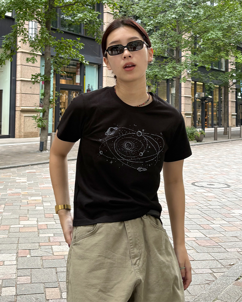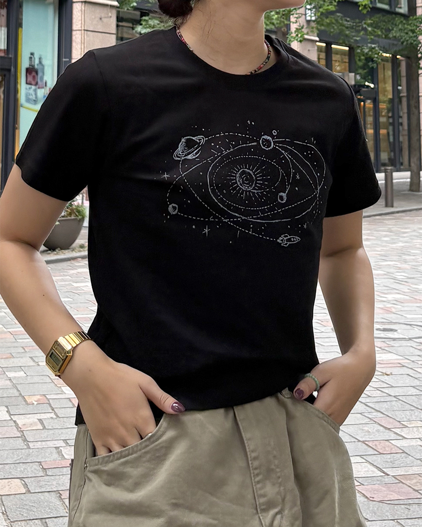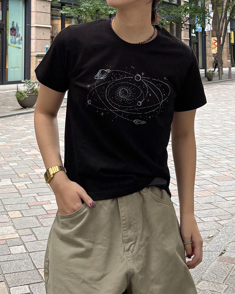 宇宙ドローイング半袖Tシャツ