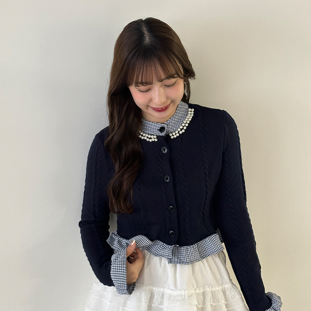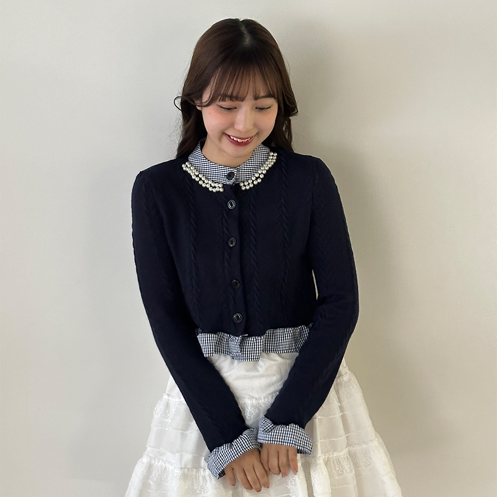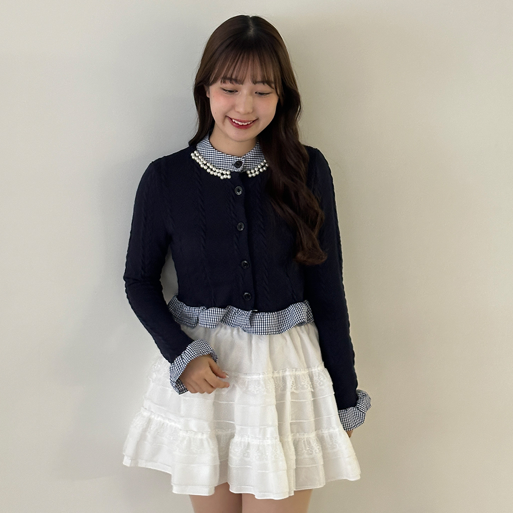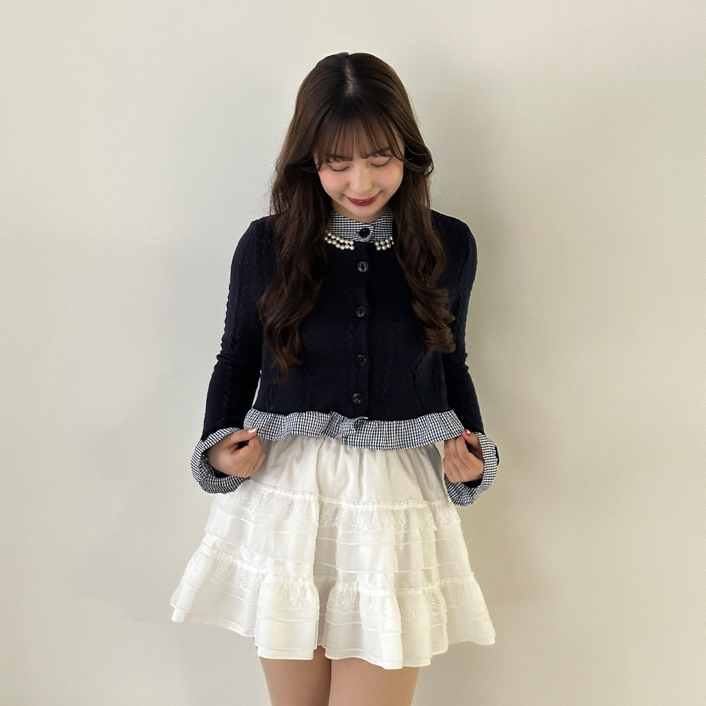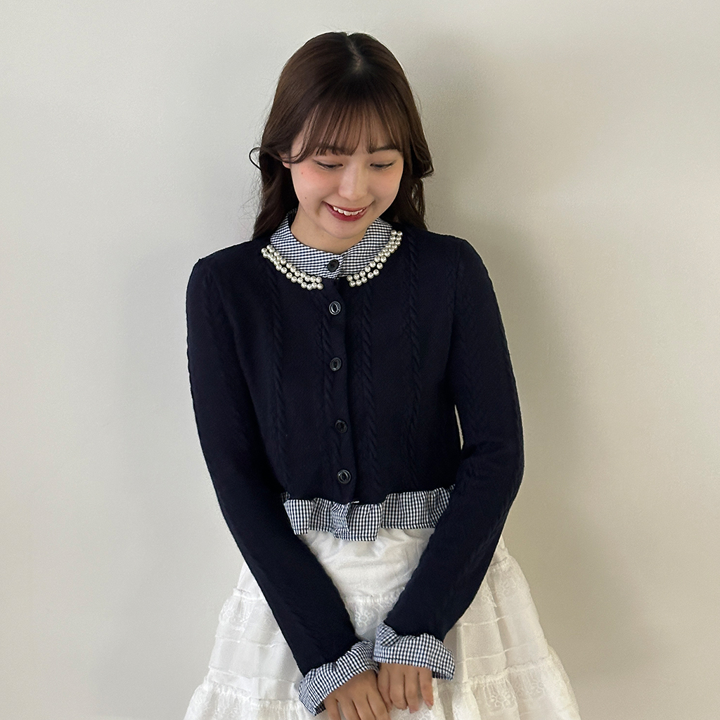 パールフリルブラウスレイヤードニット