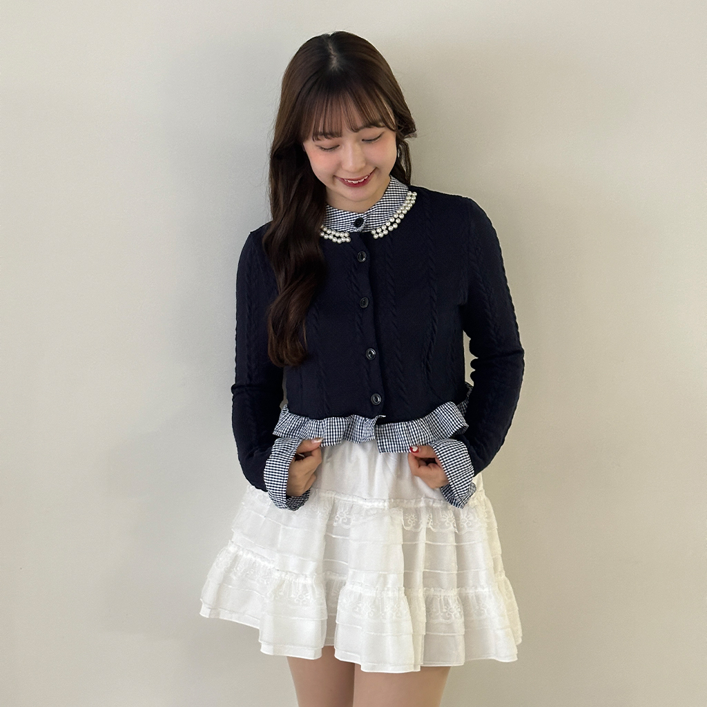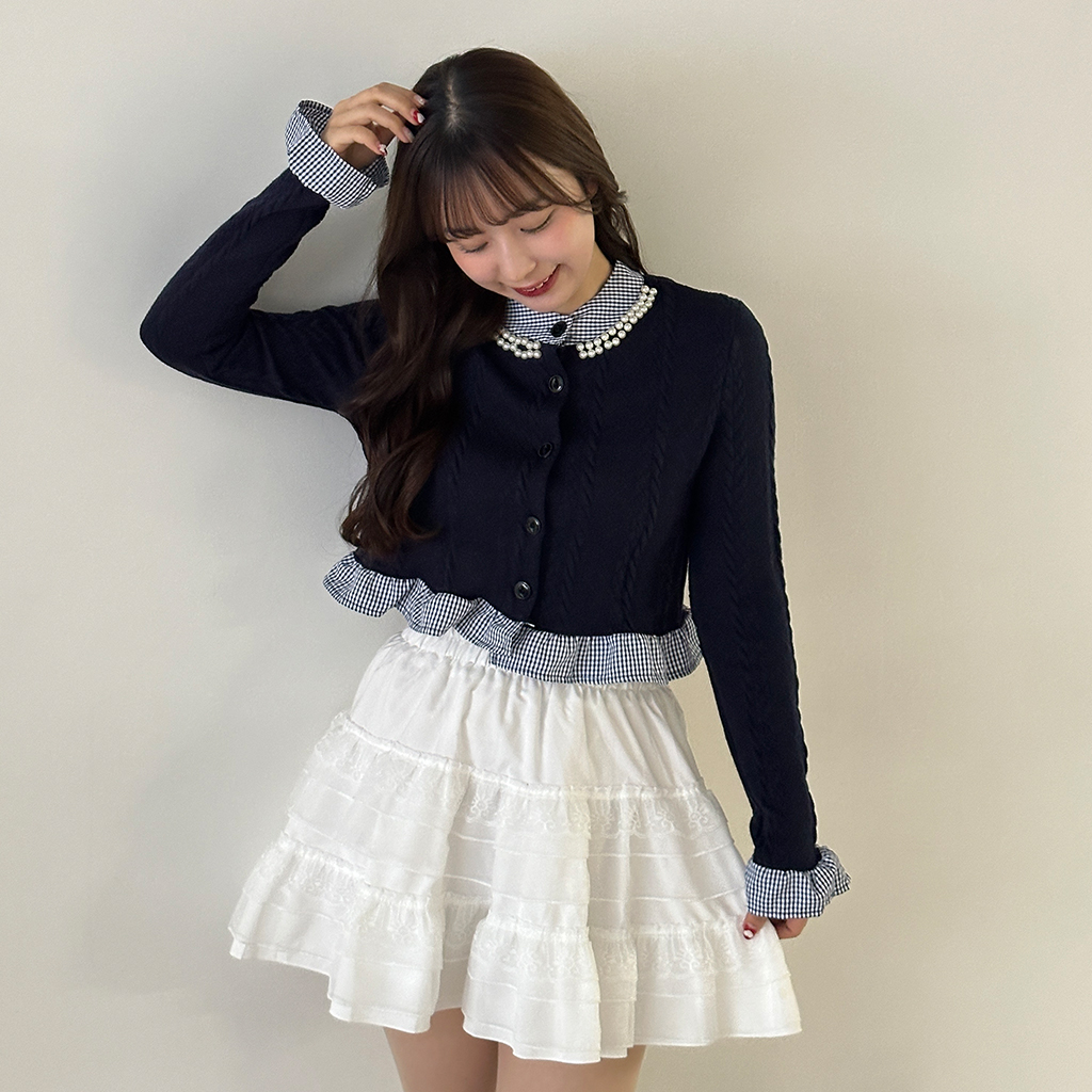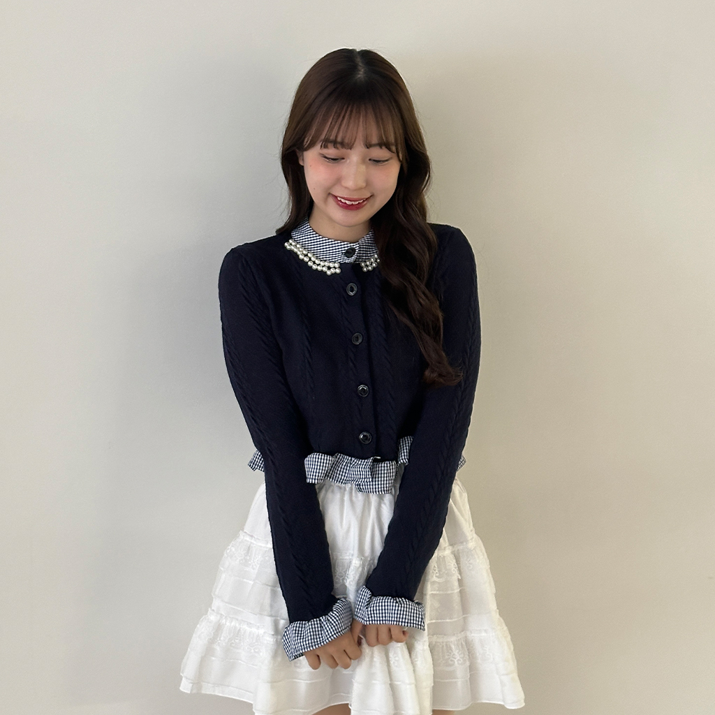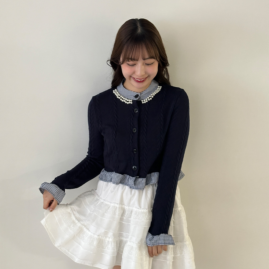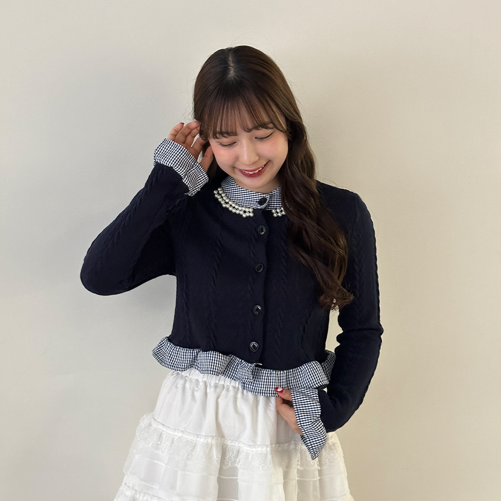 パールフリルブラウスレイヤードニット