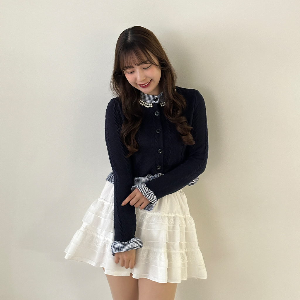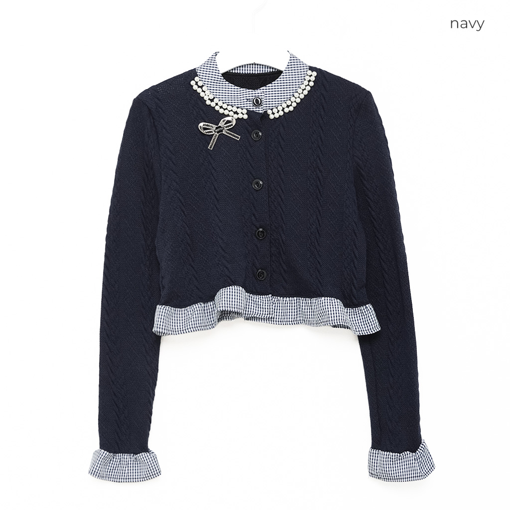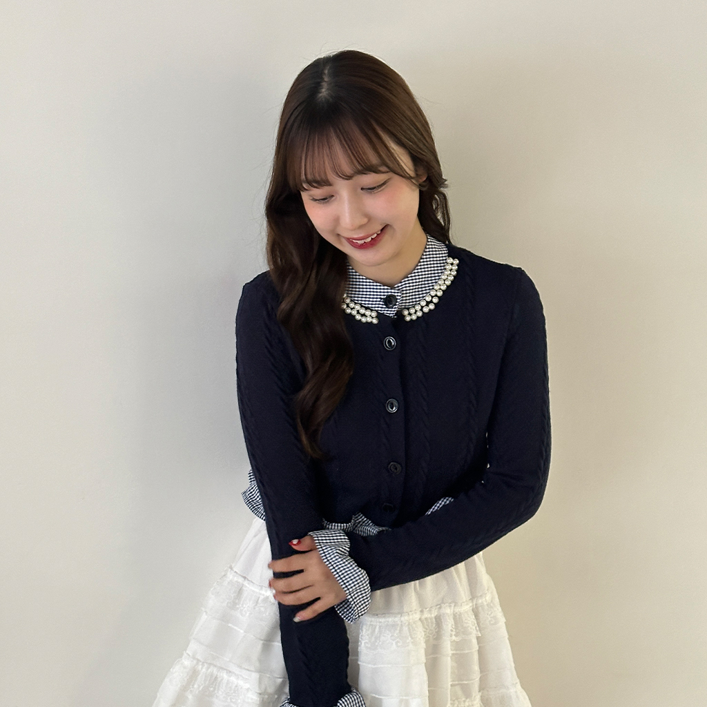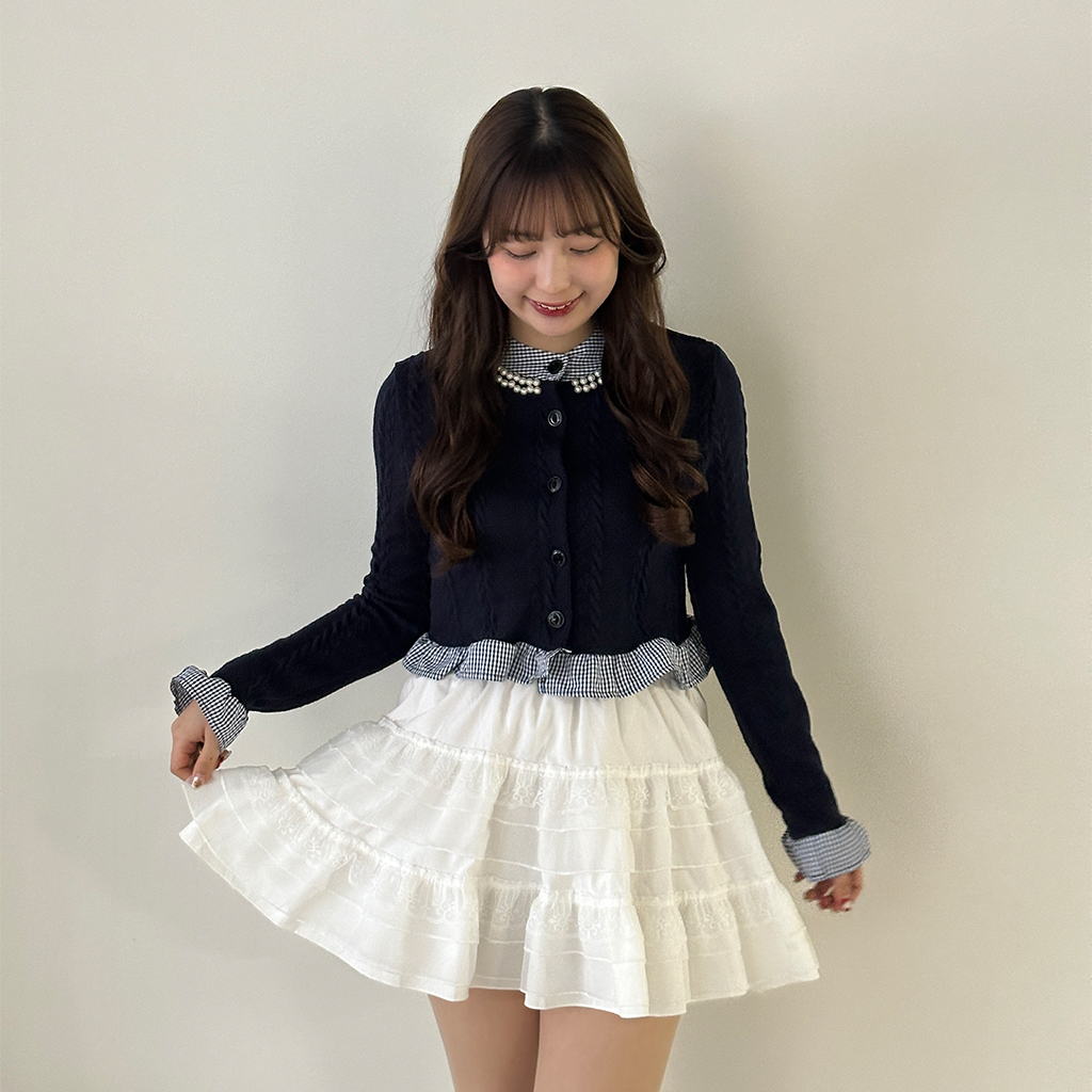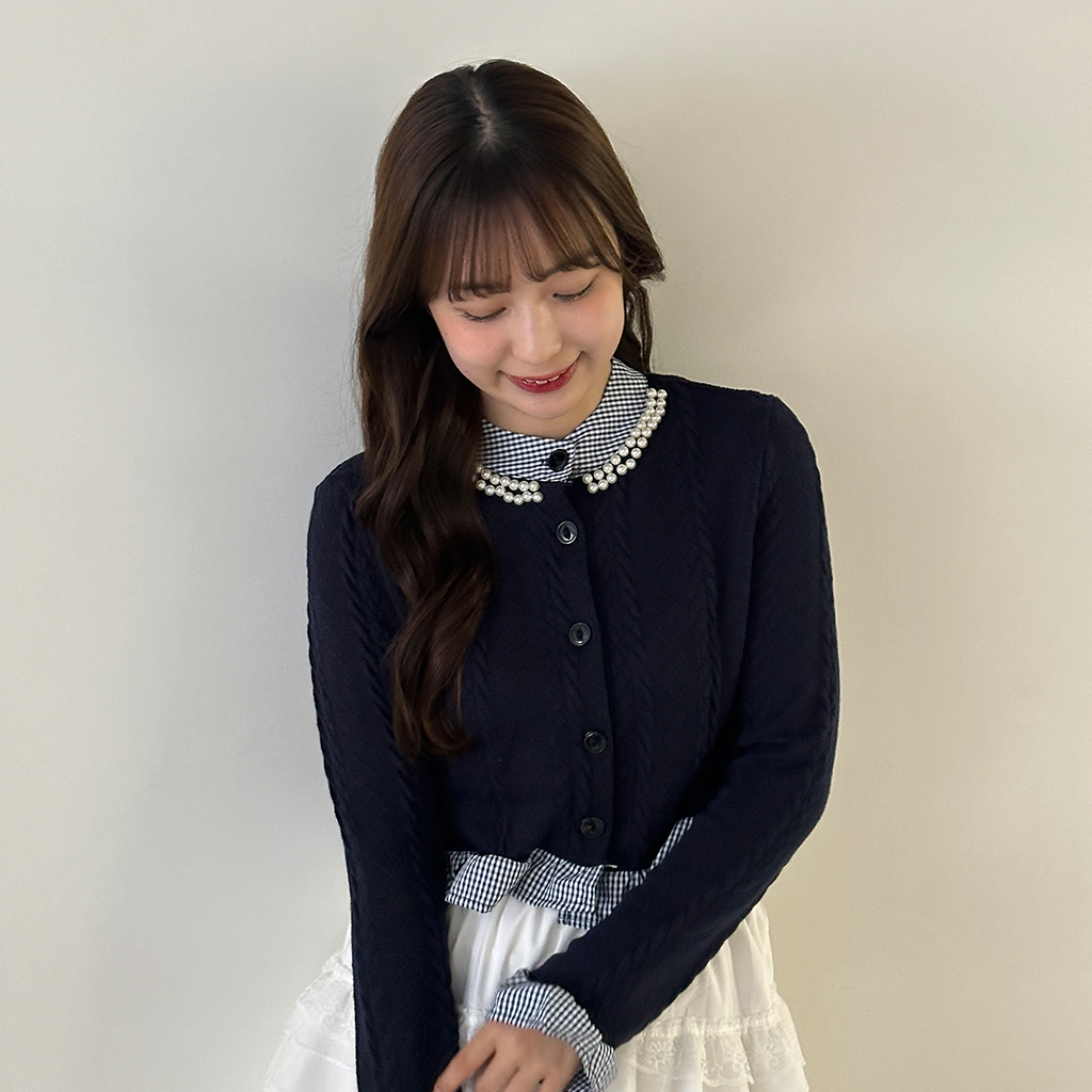 パールフリルブラウスレイヤードニット