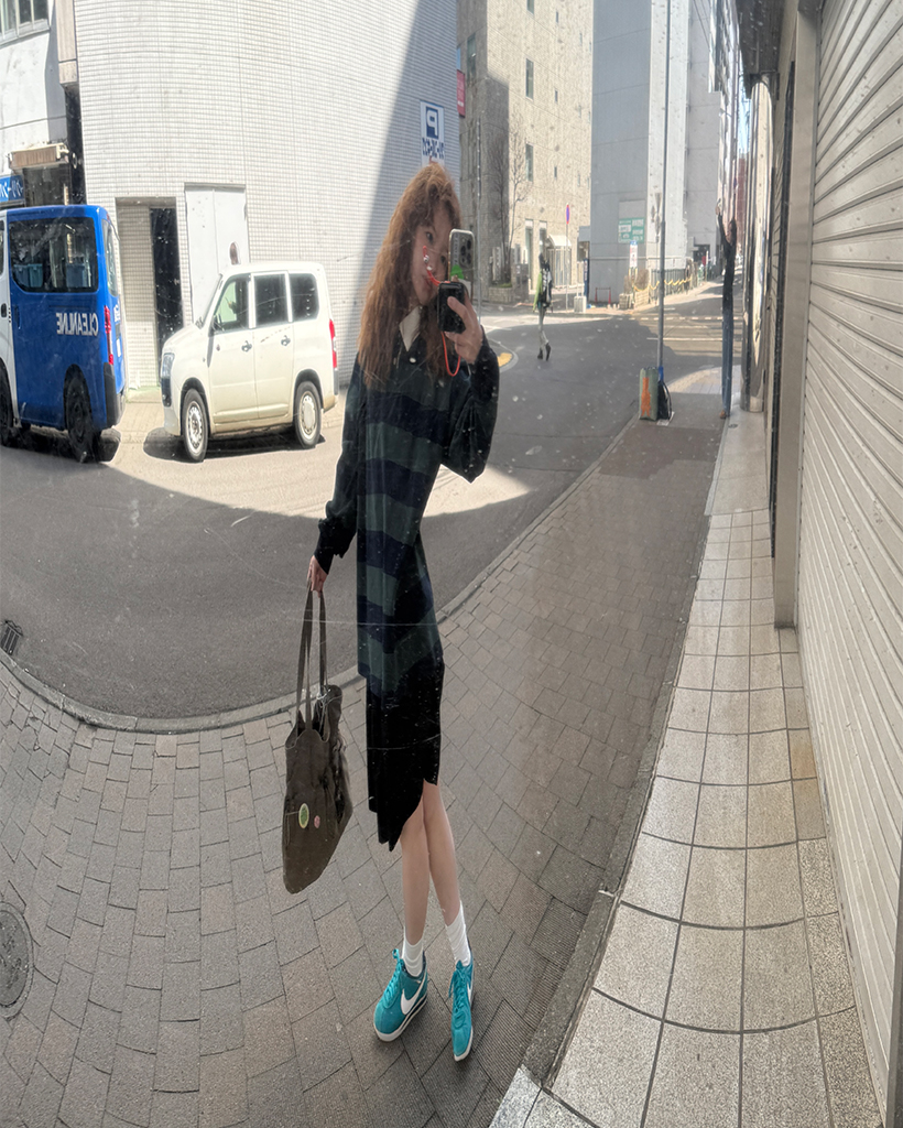 ウエストボタンシャーリングボタンミディスカート