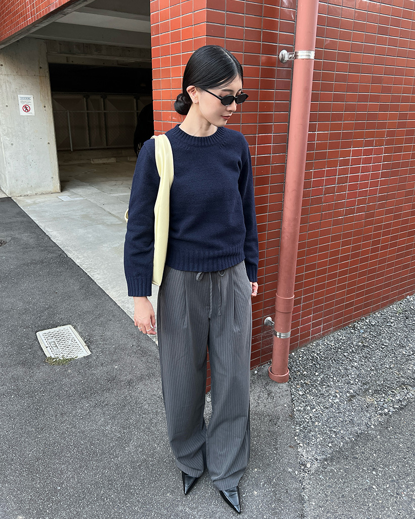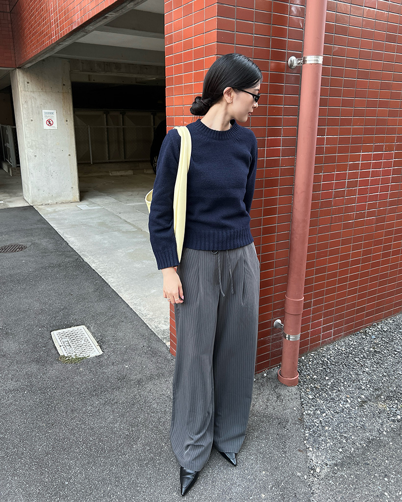 シンプルラウンドロングニット