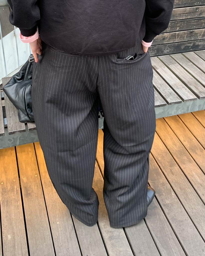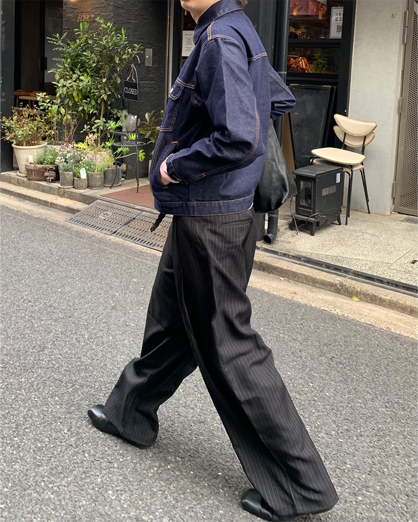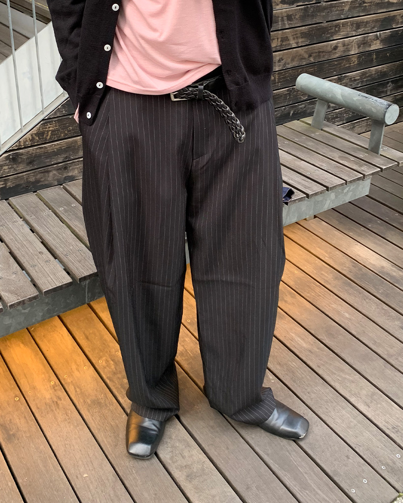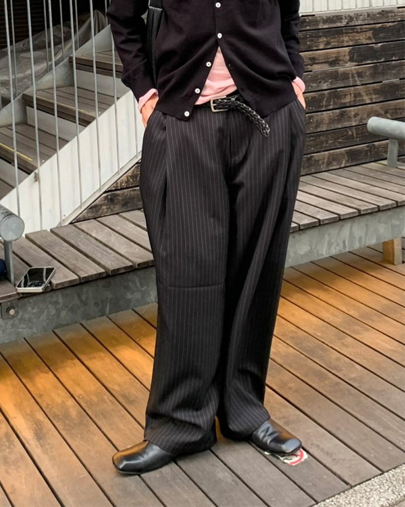 ストライプキーリングタック入りバンディングスラックス