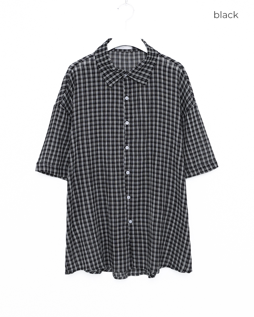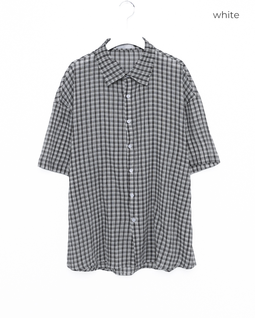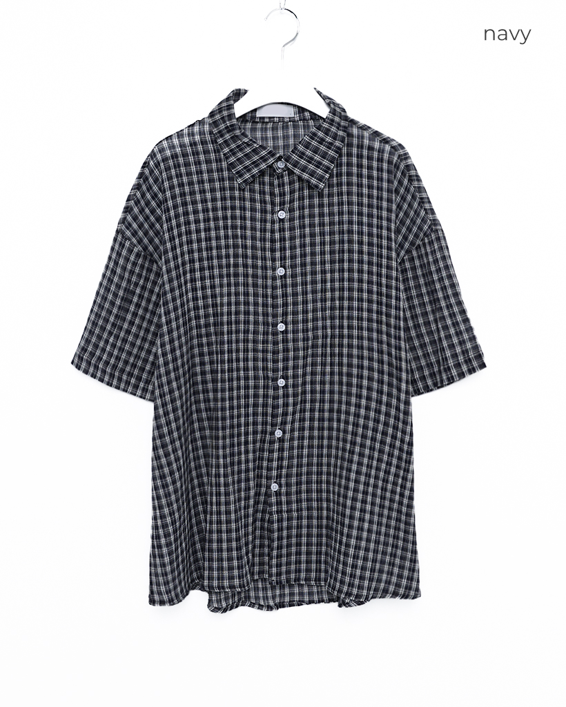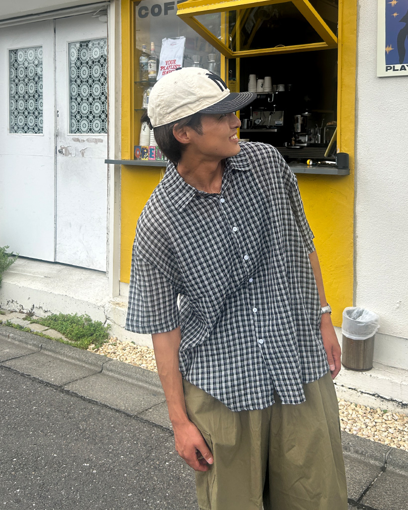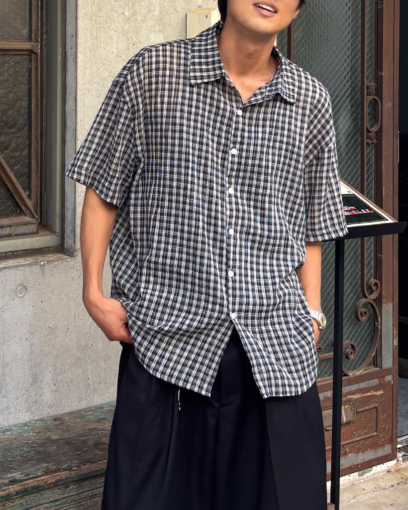 (ユニセックス)チェックハーフスリーブシャツ