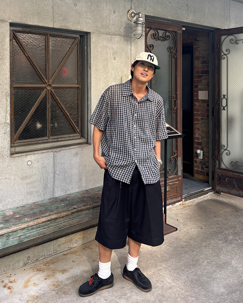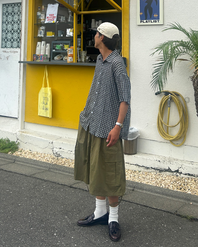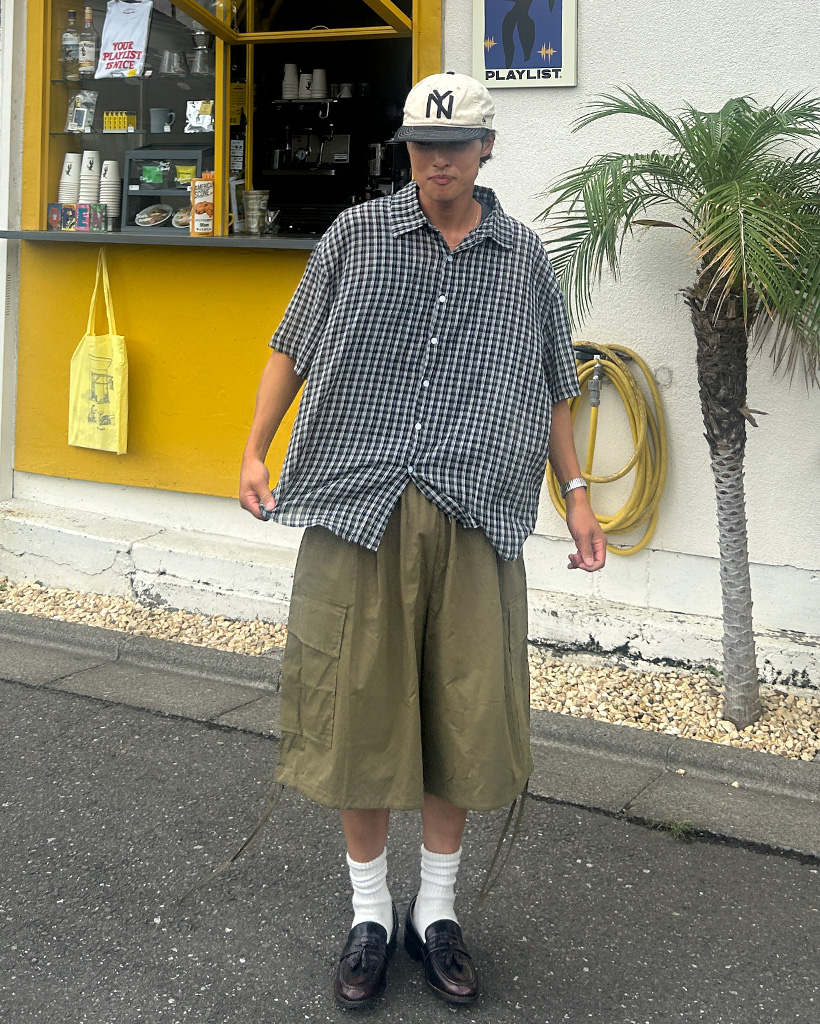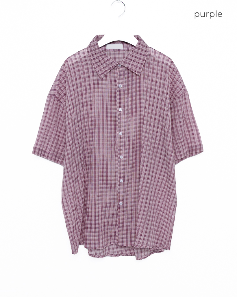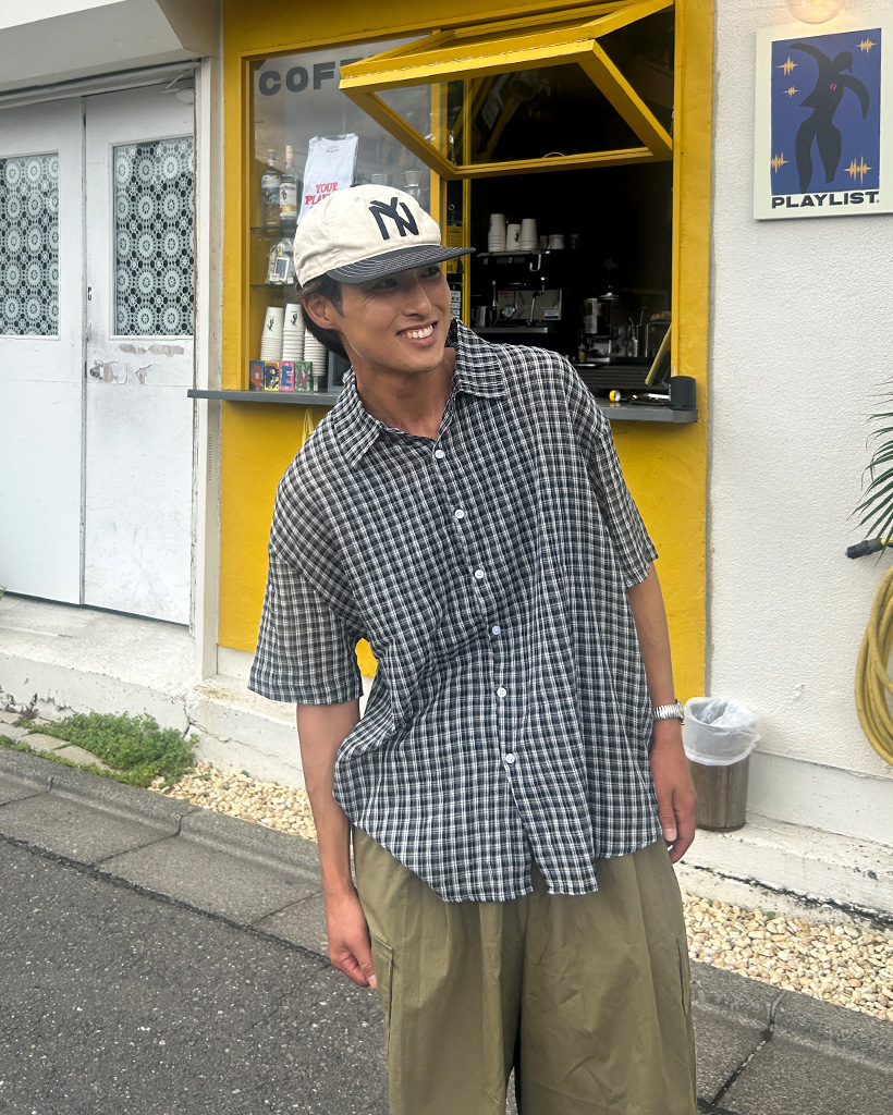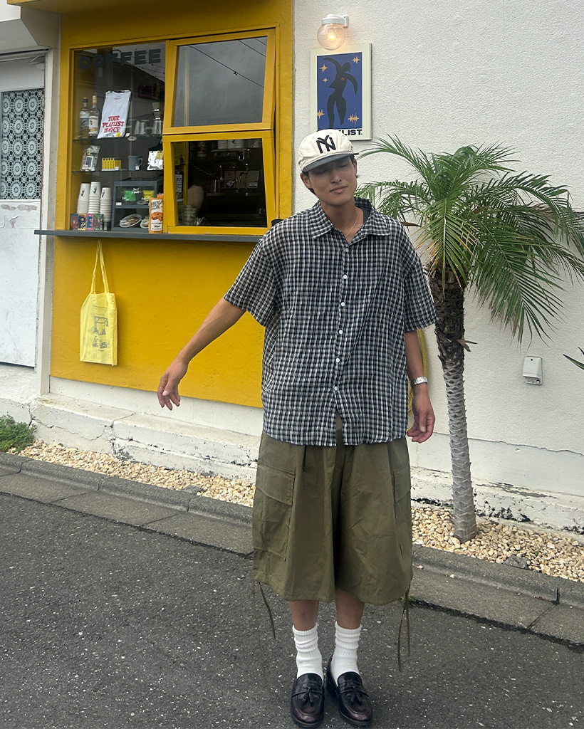 (ユニセックス)チェックハーフスリーブシャツ