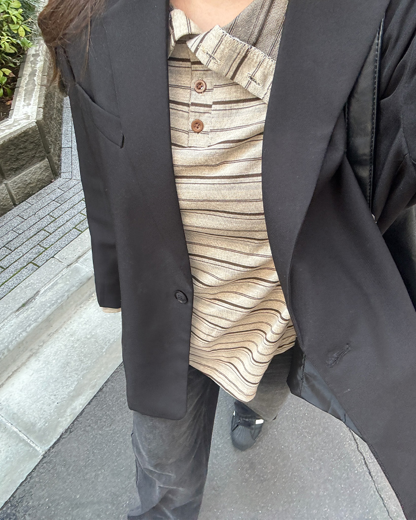 #マユ#157cm#ウェーブ#モノトーン#ユニセックス#カジュアル