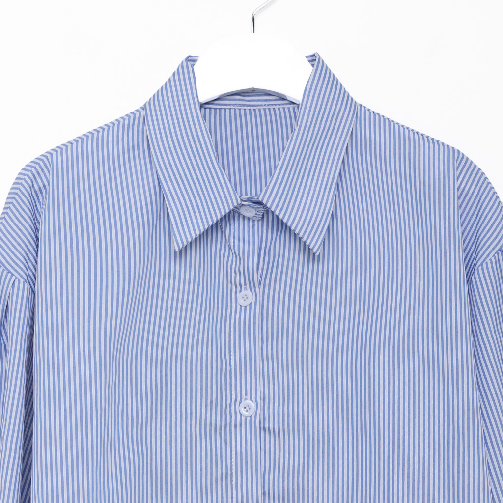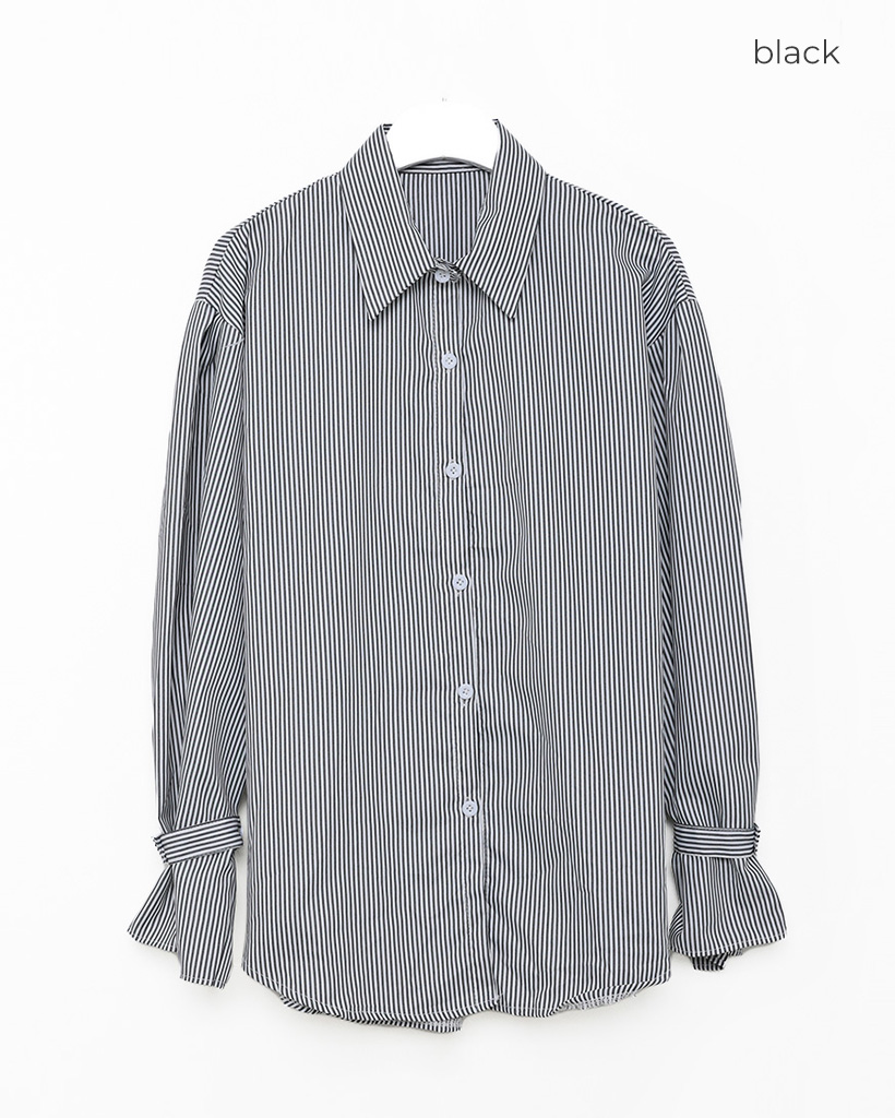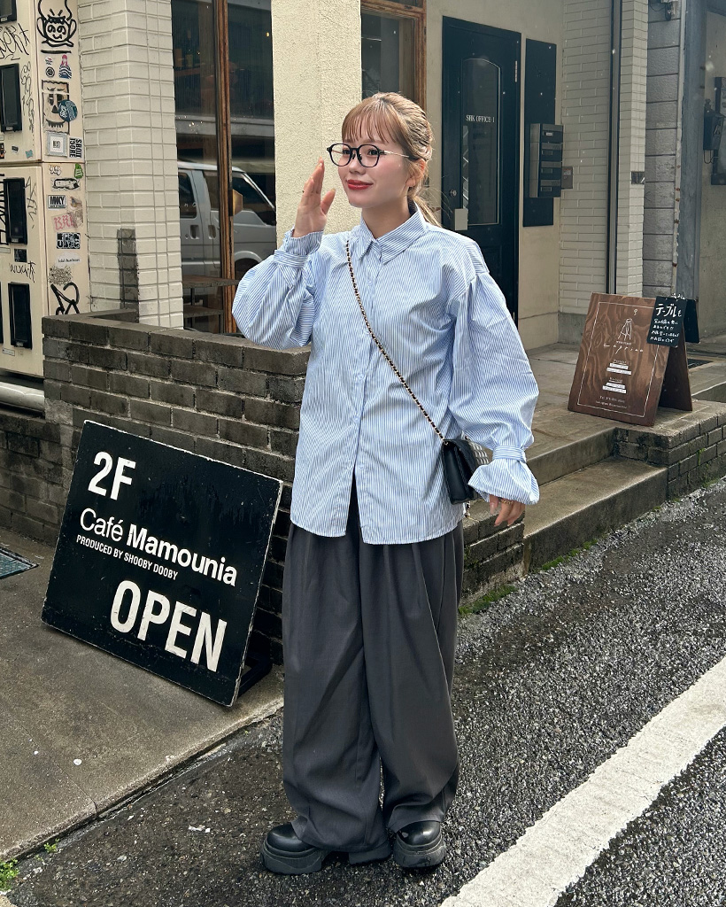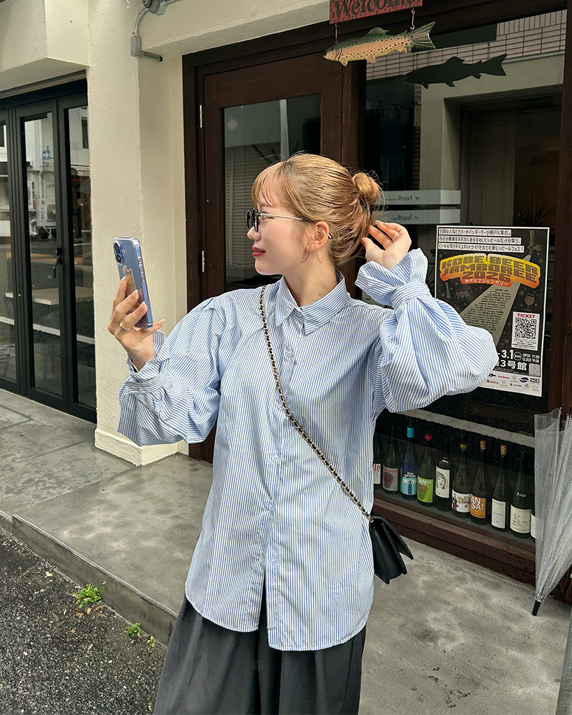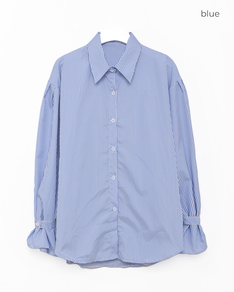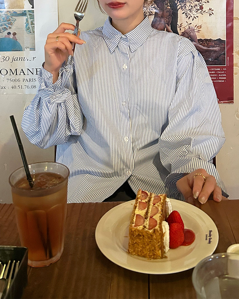 パフスリーブストライプブラウス