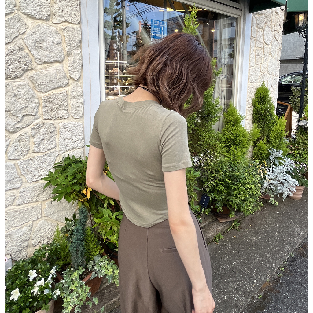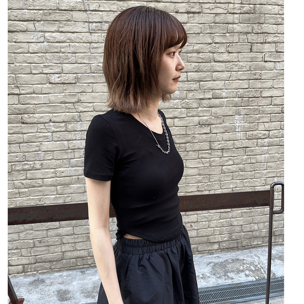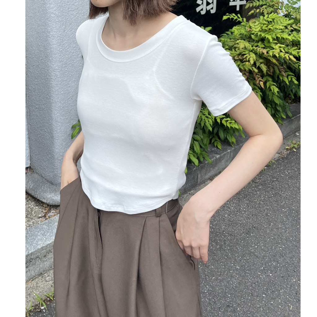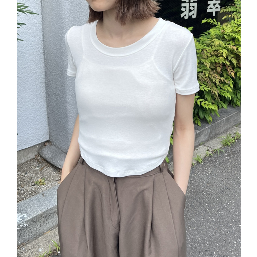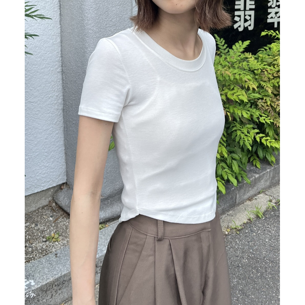 ラウンドノーカットクロップドTシャツ
