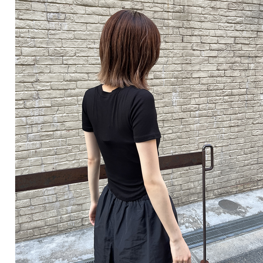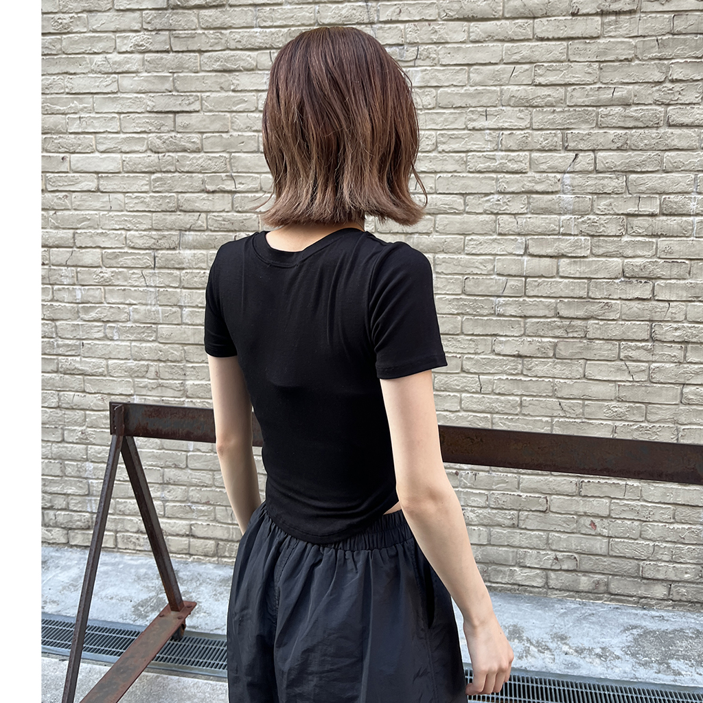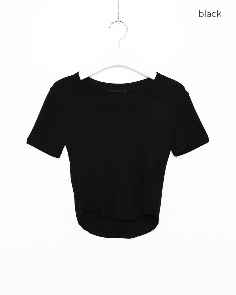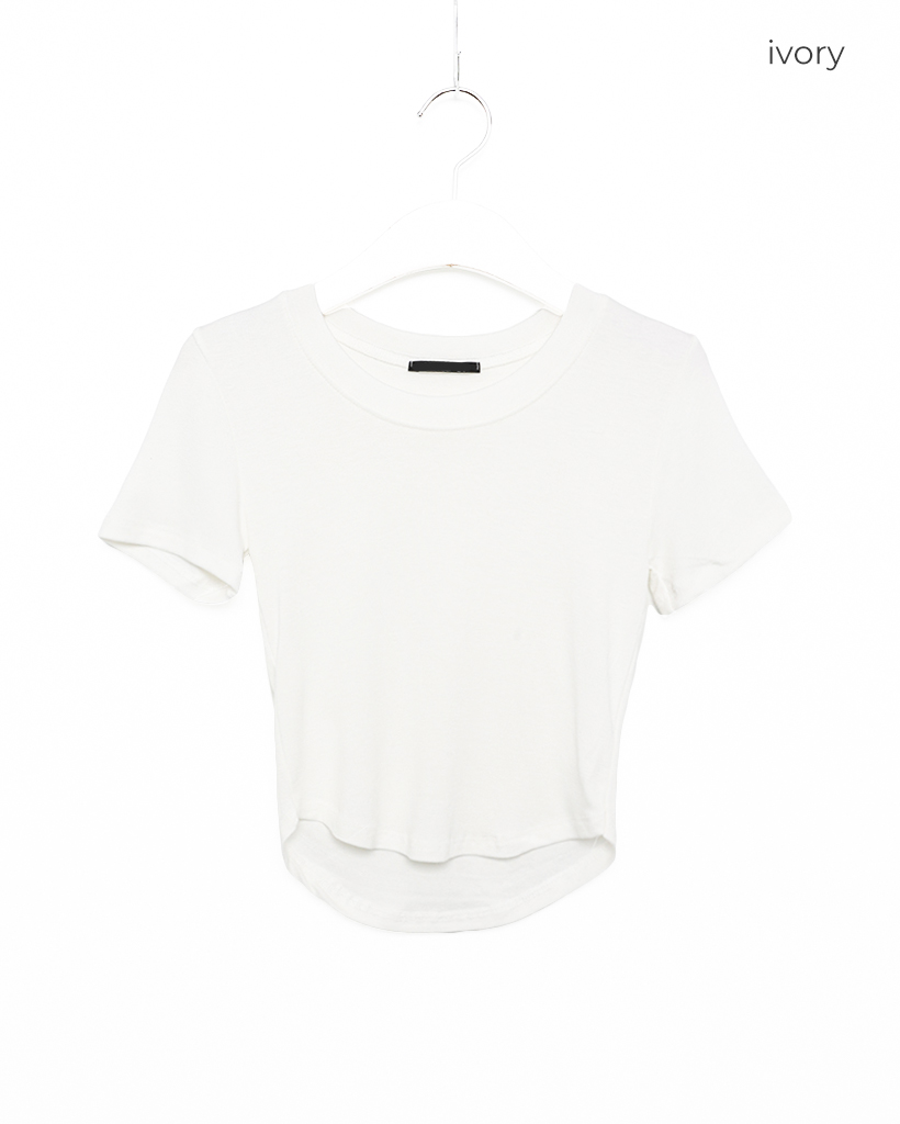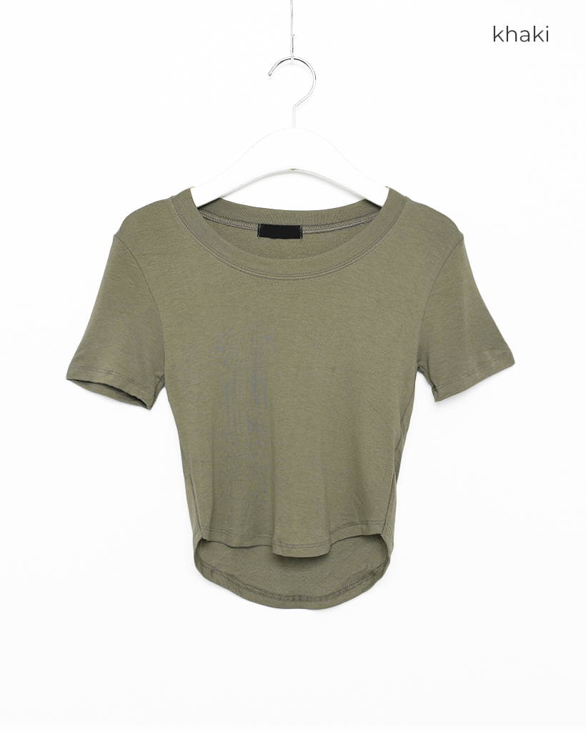 ラウンドノーカットクロップドTシャツ