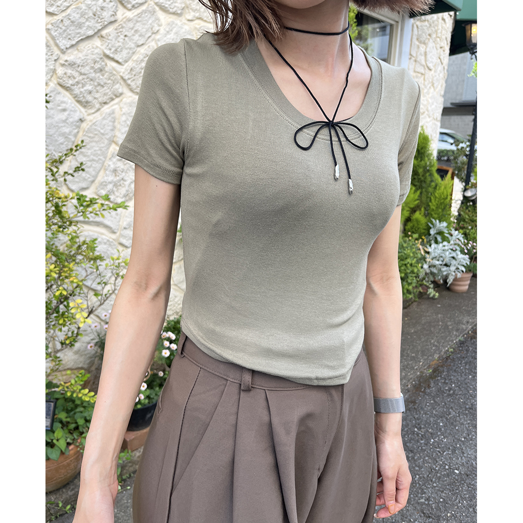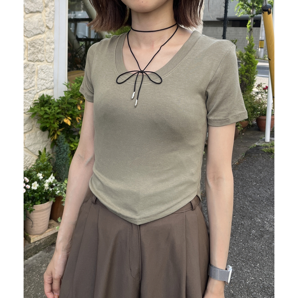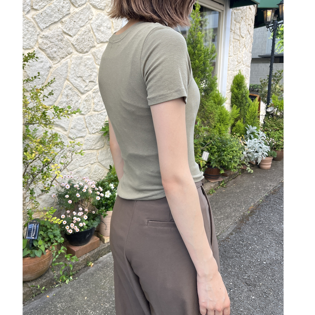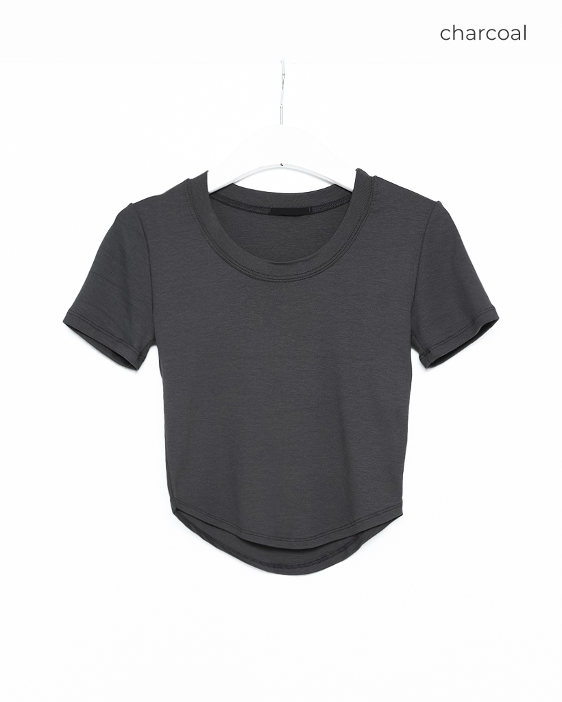 ラウンドノーカットクロップドTシャツ