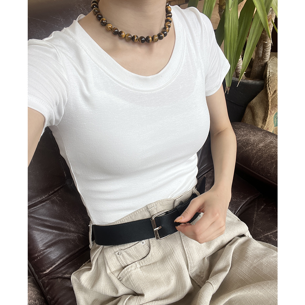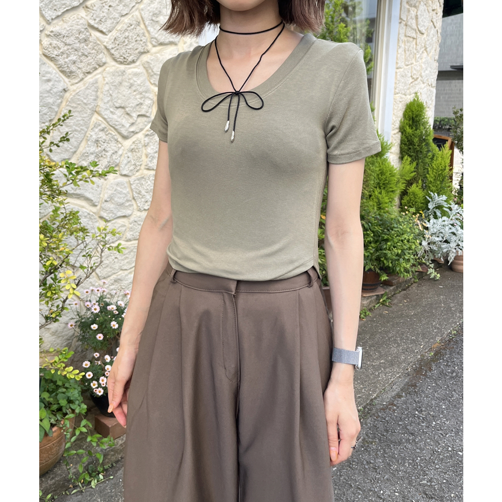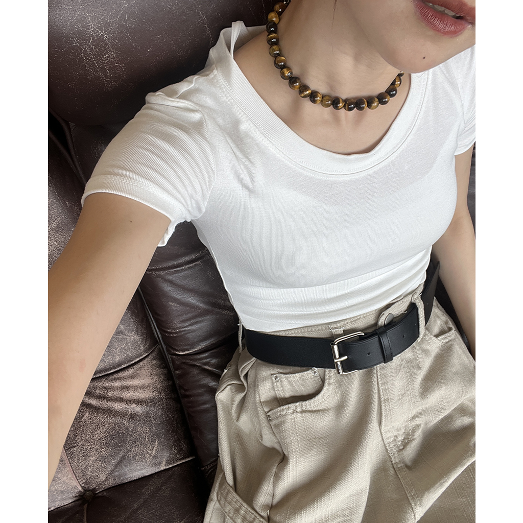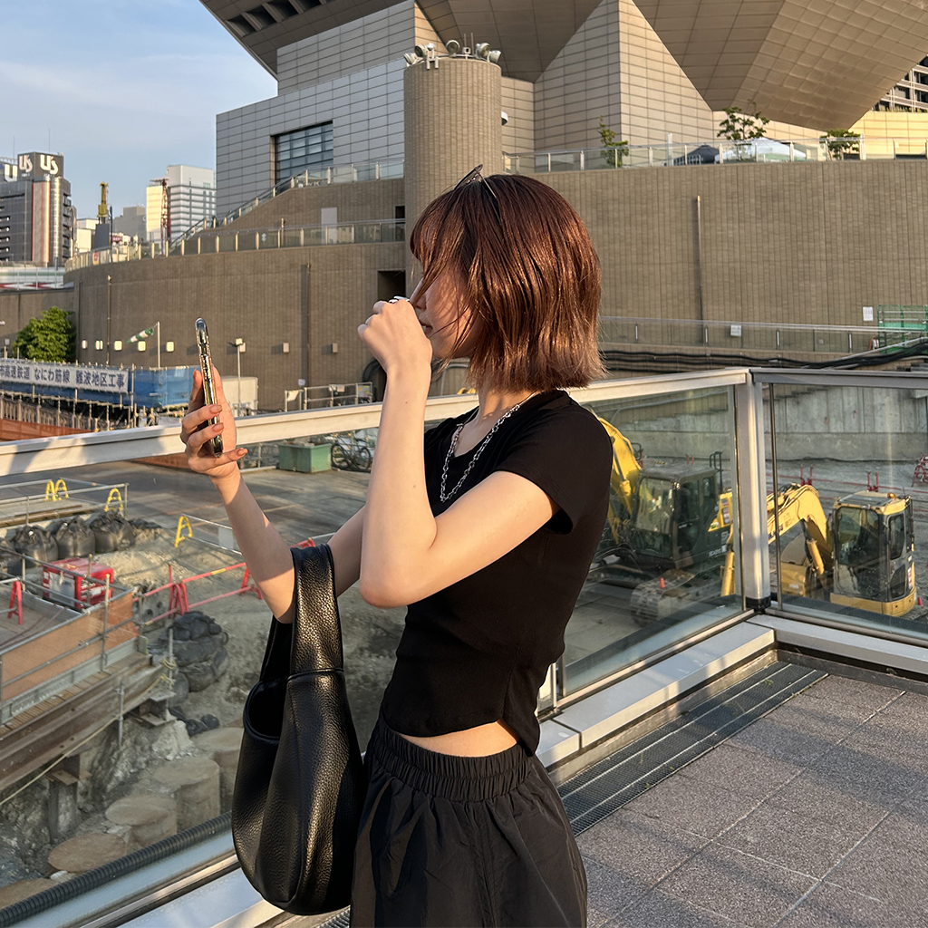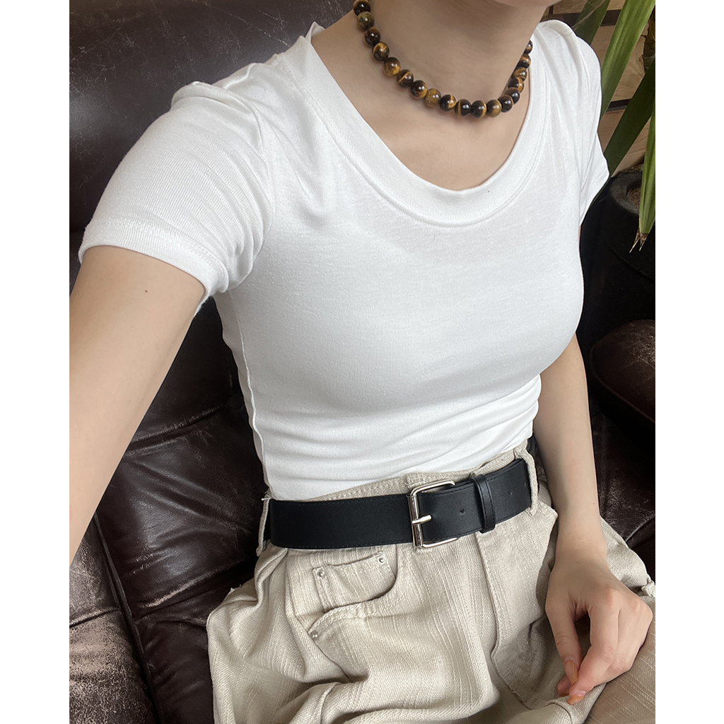 ラウンドノーカットクロップドTシャツ
