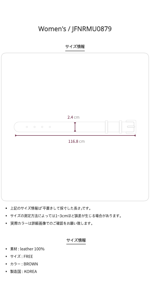 (ORIGINAL) ホールレスレザーベルト(brown)