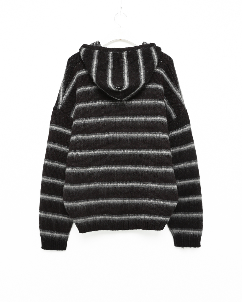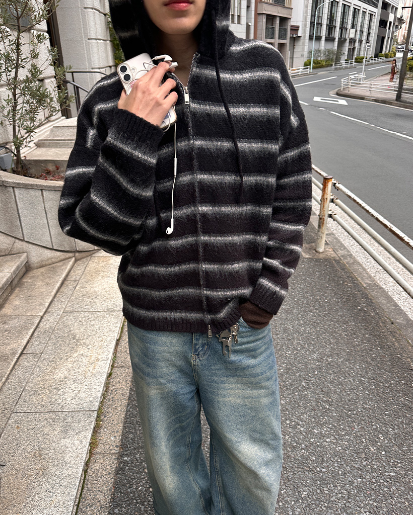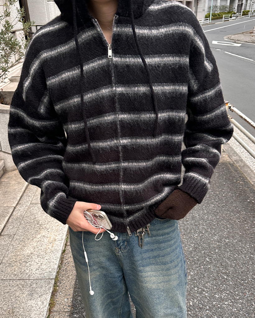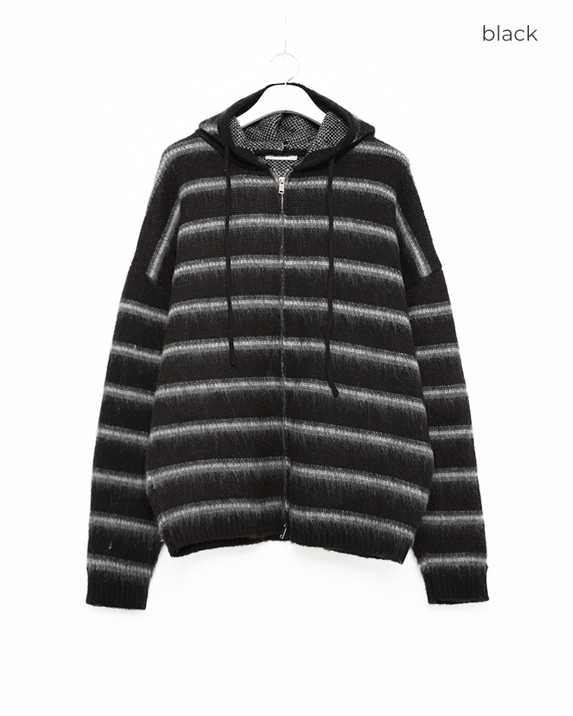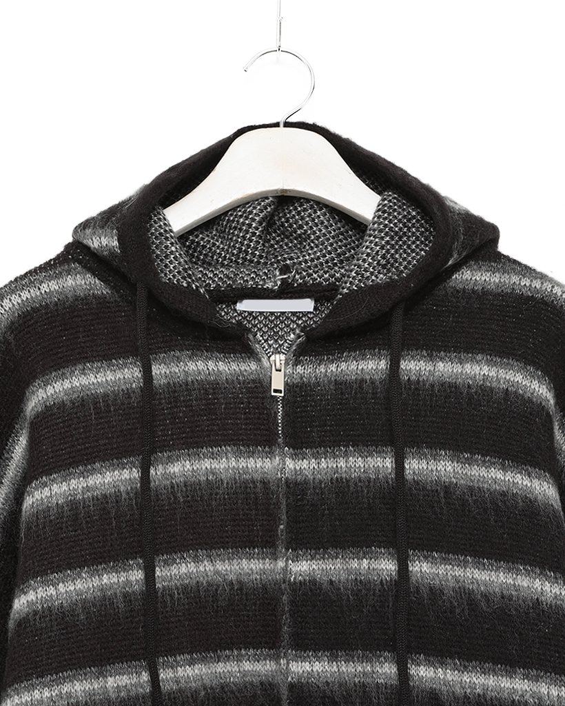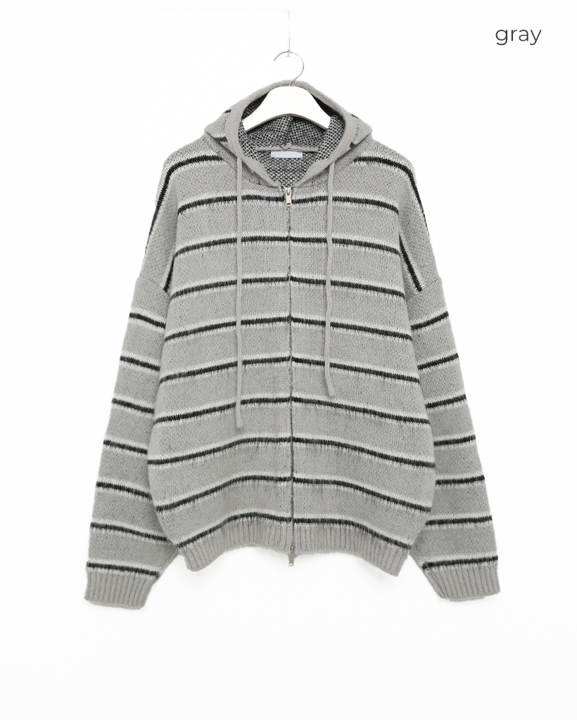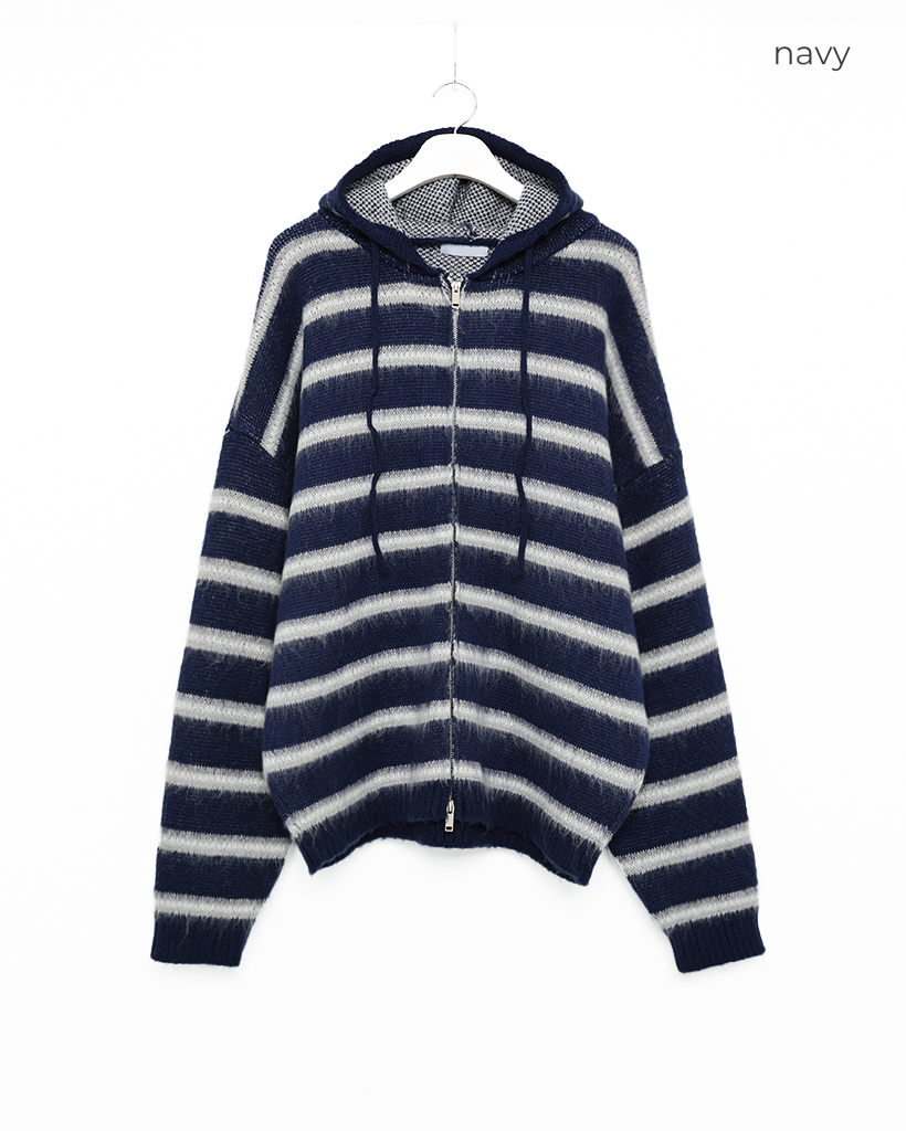 2wayモヘアボーダーフードカーディガン
