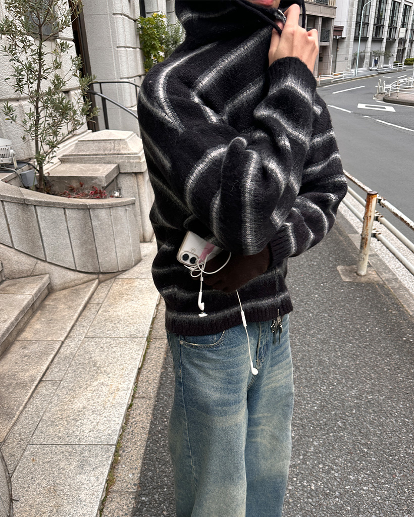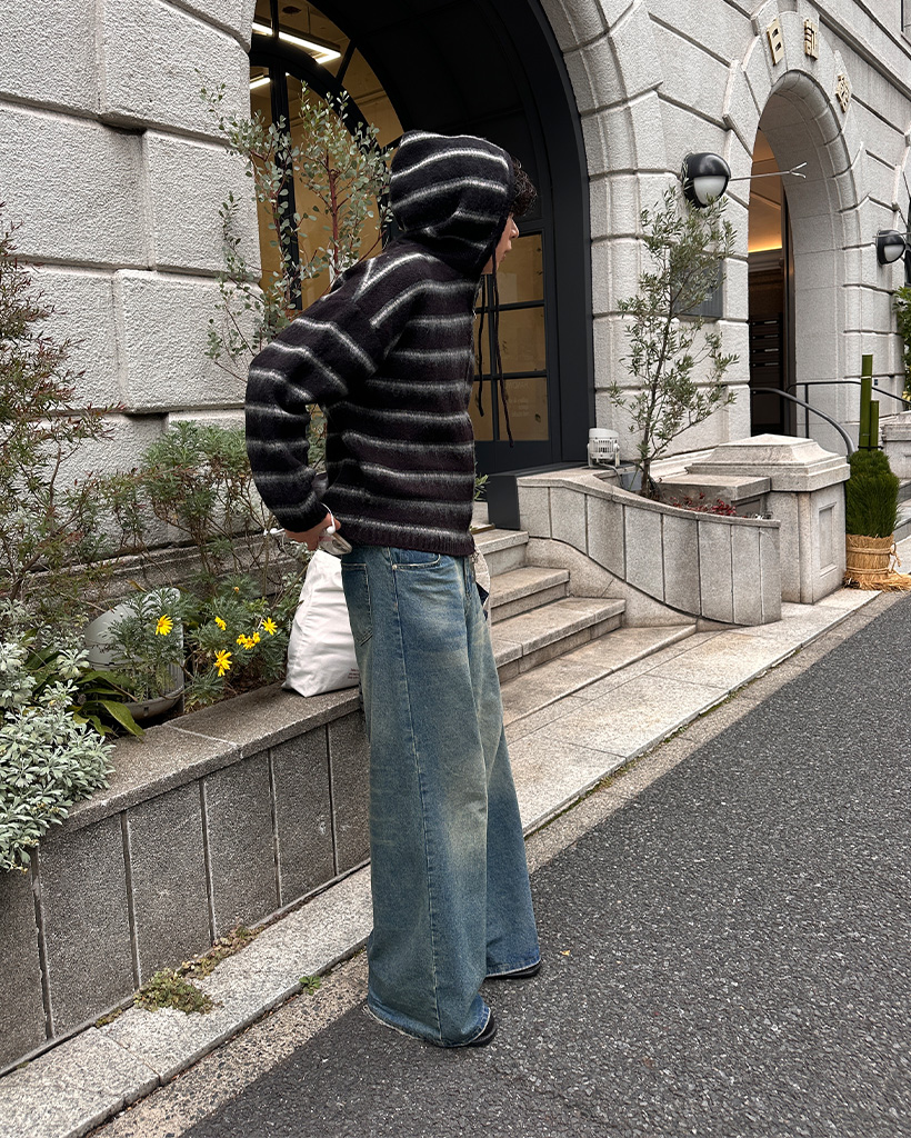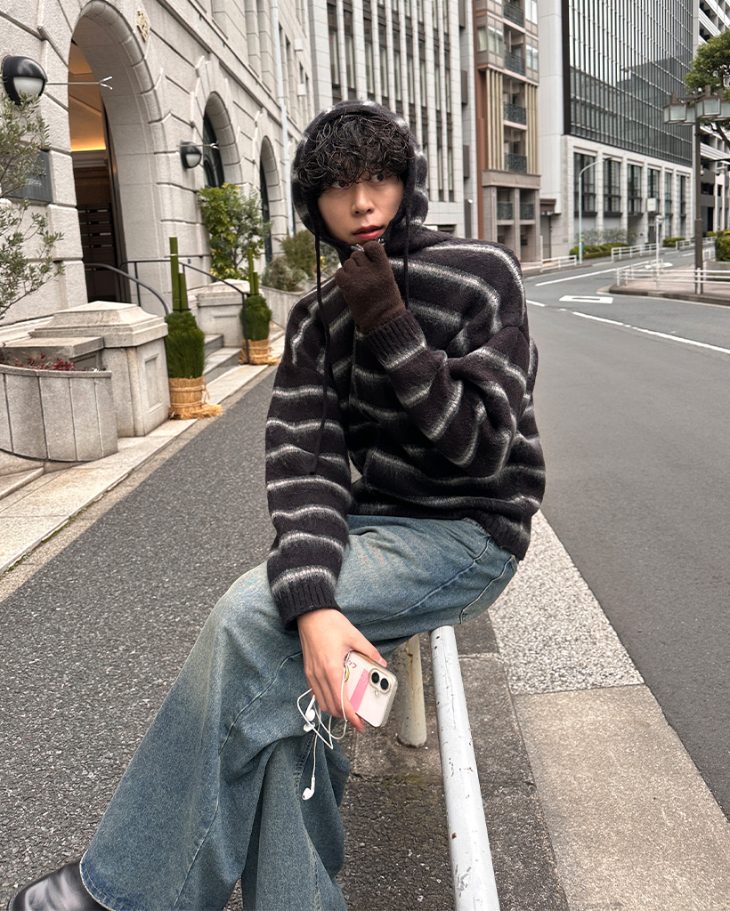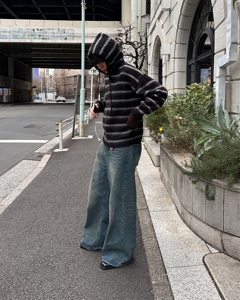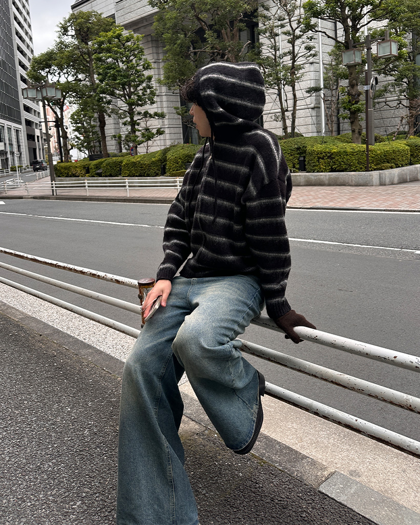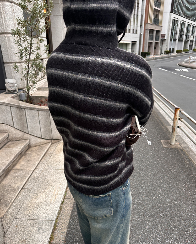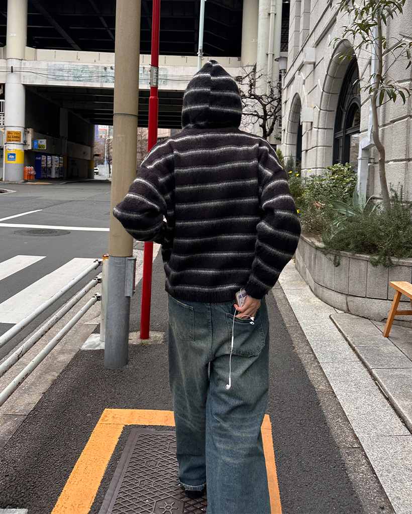 2wayモヘアボーダーフードカーディガン