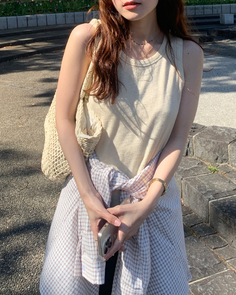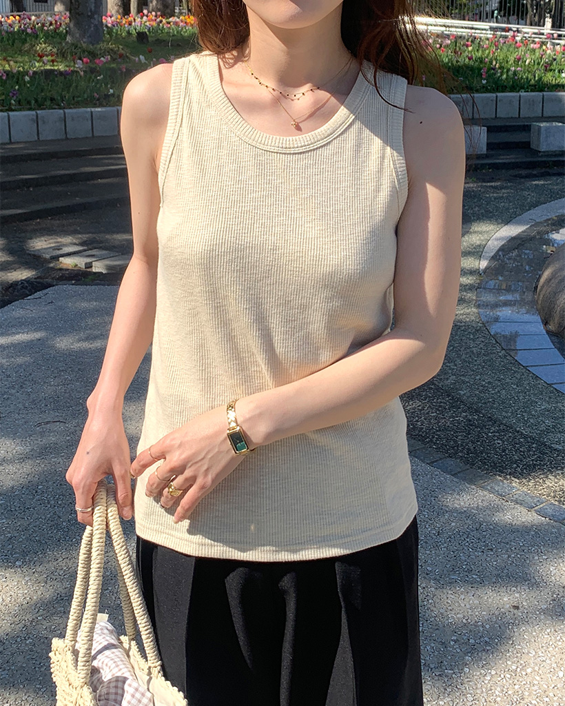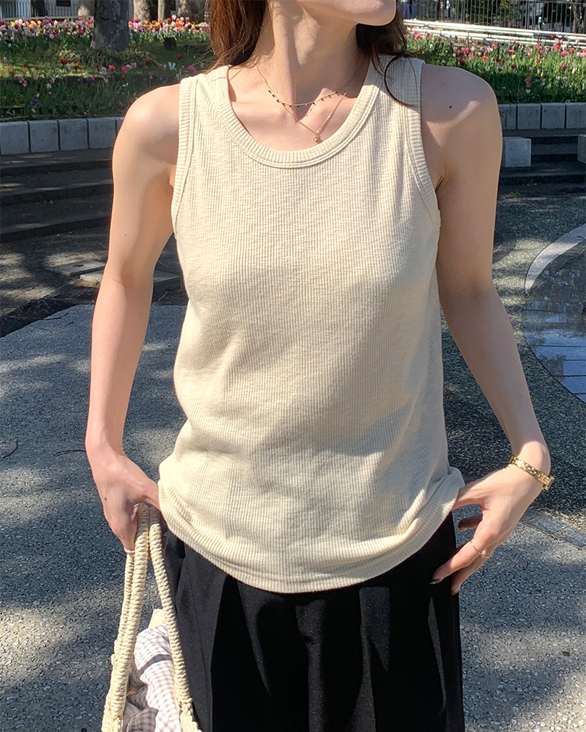 ラウンドリブスリーブレス